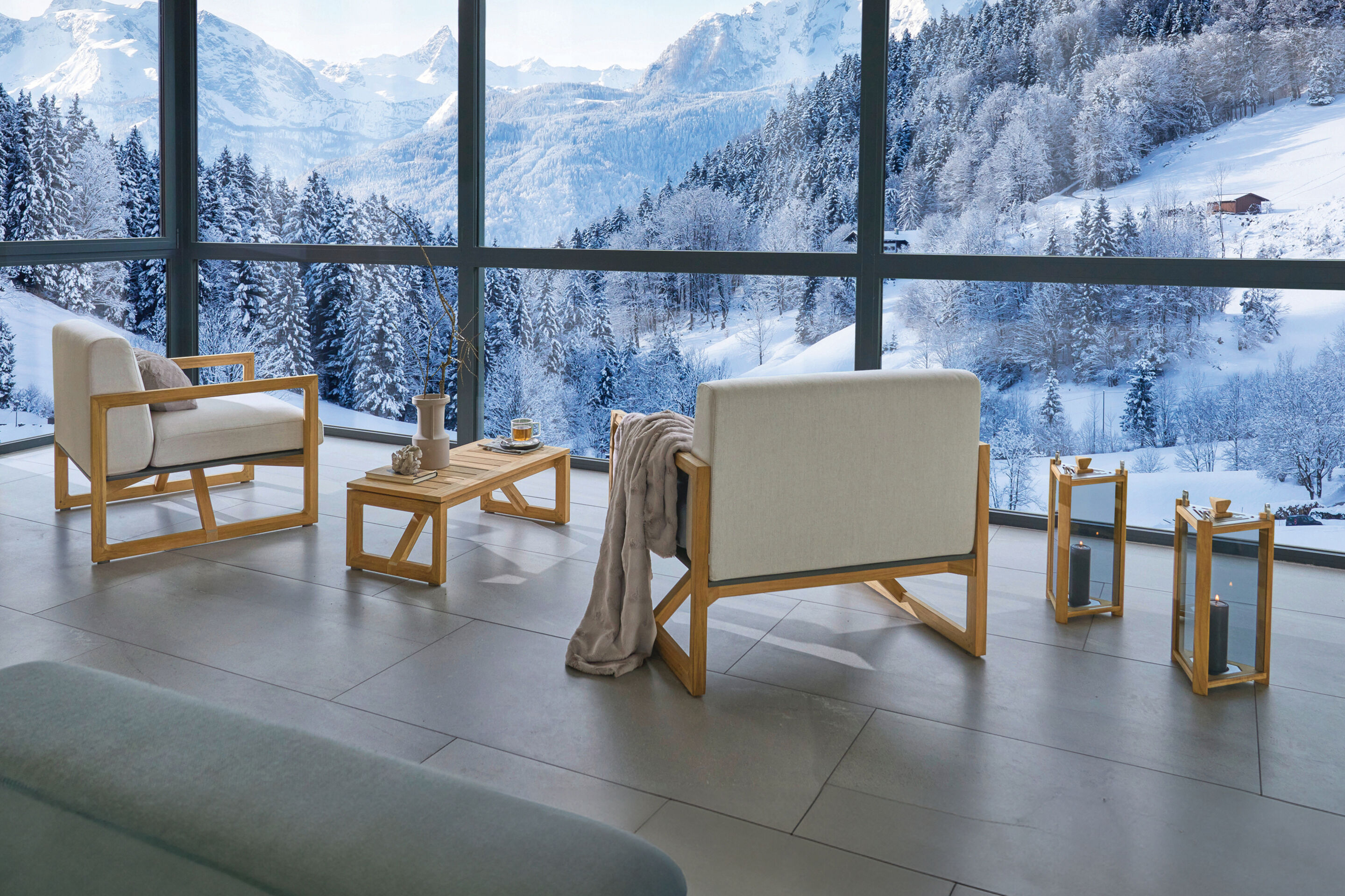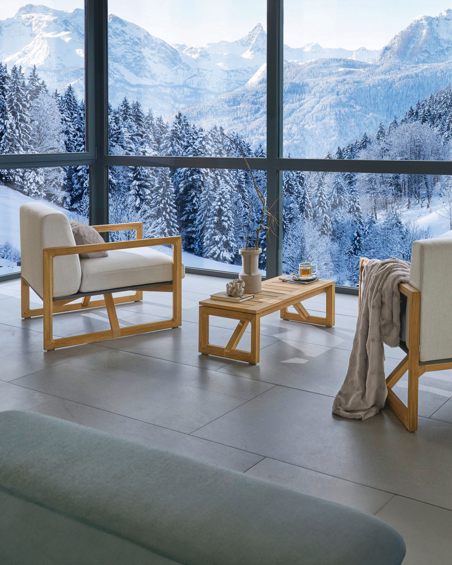Would you like to create a sense of cosiness that flows seamlessly from outdoors to indoors? Discover the new Chalet cushions and throws, distinguished by their exceptionally pleasant feel and handcrafted in European manufactories.