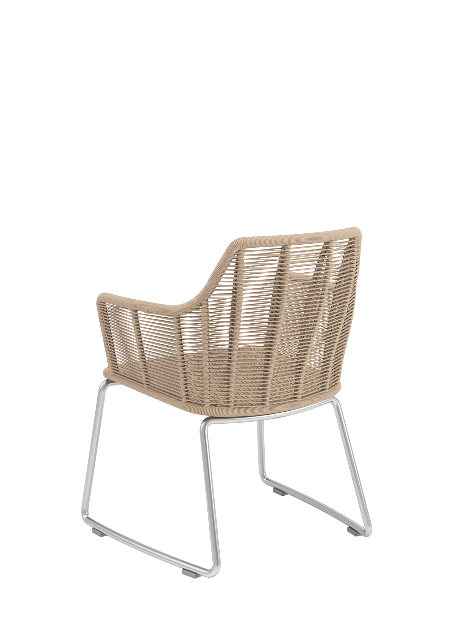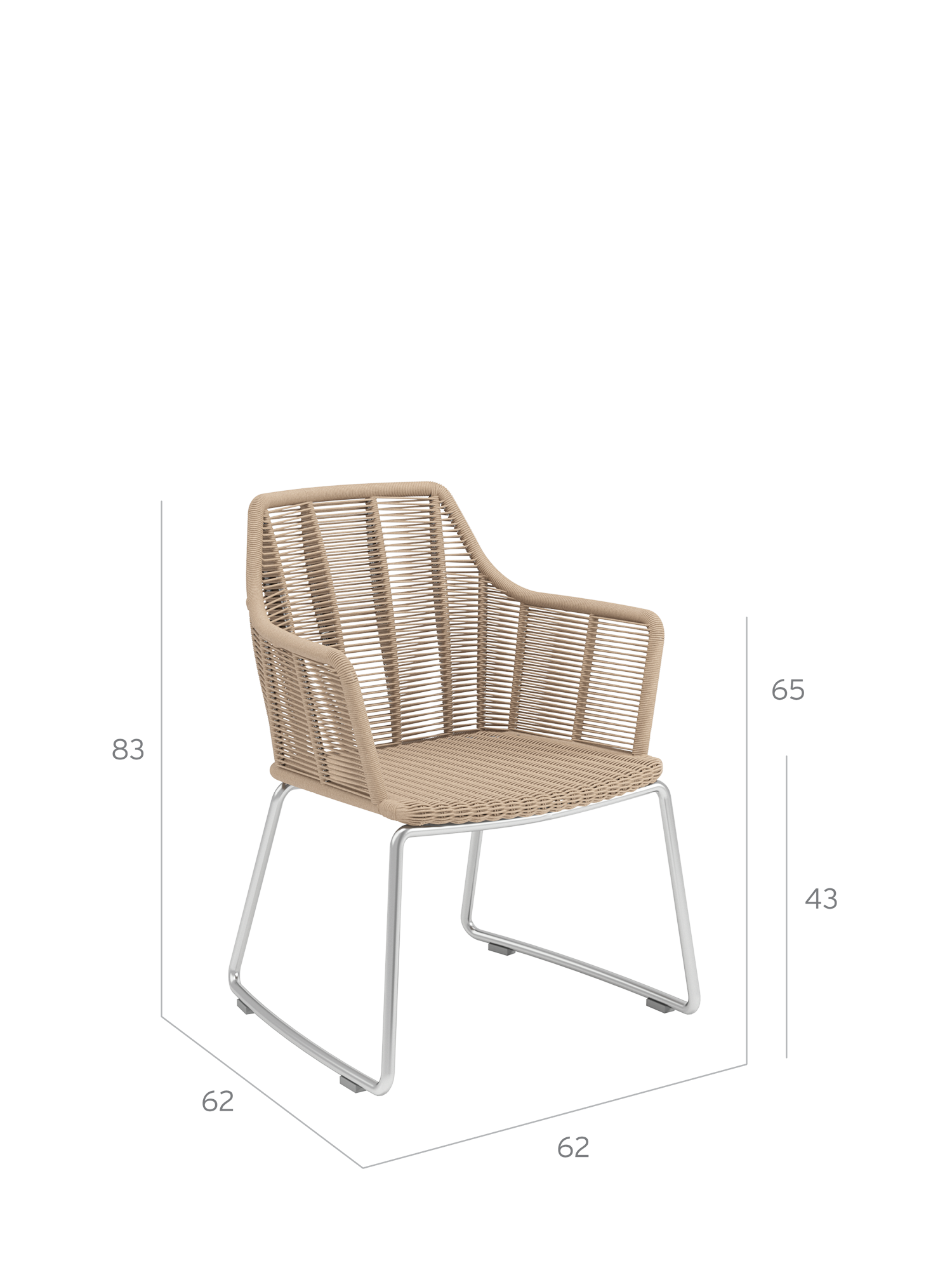The flawlessly designed armchairs can be enjoyed in the garden and on the terrace all year round. They are made exclusively of weather-resistant and robust materials in unmistakable Garpa quality – particularly easy to clean brushed stainless steel, and polyethylene cord with an attractive natural appearance. Matching seat cushions are optionally available in various designs.