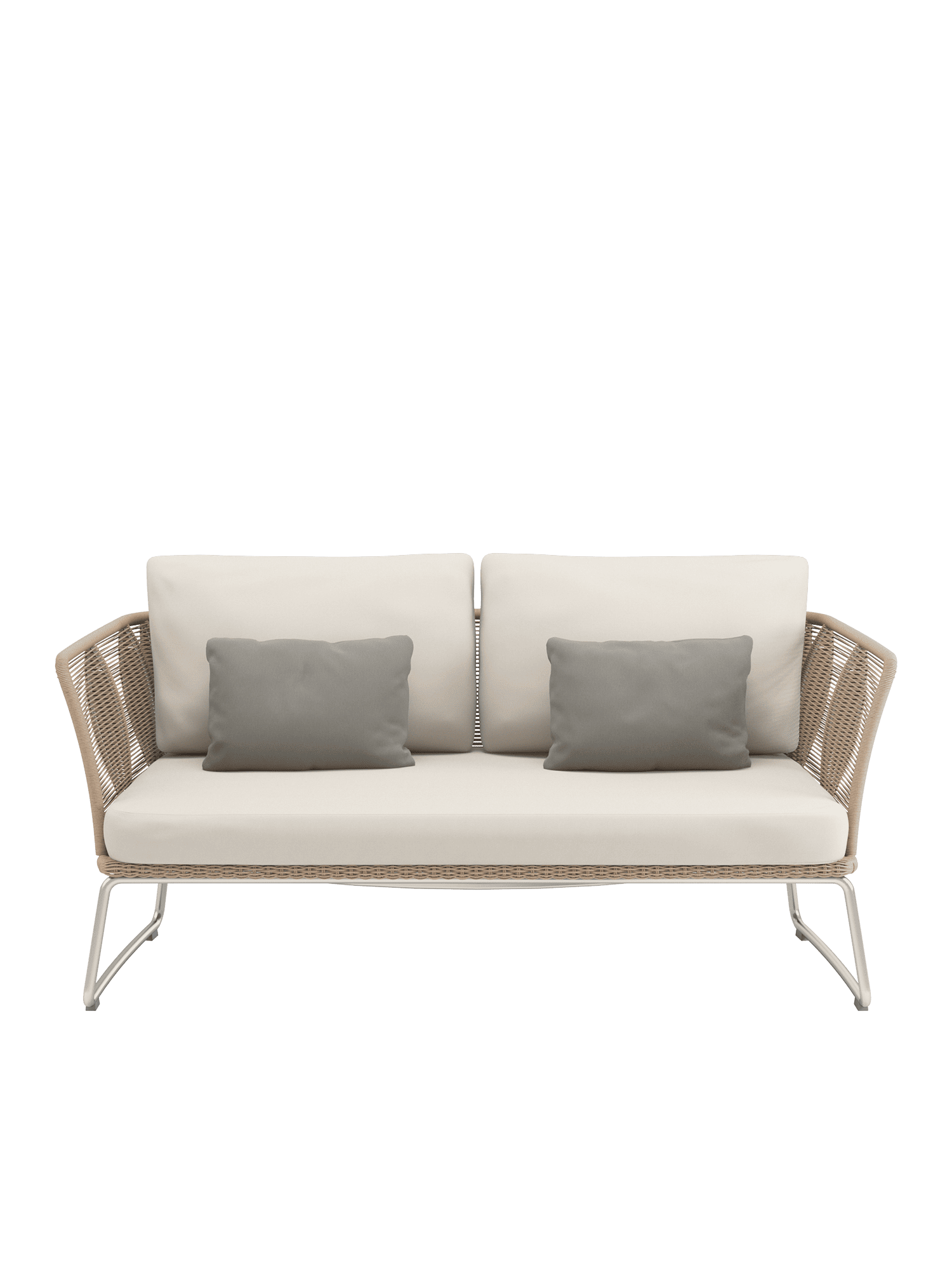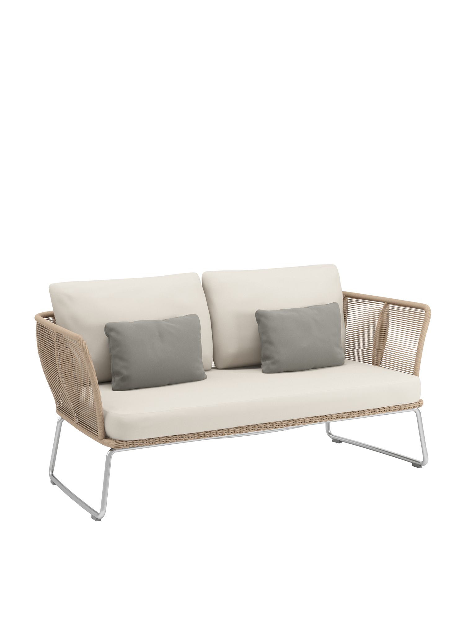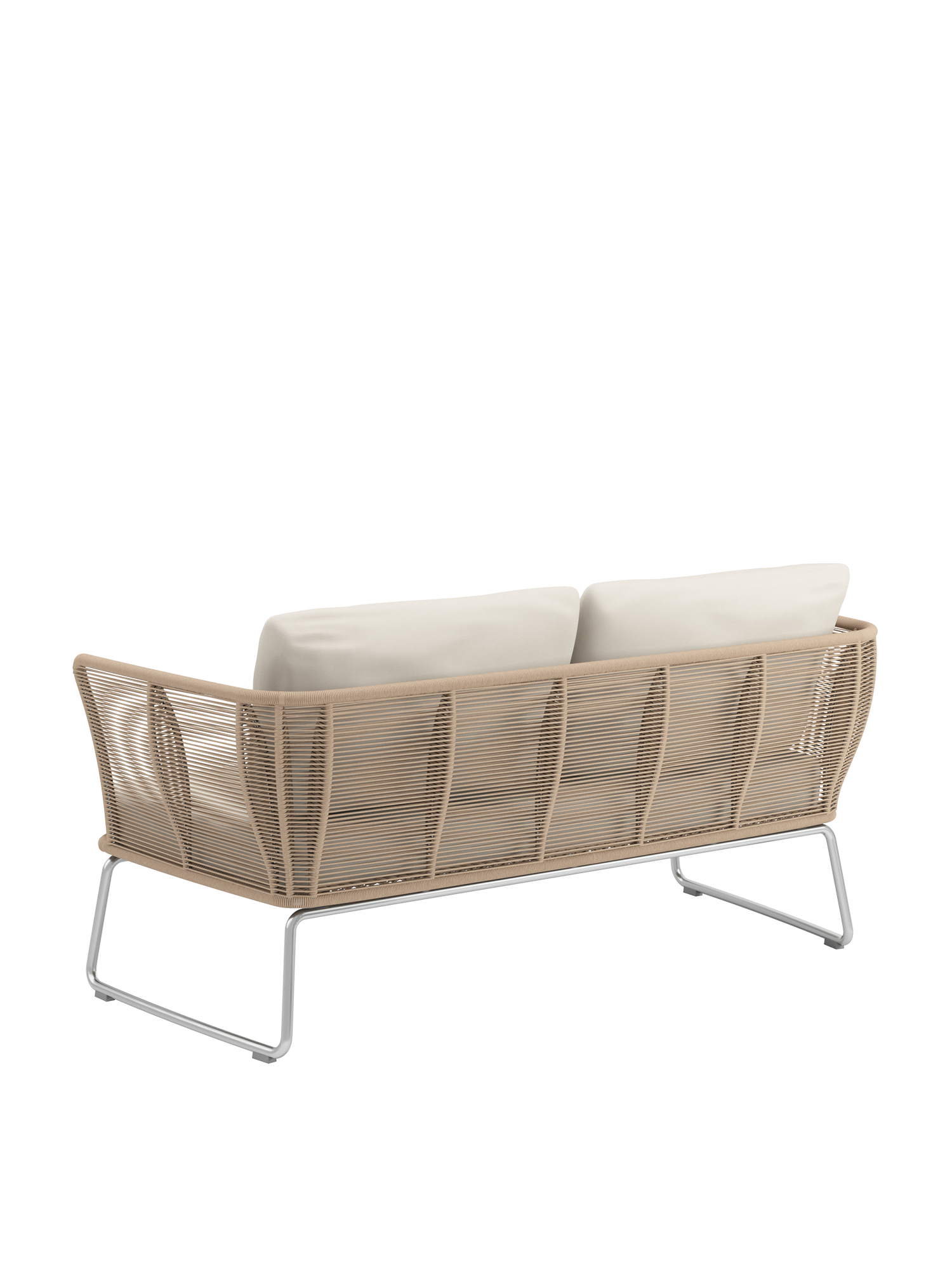 The graceful sofas can be enjoyed in the garden and on the terrace all year round. They are made exclusively of weather-resistant and robust materials in characteristic Garpa quality – especially easy to clean brushed stainless steel, and woven polyethylene cord with a remarkably natural appearance.