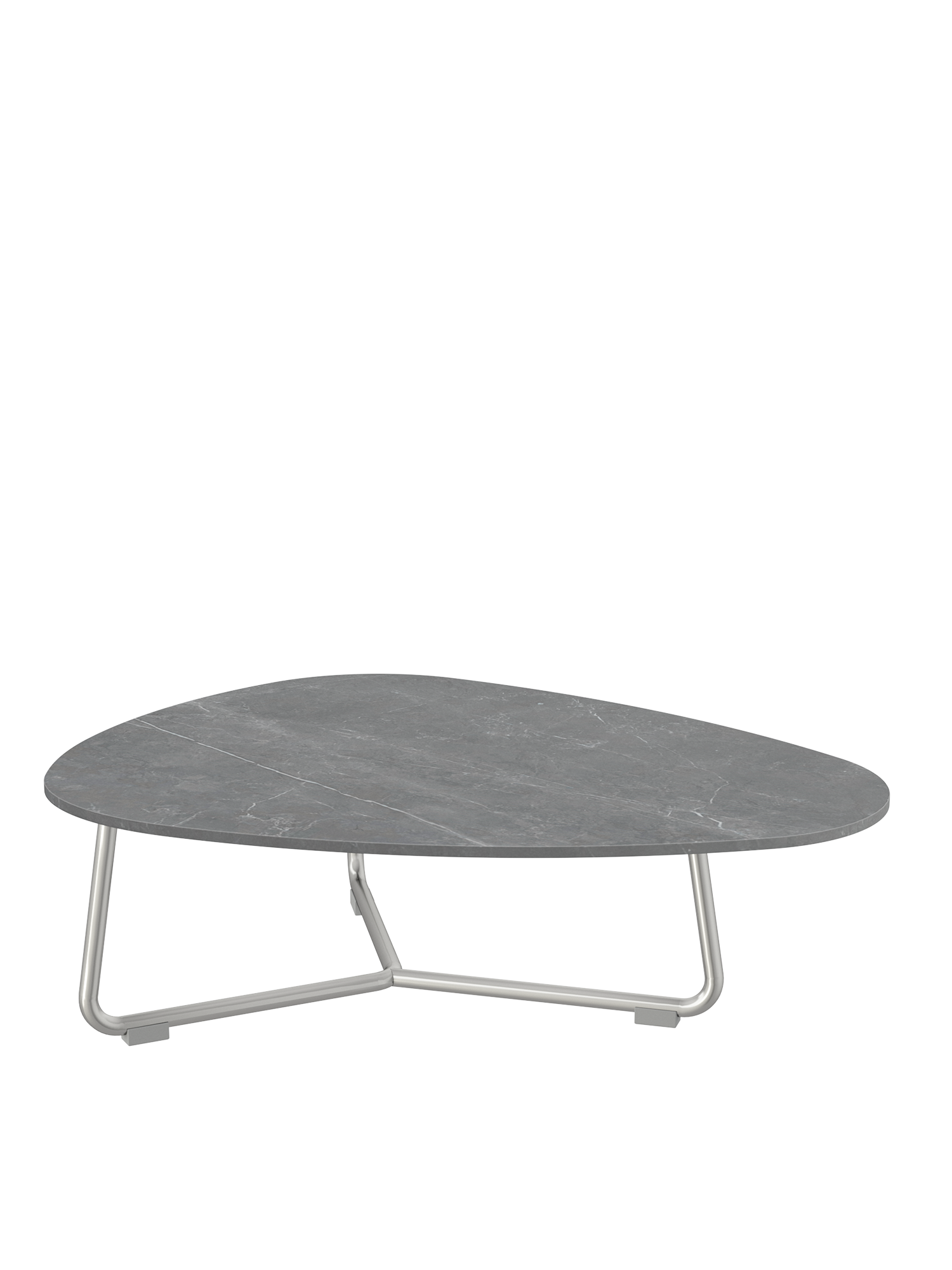 The slender stainless steel runners of the lounge tables are weatherproof and particularly easy to maintain. The surfaces made of frostproof, UV-resistant ceramic with a fine grain are also easy to clean.
