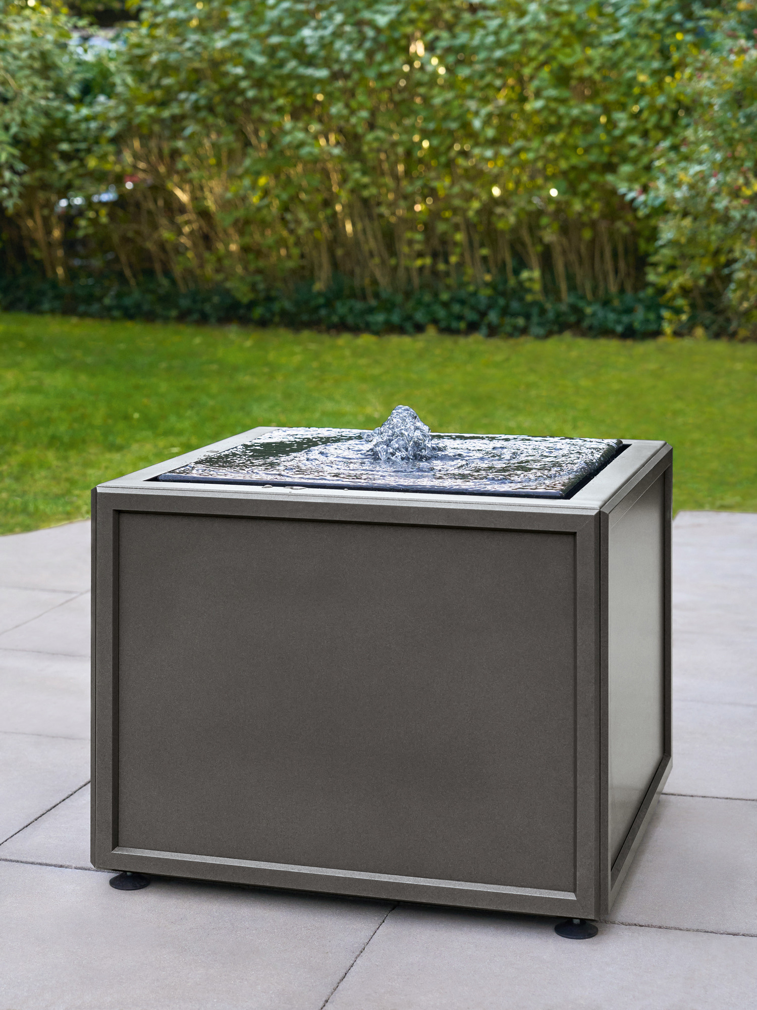 The serene play of water is balm for the senses: the modern cube-shaped fountain sets a harmonious accent on the terrace or balcony.