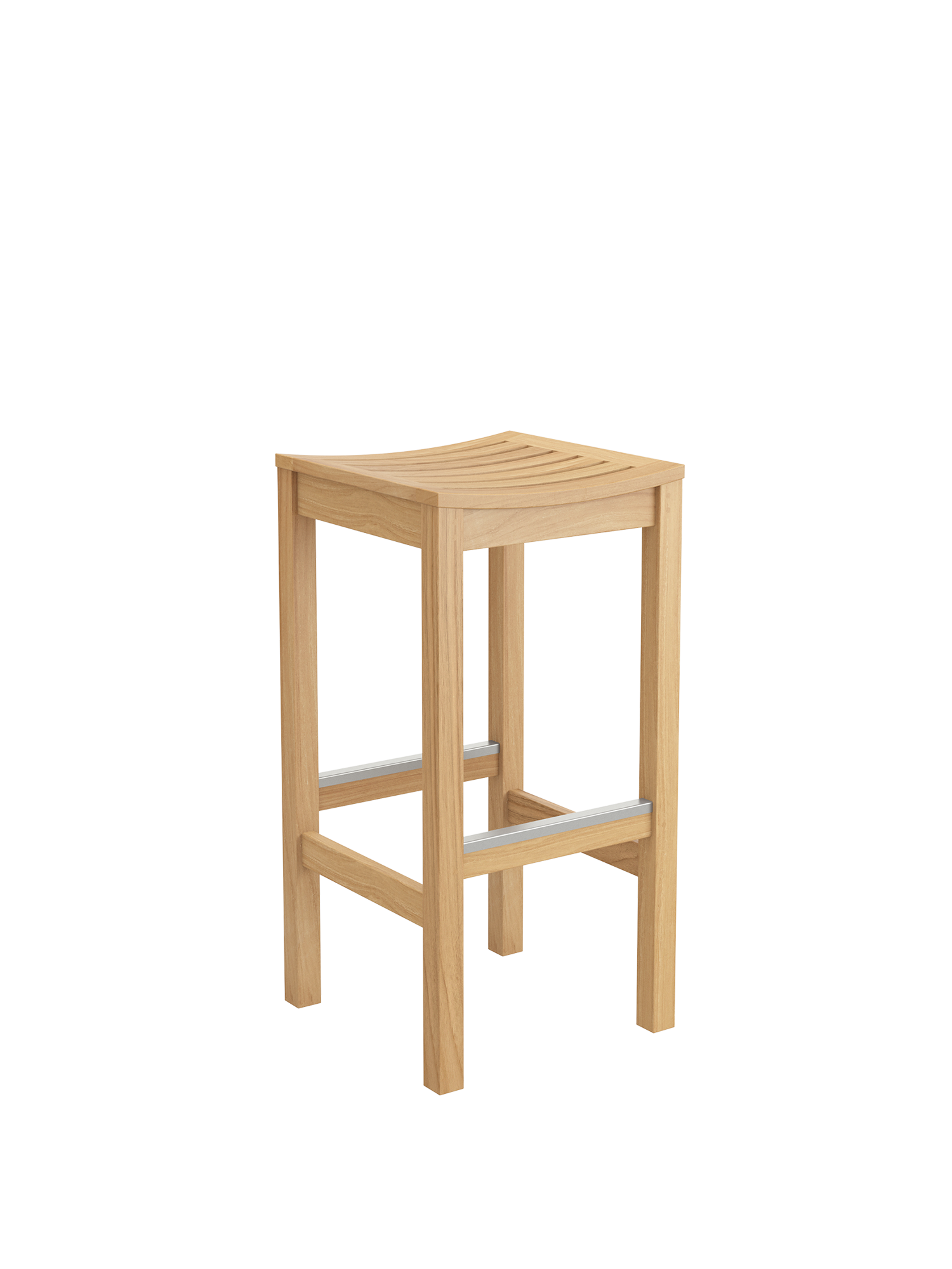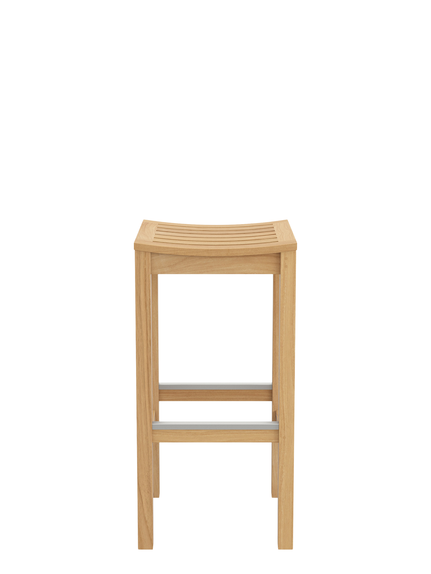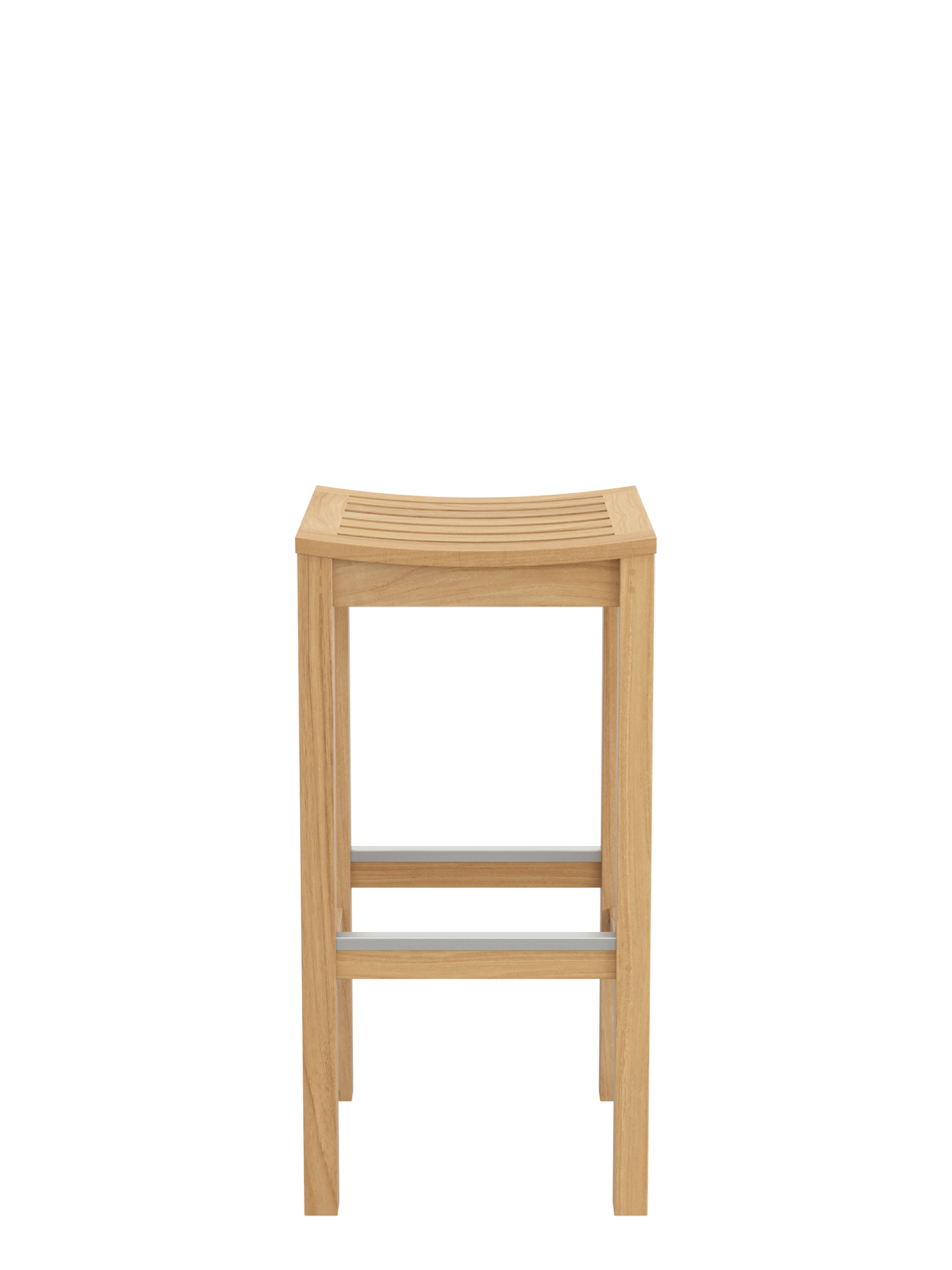 The pared-down design reveals genuine craftsmanship – strong plantation teakwood, ergonomically shaped slats, solid joints. Whether a quick snack or happy hour with friends, the ensemble is an invitation to a casual gathering on the terrace or balcony. The teak supports of both table and stool are protected by aluminium profiles and provide a stable foothold.