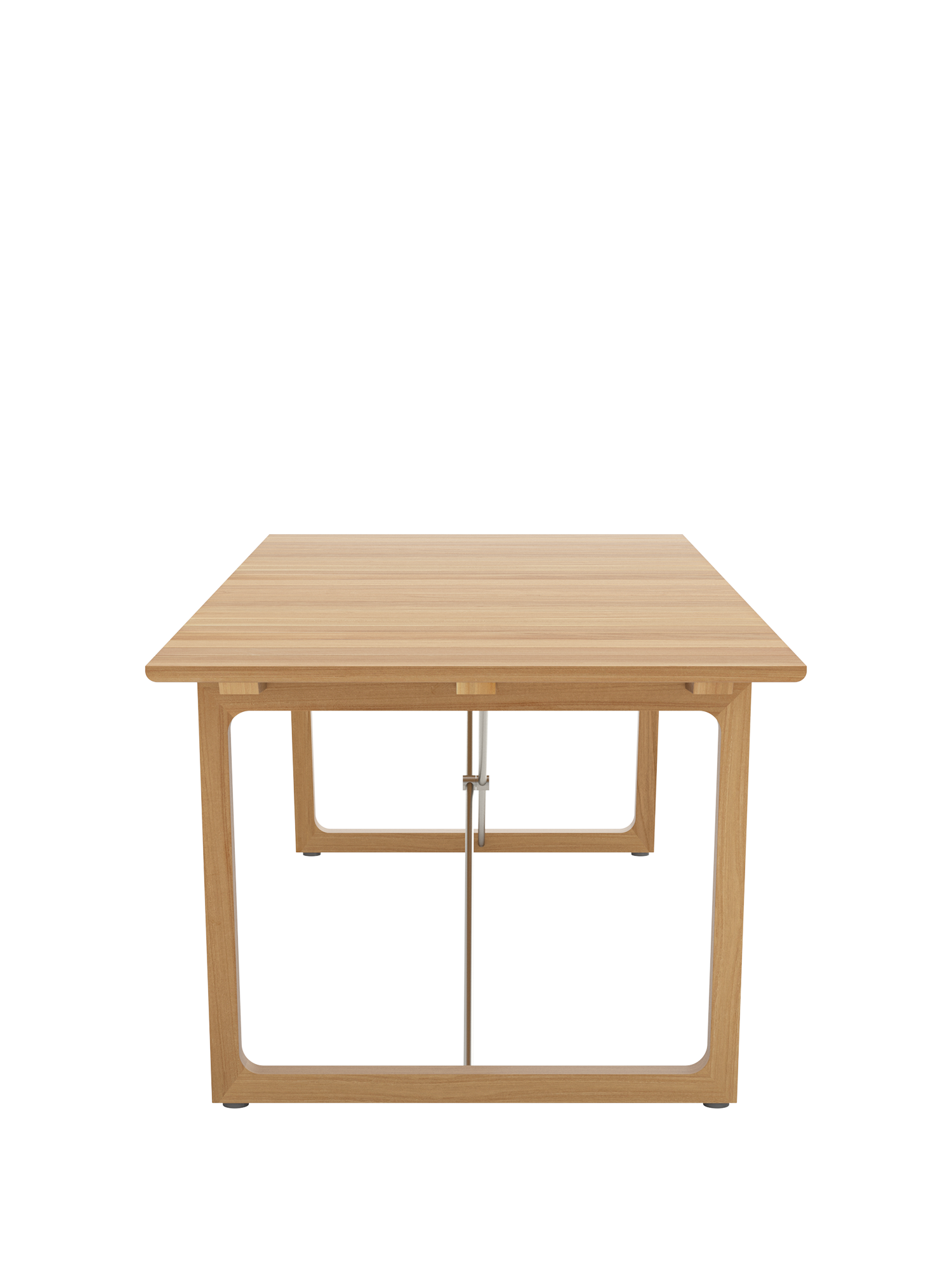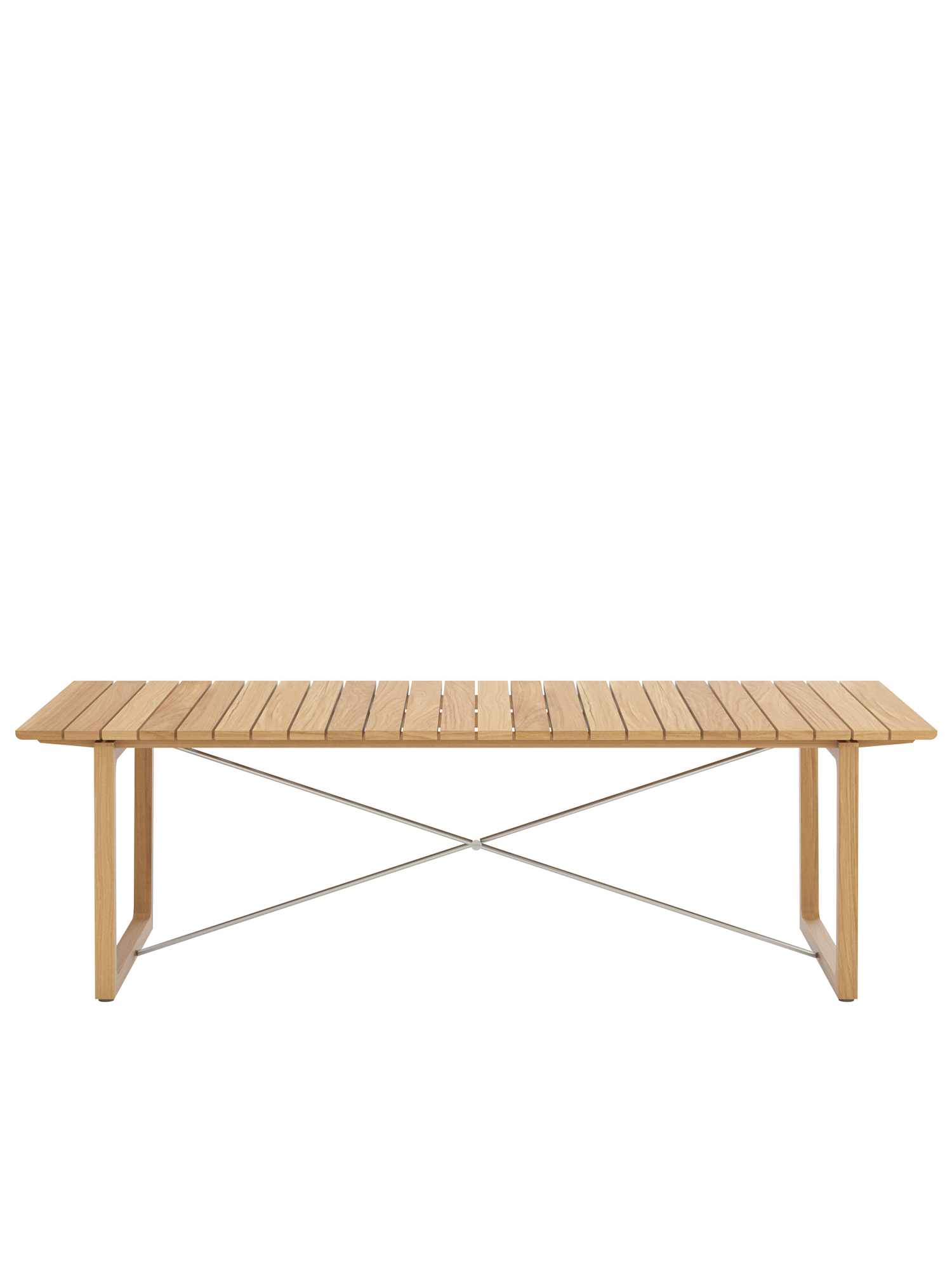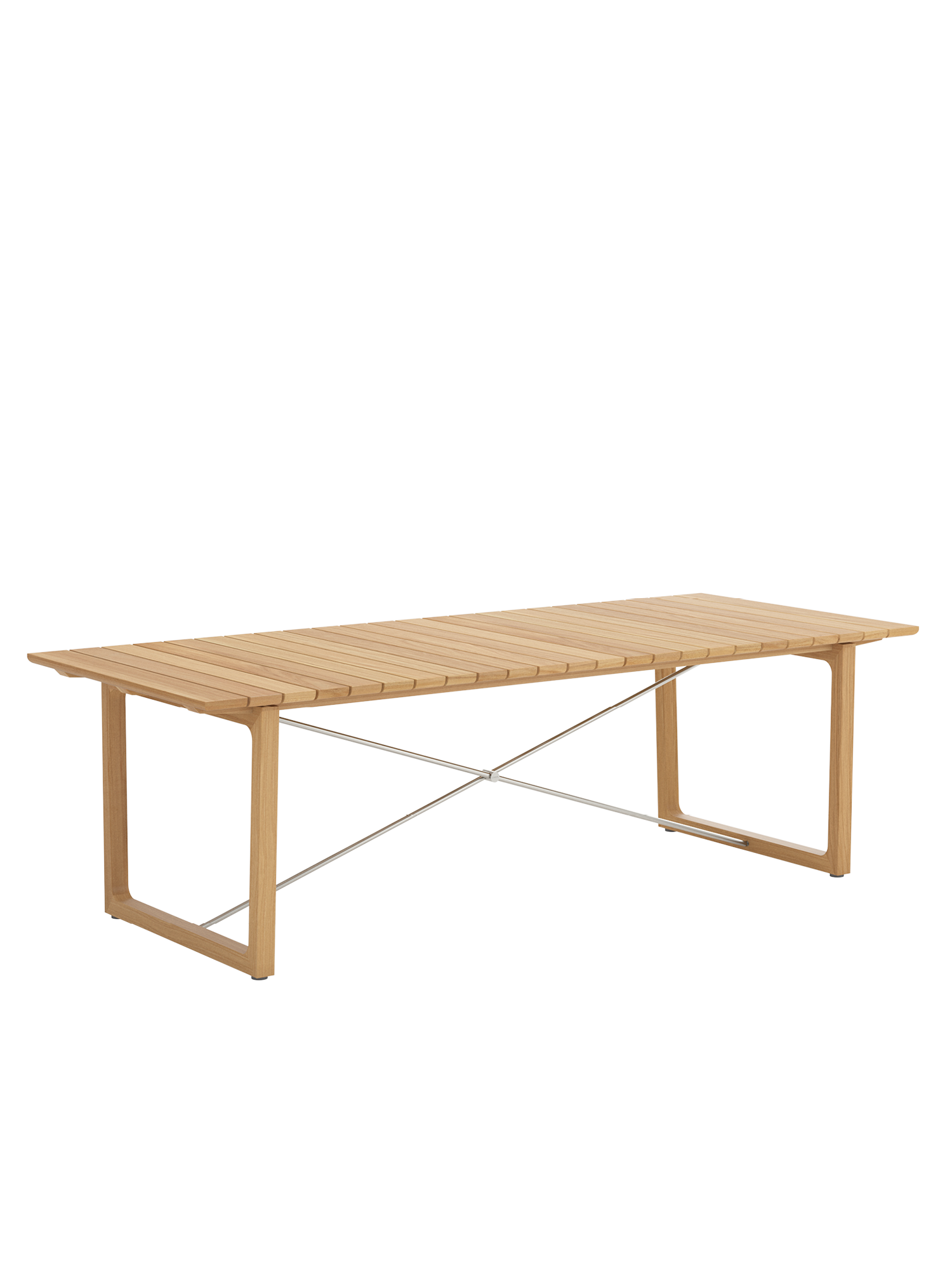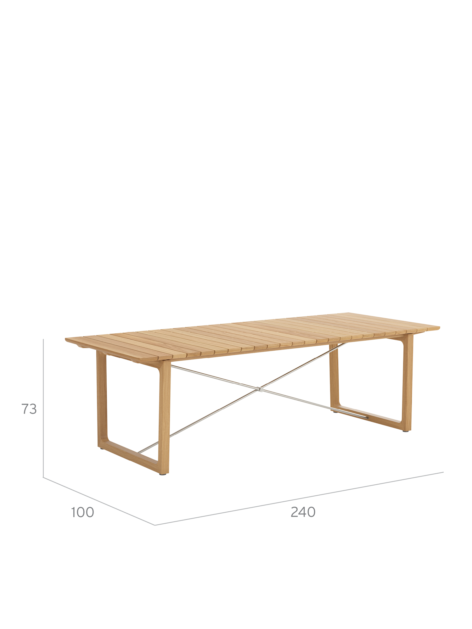 Teak side elements and stainless steel crosspiece characterise the design of the square Benton tables, and the slats, smoothly rounded on the underside, create a lovely optical and pleasantly tactile effect. The elegant tables made of solid, meticulously crafted plantation teak, are available in two different sizes.