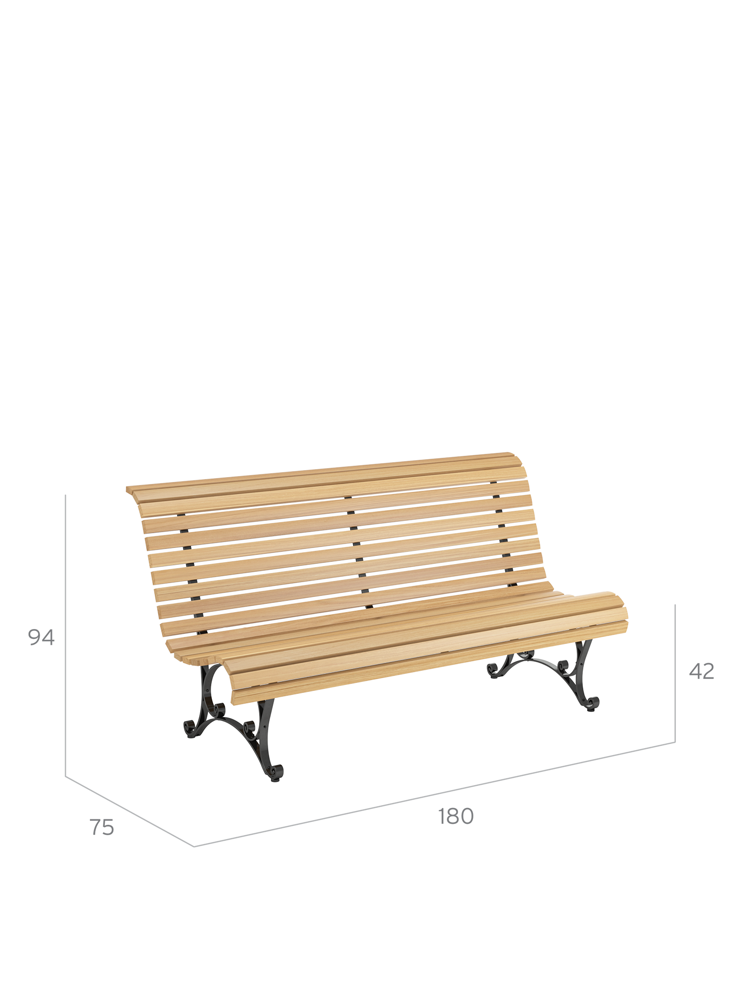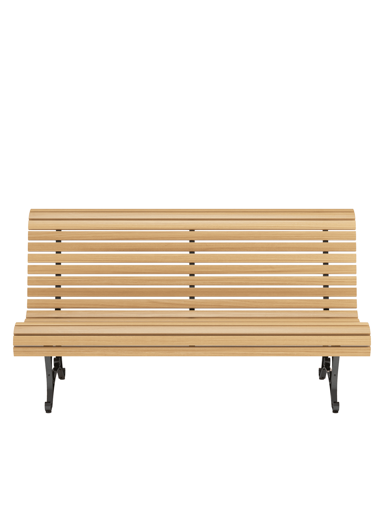 Boulogne with French charm: the elegantly curved bench of teak has a frame of galvanised steel.