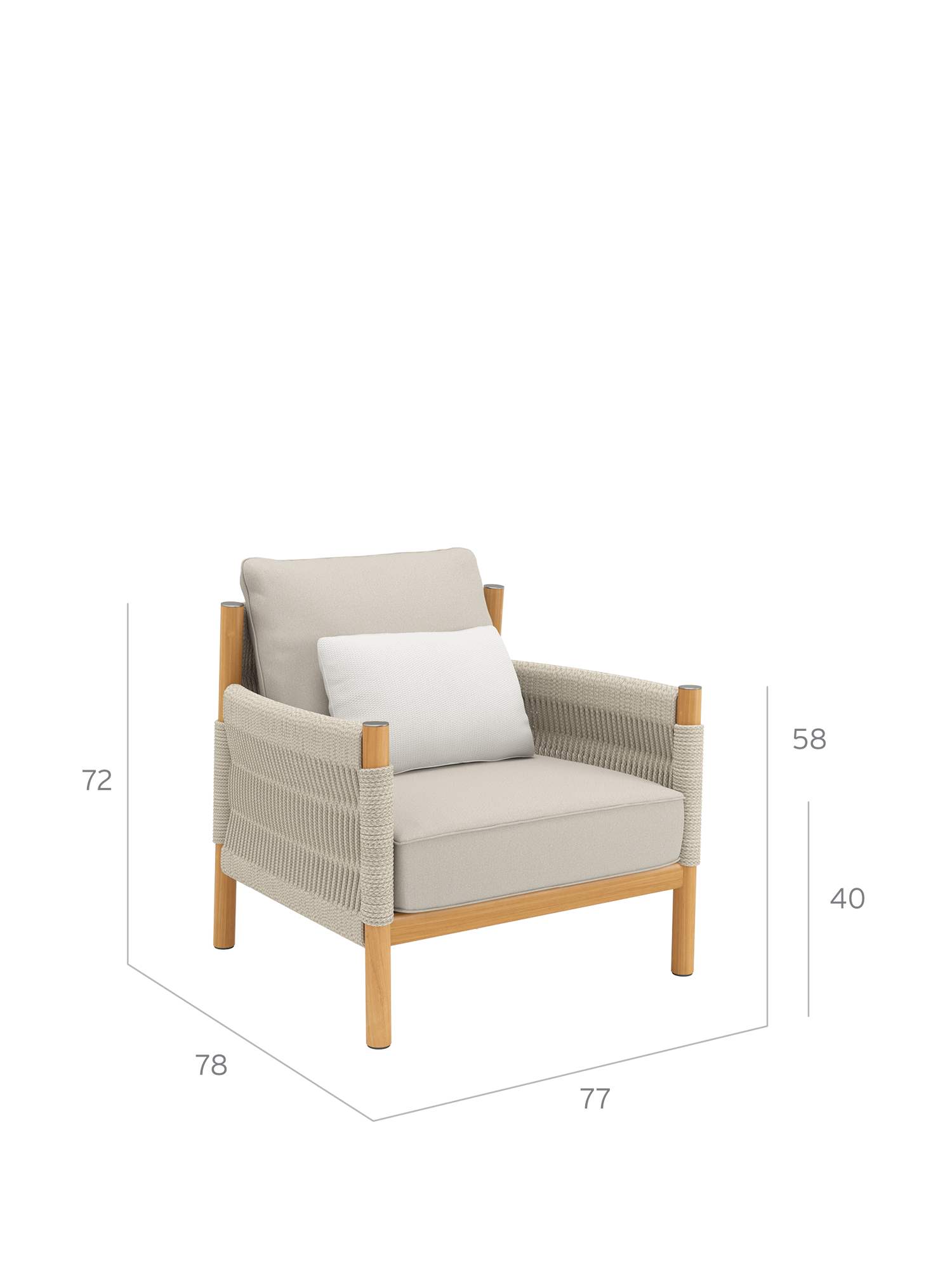 Finely turned teak wood incorporates classic aspects, stainless steel caps set subtle accents, Weatherproof cord, in graceful shades of beige and beautifully woven into a wonderfully supple and gorgeous covering, creates elegant splendour. The high-quality material is made of polypropylene with a polyester core.
