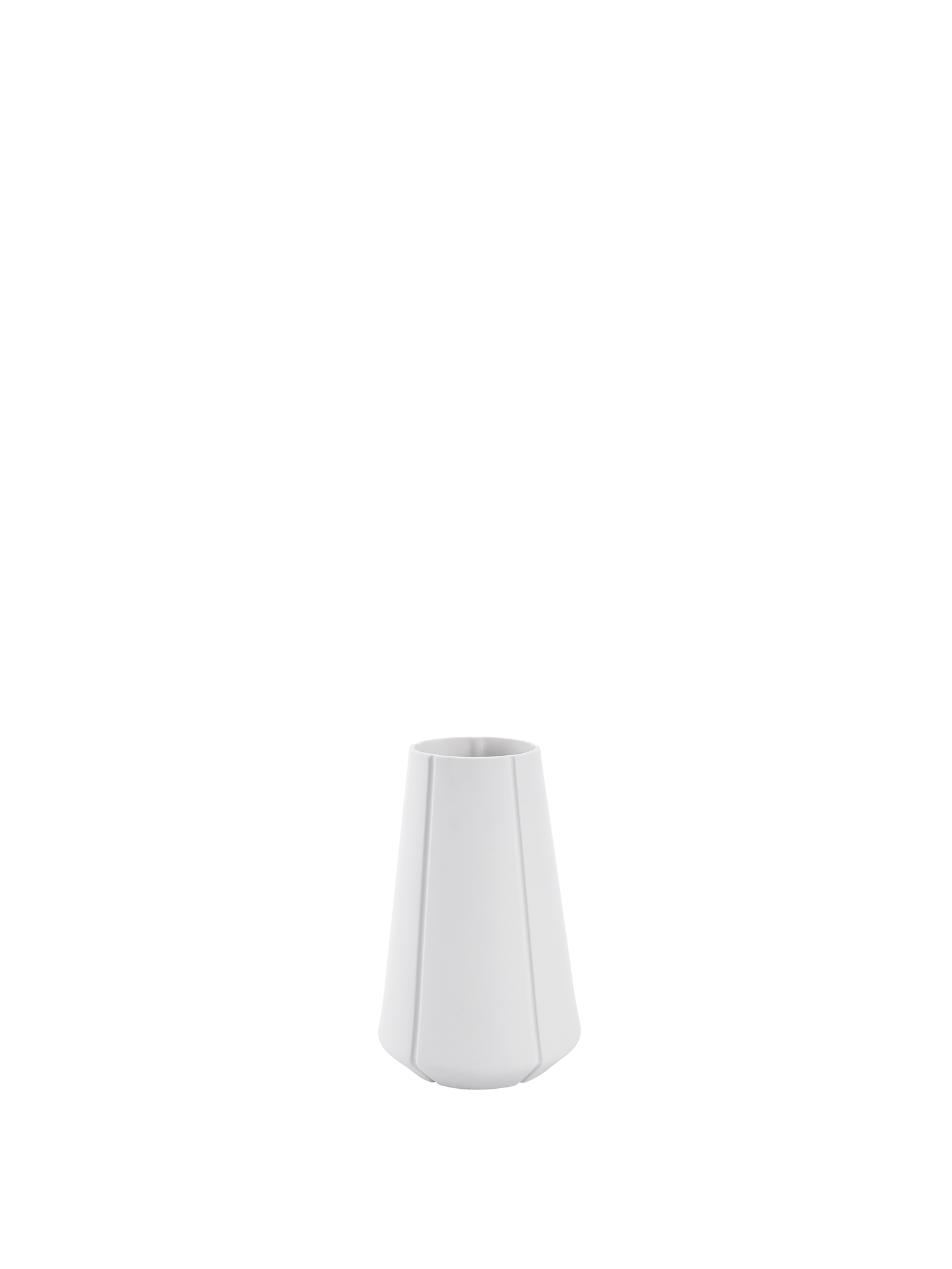 The round vases come from the same manufacturer. The surfaces of all vases are decorated with a fine striped relief.