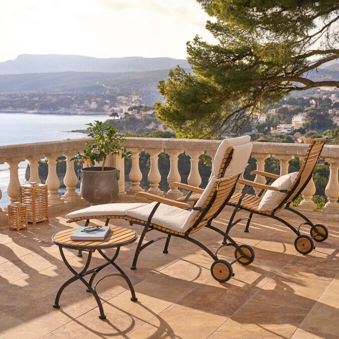 Classics made of teak and steel take the Belle Époque flair to new heights. Today's generation, easily foldable or adjustable, impresses with contemporary comfort and superb craftsmanship. Every detail has been perfected to meet discerning tastes. Diverse tables, deck chairs and lounge furniture augment the repertoire: a classic introduces its extensive family.