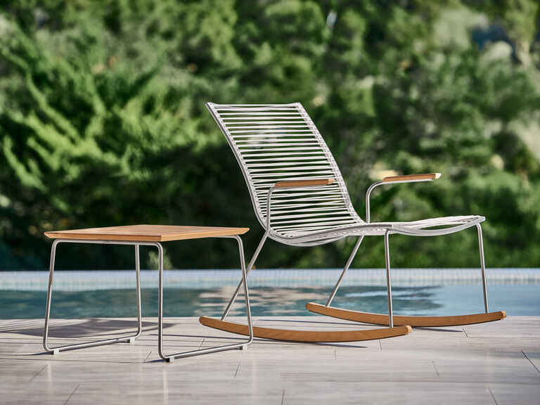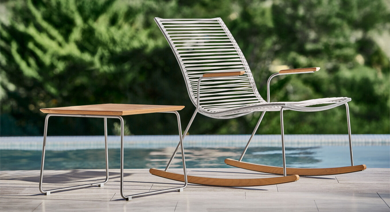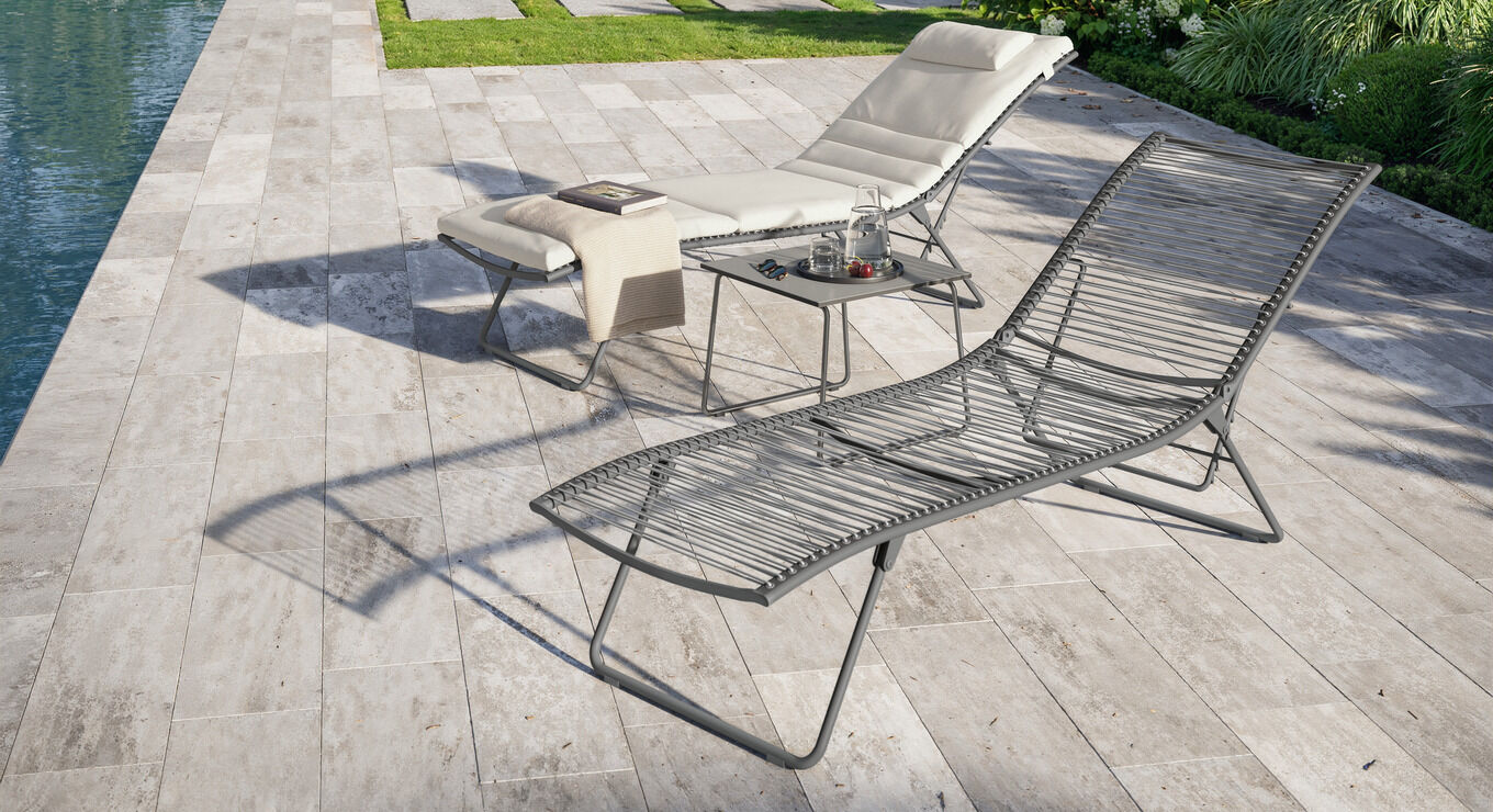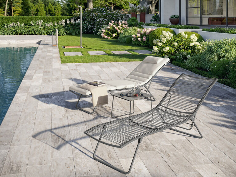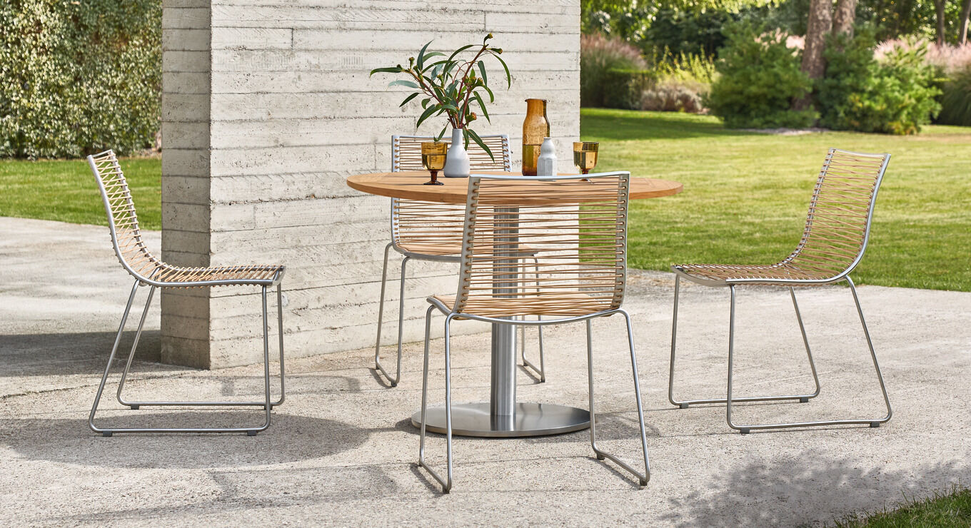 The distinctive lacing evokes design icons. Whether in front of steel and glass or among nature and stone – the versatile furniture of the Pan collection impresses with enormous resilience.