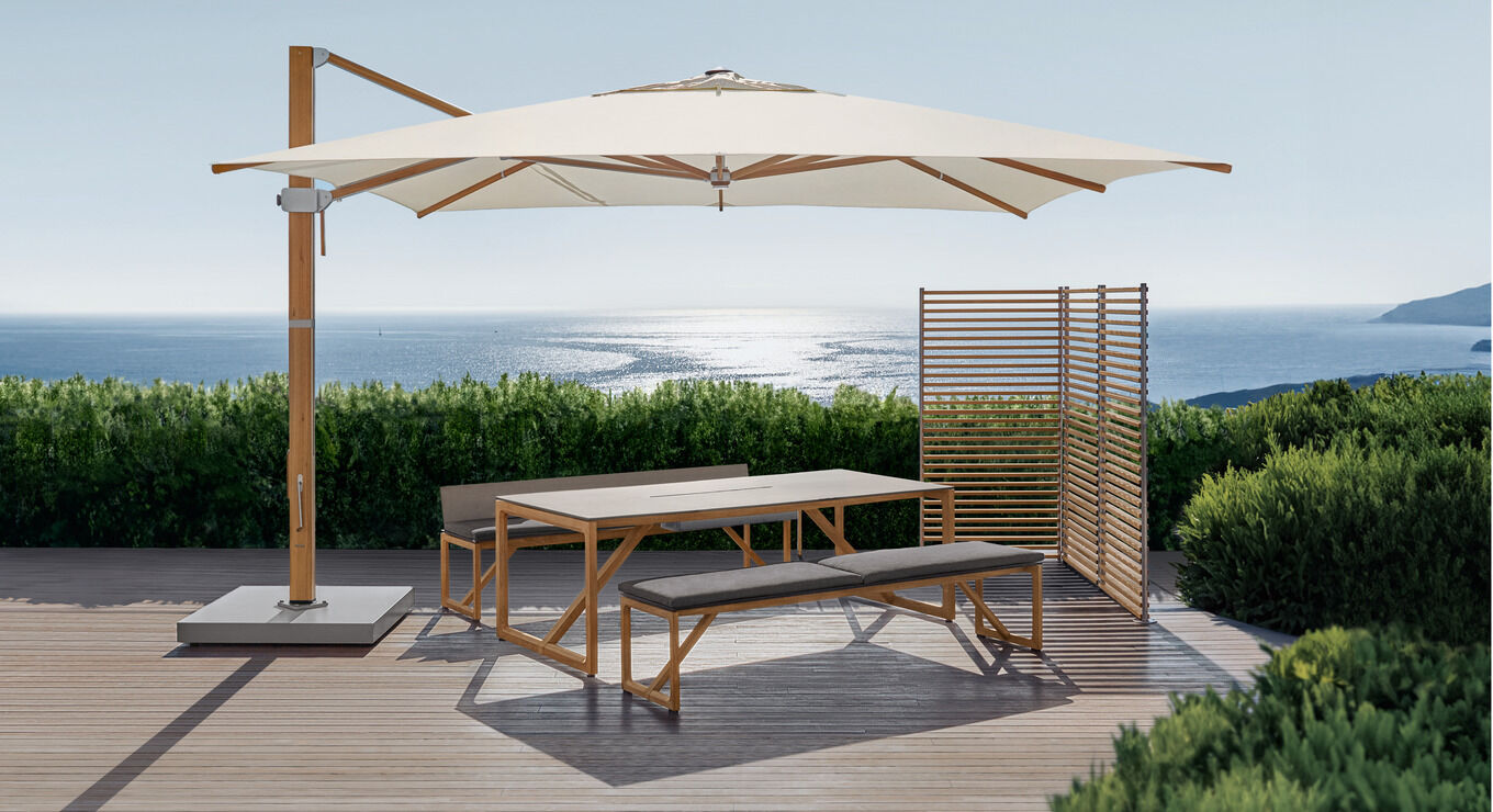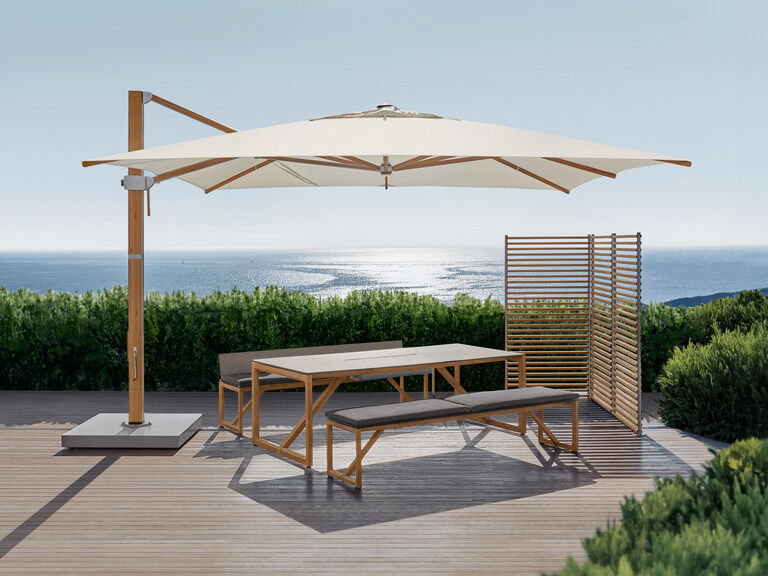 The table and benches with their clear and simple design offer plenty of space, are ideal for socialising and are even suitable as a play corner. They guarantee comfort to which nothing needs to be added – perhaps just a few cushions.