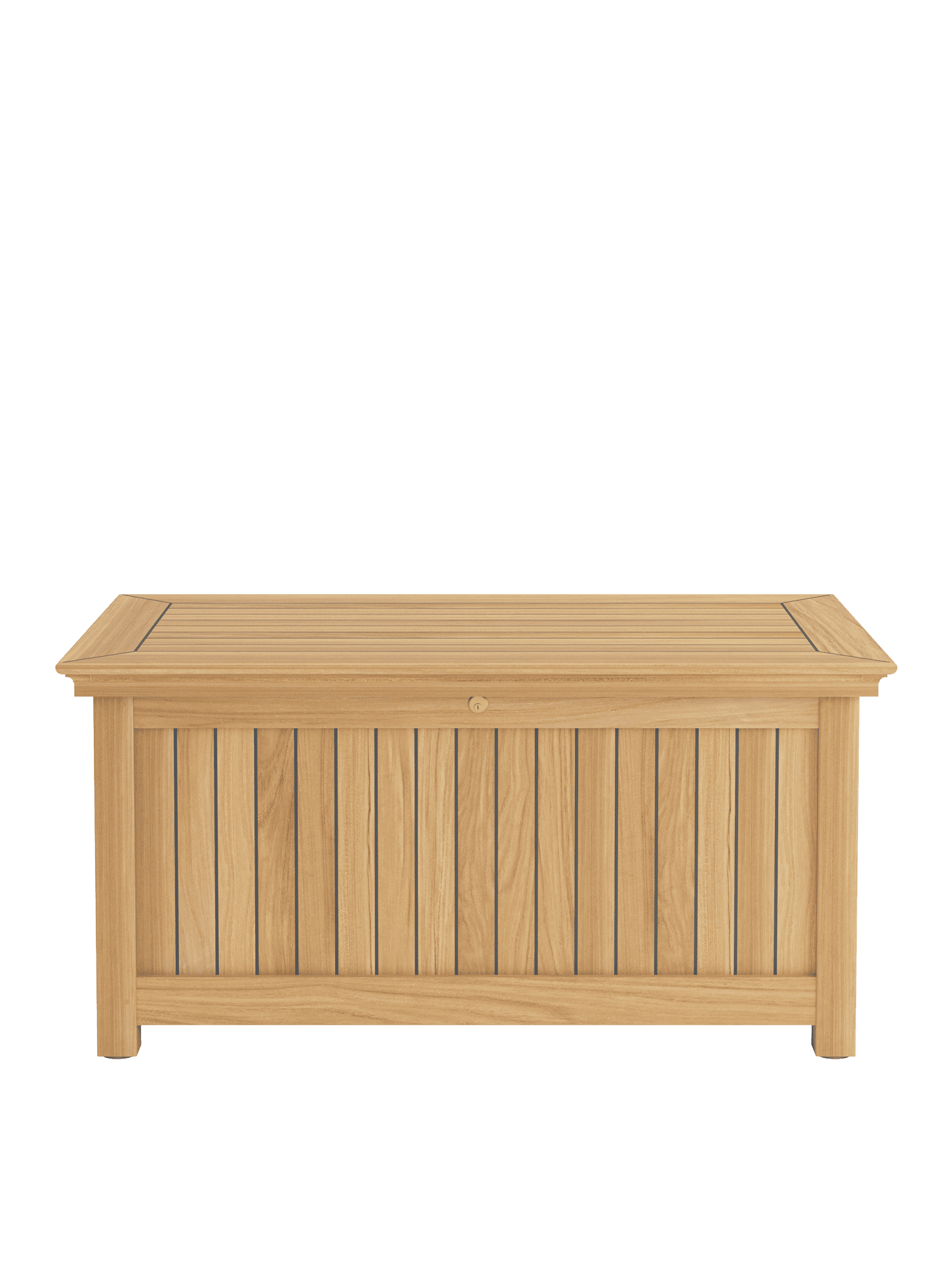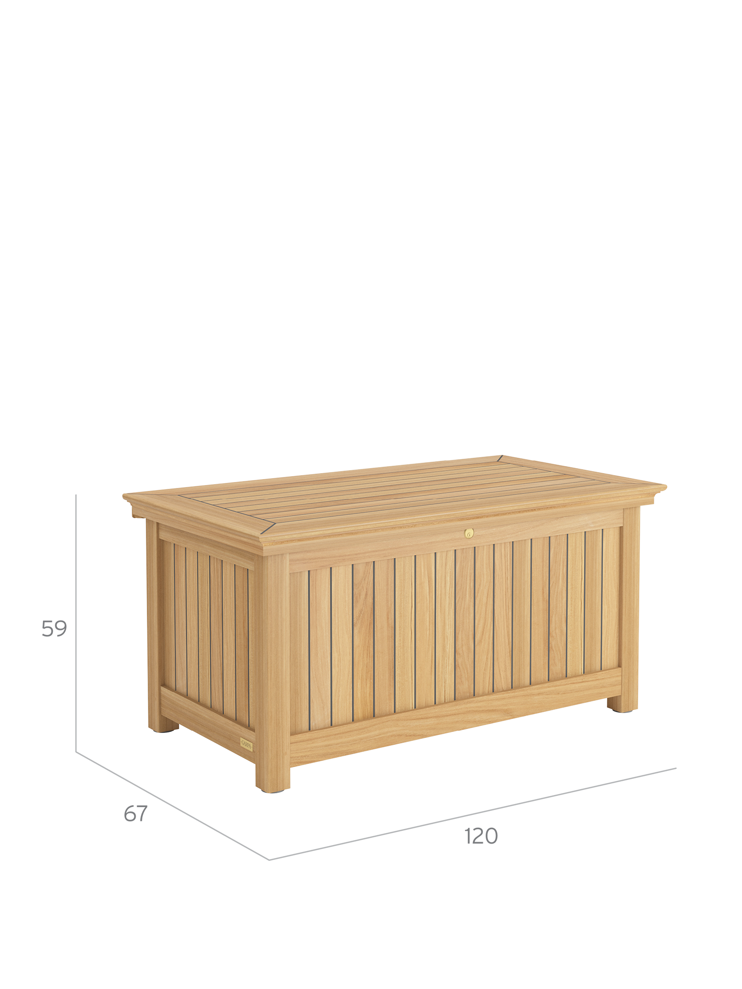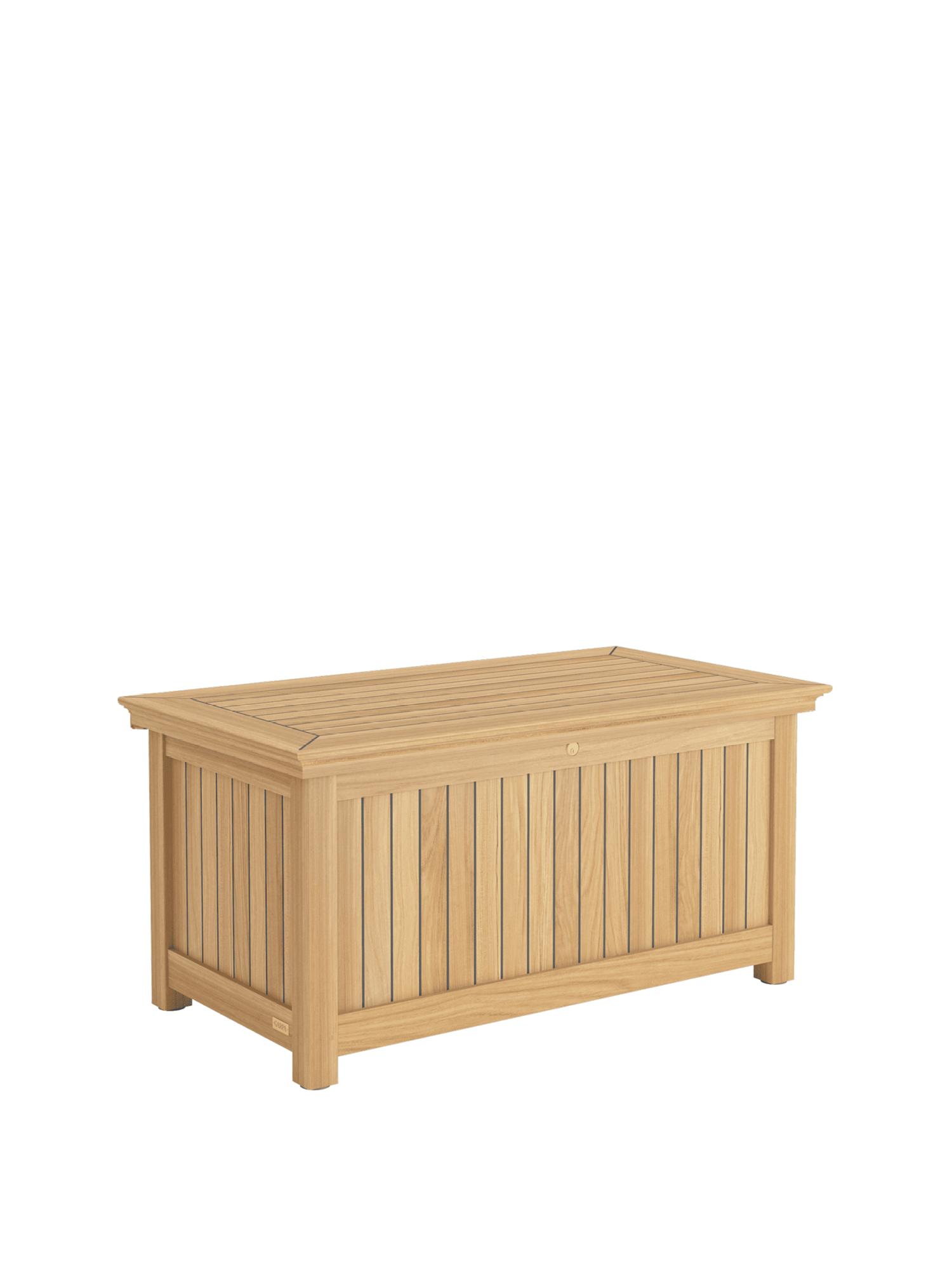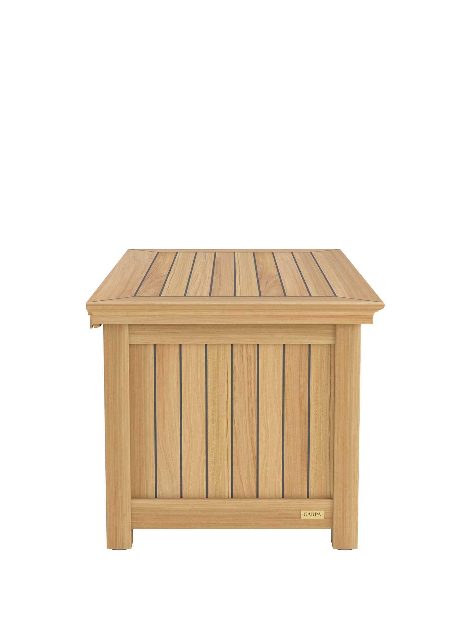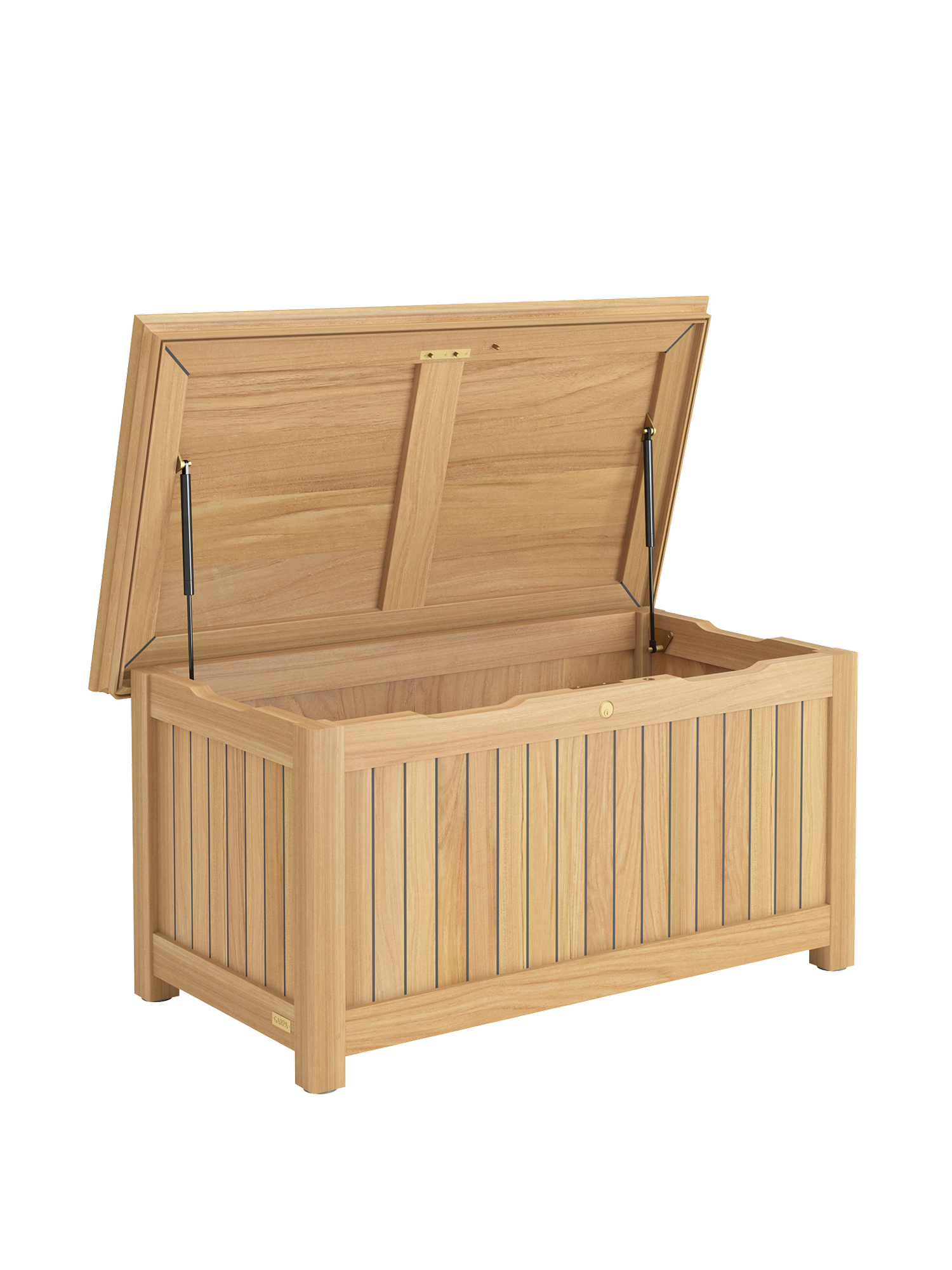 Garpa's cushion chests are perfection in form and function. All construction elements are of solid teak. The sides and lid are of weatherproof, laminated wood with a 2.5 mm teak veneer and sealed like the deck of a yacht. The lock and hinges are of high-quality brass.
