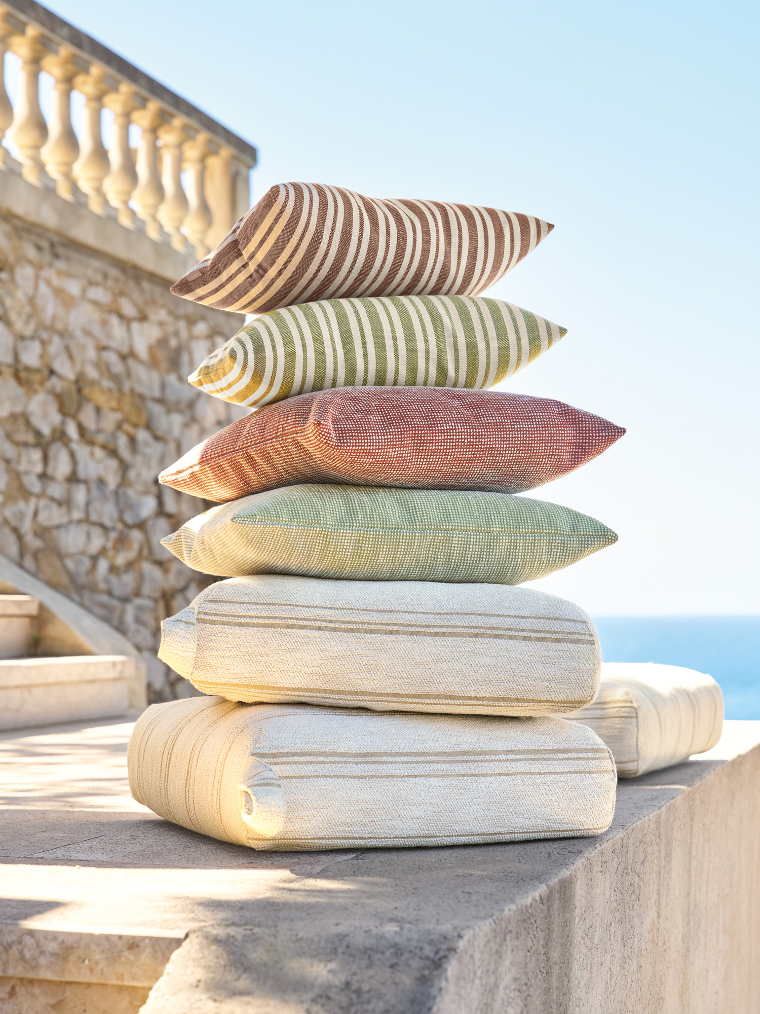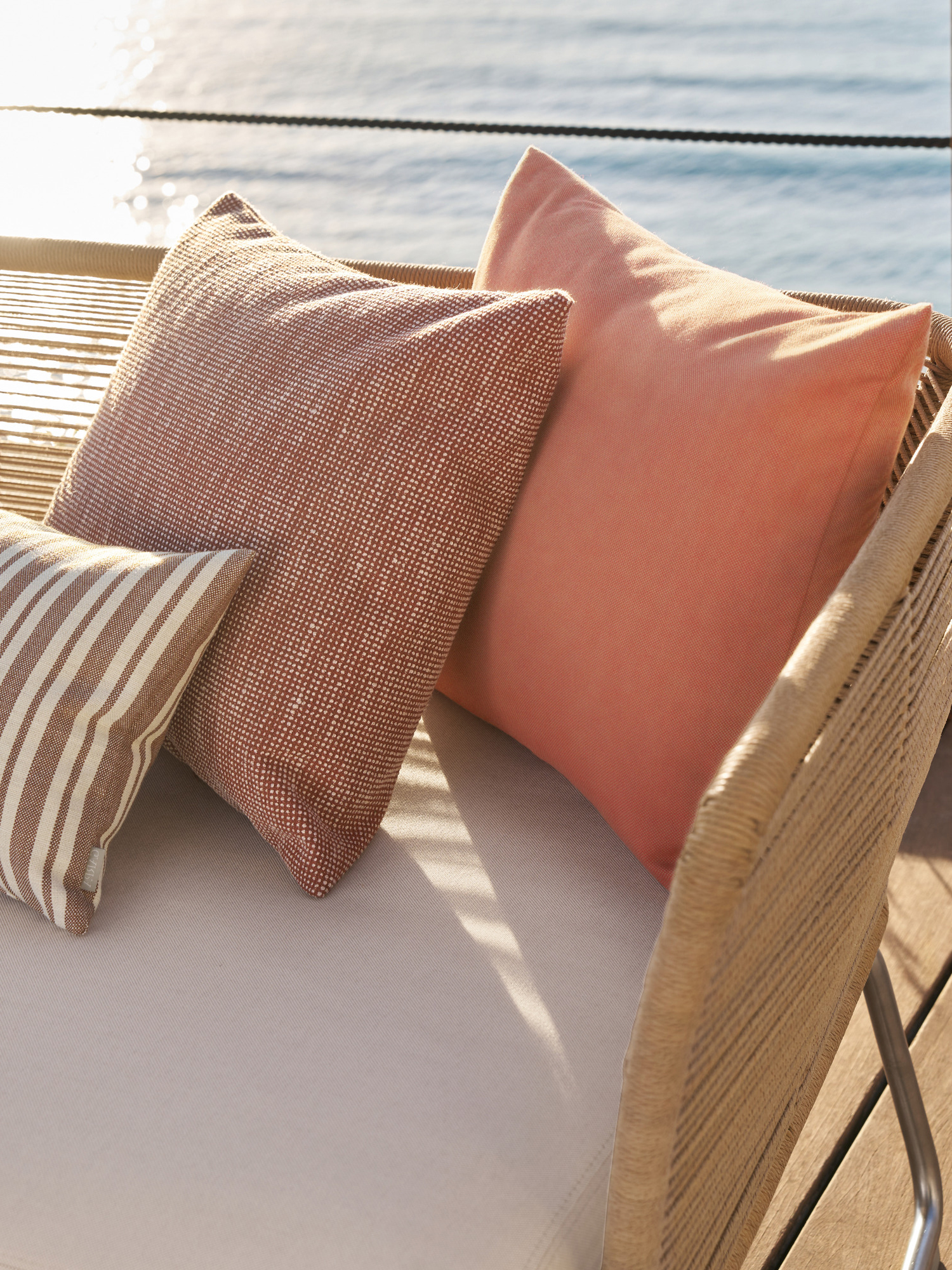 Water and dirt-repellent decorative cushion. Material and care: 100% polyacrylic, washable at 30° C delicates.