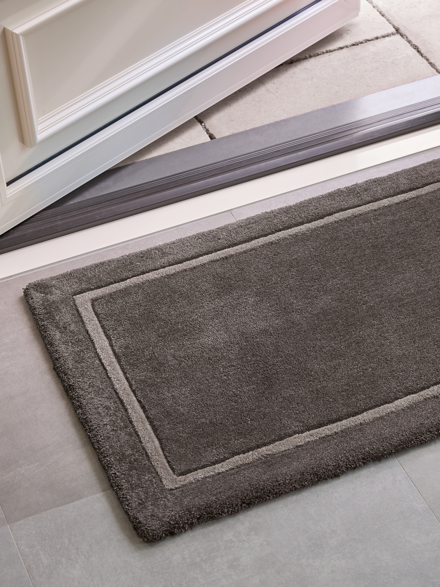 With its dense loops of polyacrylic the 90 x 60 cm indoor entrance rug reliably absorbs moisture from shoe soles. Each loop is hand-tufted. The underside is non-slip. If necessary, dry-cleaning is possible.