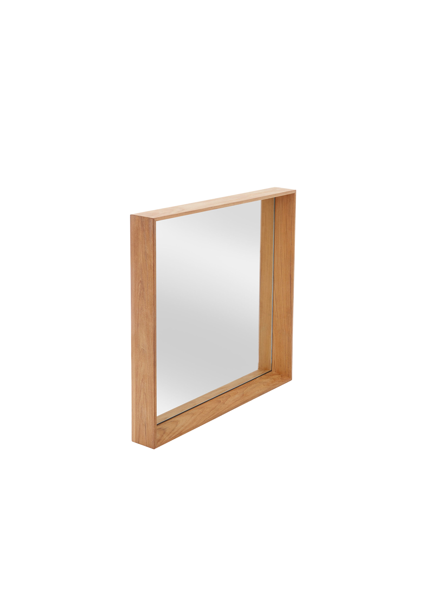 High and narrow, high and wide, narrow and horizontal or square: the large Fascino mirrors in various sizes and formats and can be hung up indoors or outdoors as desired. The high-quality, weatherproof teak frames are equipped with drip edges. Nevertheless, a dry, protected place on the house wall or under the eaves is recommended for the use.
