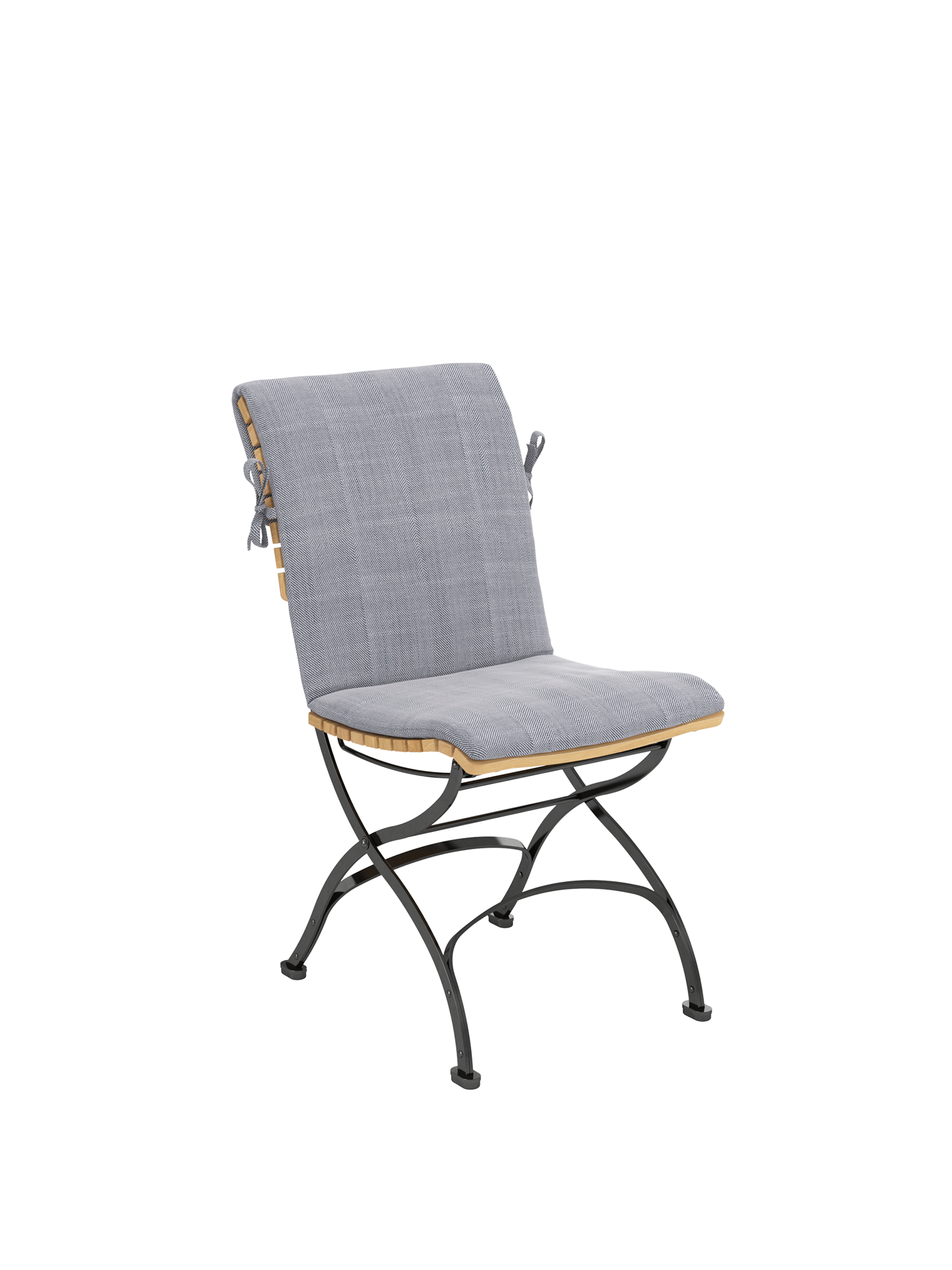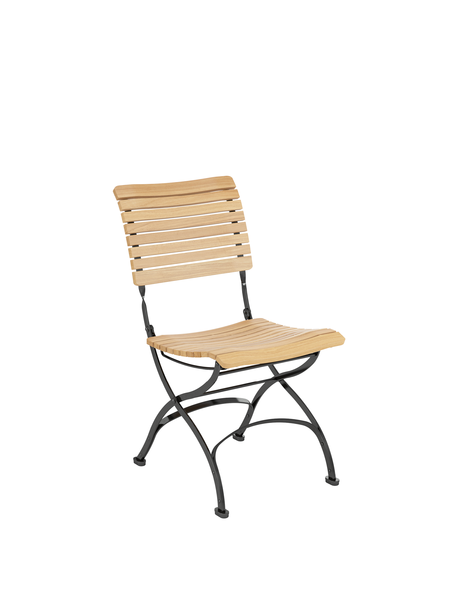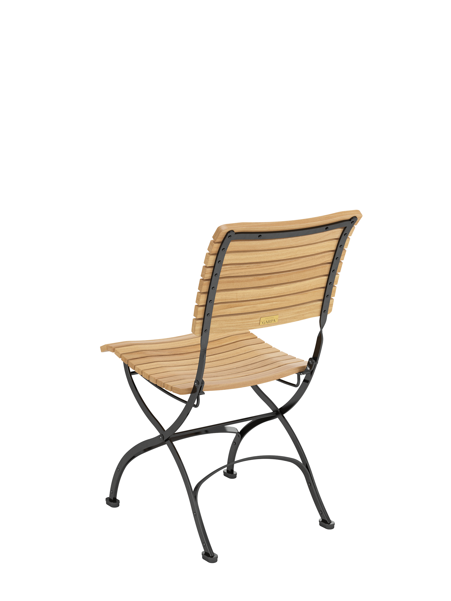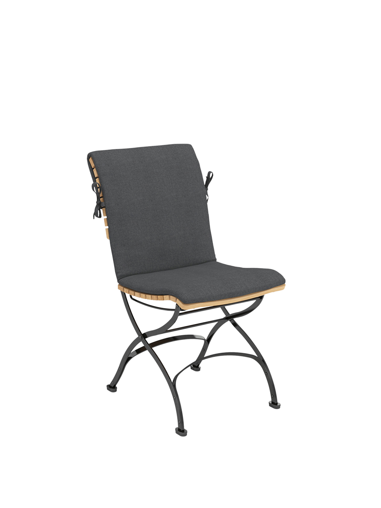 For easy and long-term outdoor use, all bolts of the joints are made of stainless steel, in rust-proof bearings. Polyamide runners under the seat ensure a smooth folding action and protect the powder-coated metal. The frame is made from galvanised, and therefore rust-protected, powder-coated steel. When folded, the chair is only 12 cm deep. Foot gliders of hard-wearing synthetic material protect valuable flooring from scratches.