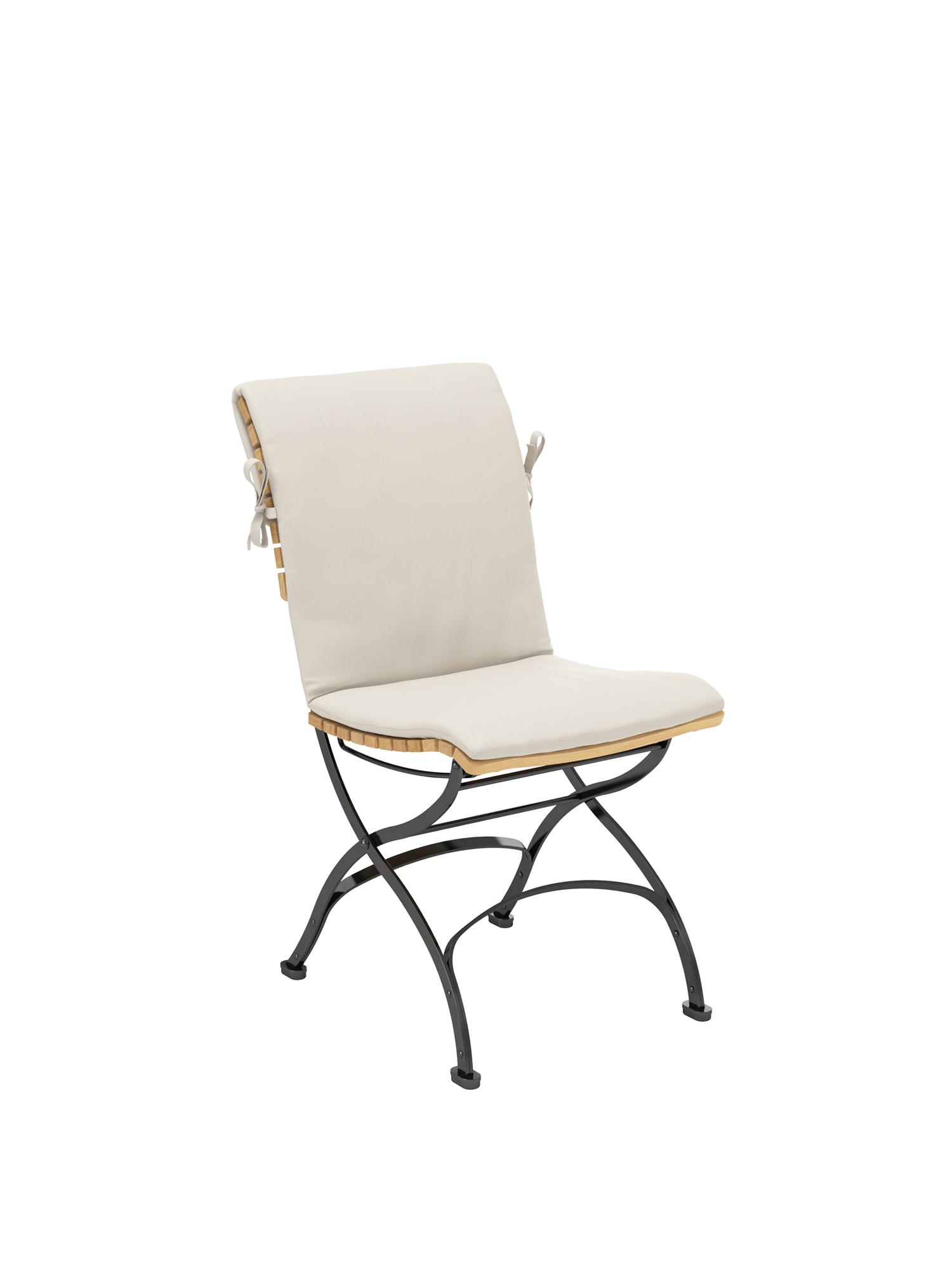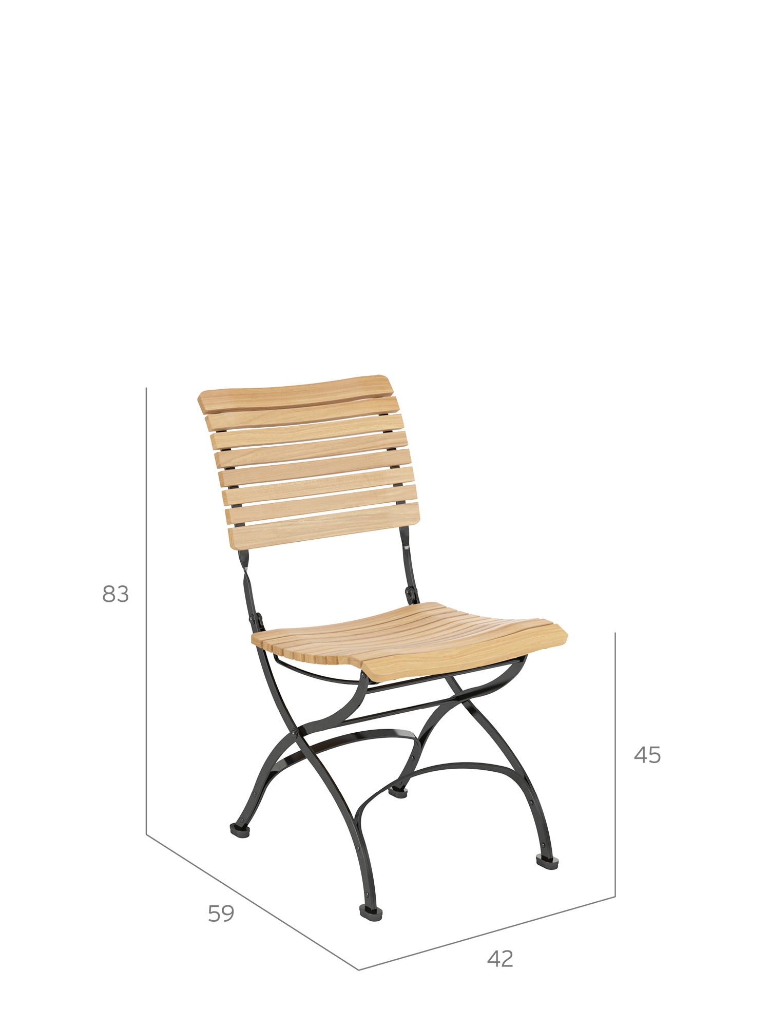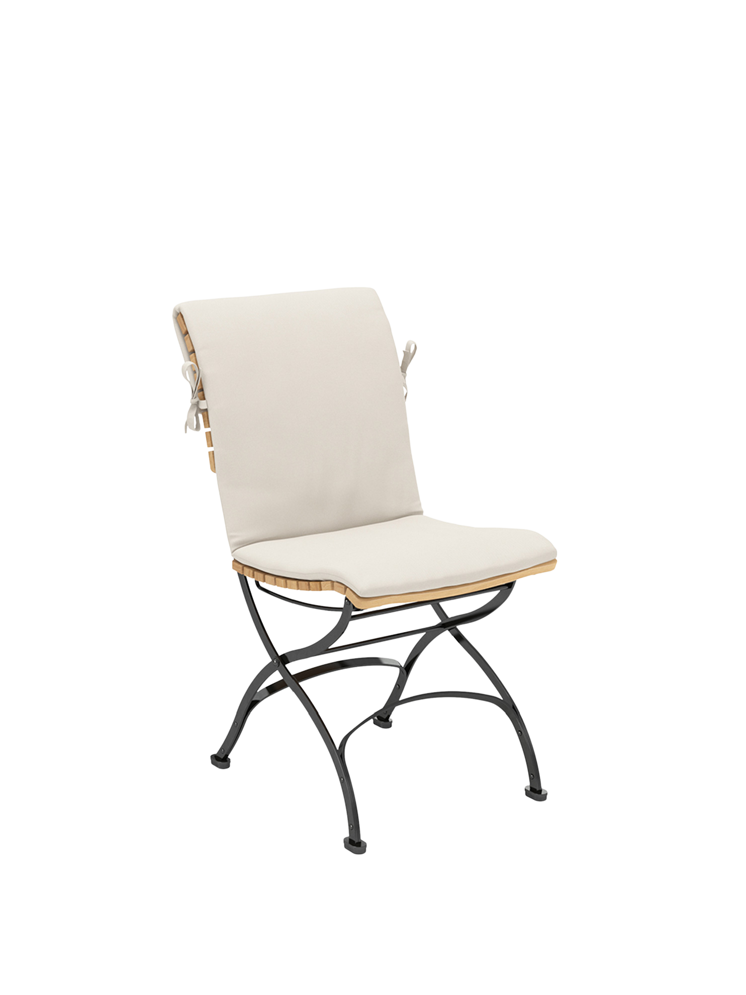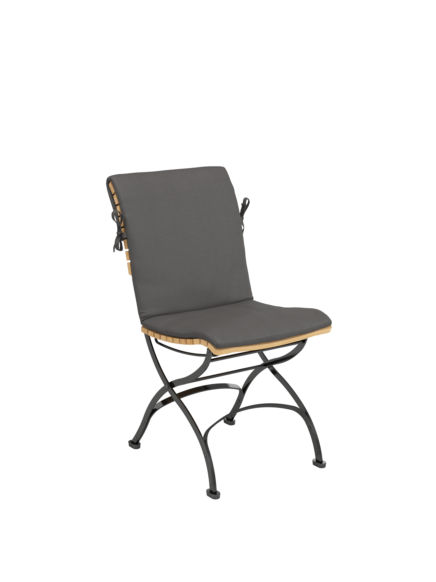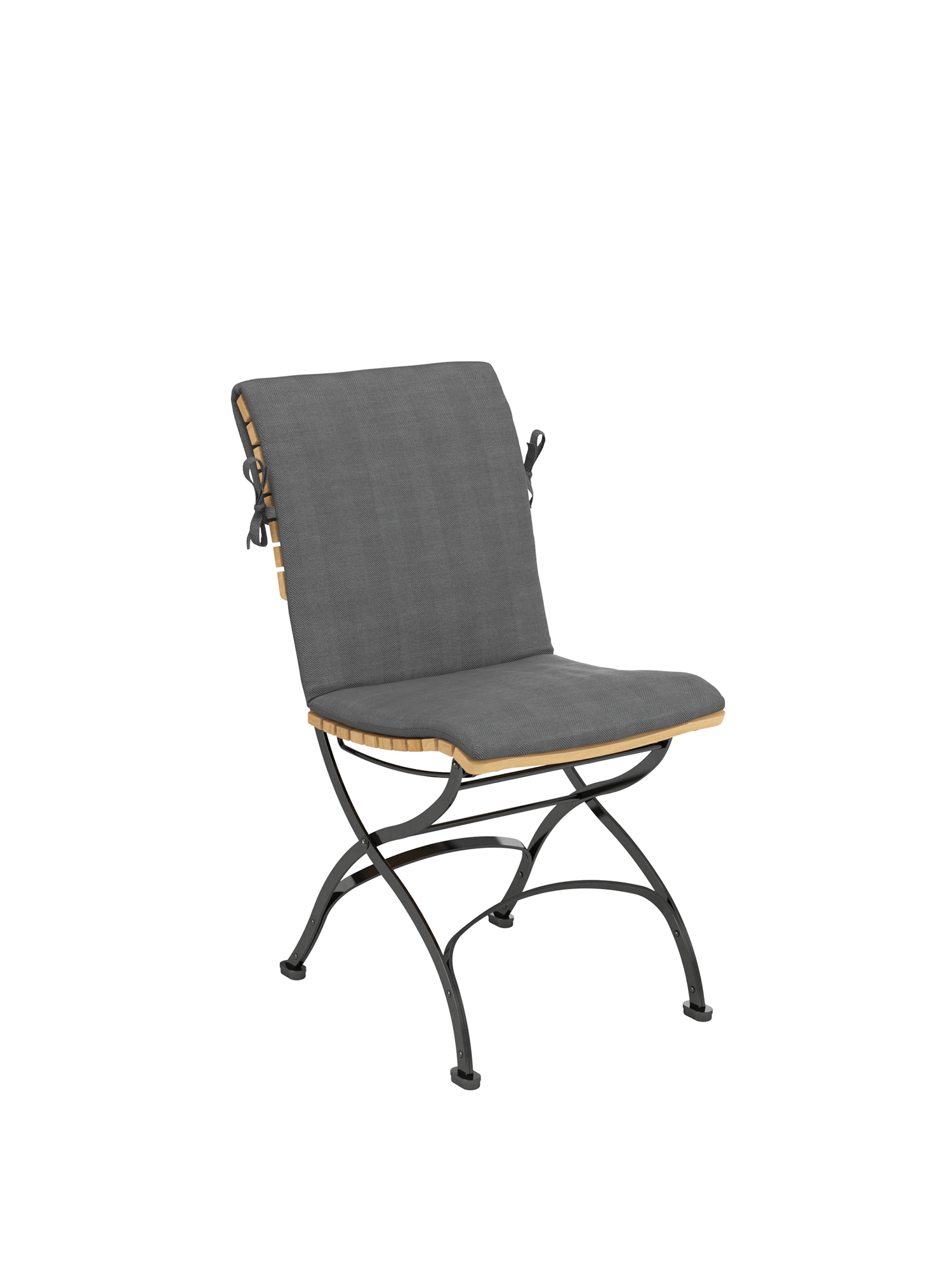 For easy and long-term outdoor use, all bolts of the joints are made of stainless steel, in rust-proof bearings. Polyamide runners under the seat ensure a smooth folding action and protect the powder-coated metal. The frame is made from galvanised, and therefore rust-protected, powder-coated steel. When folded, the chair is only 12 cm deep. Foot gliders of hard-wearing synthetic material protect valuable flooring from scratches.