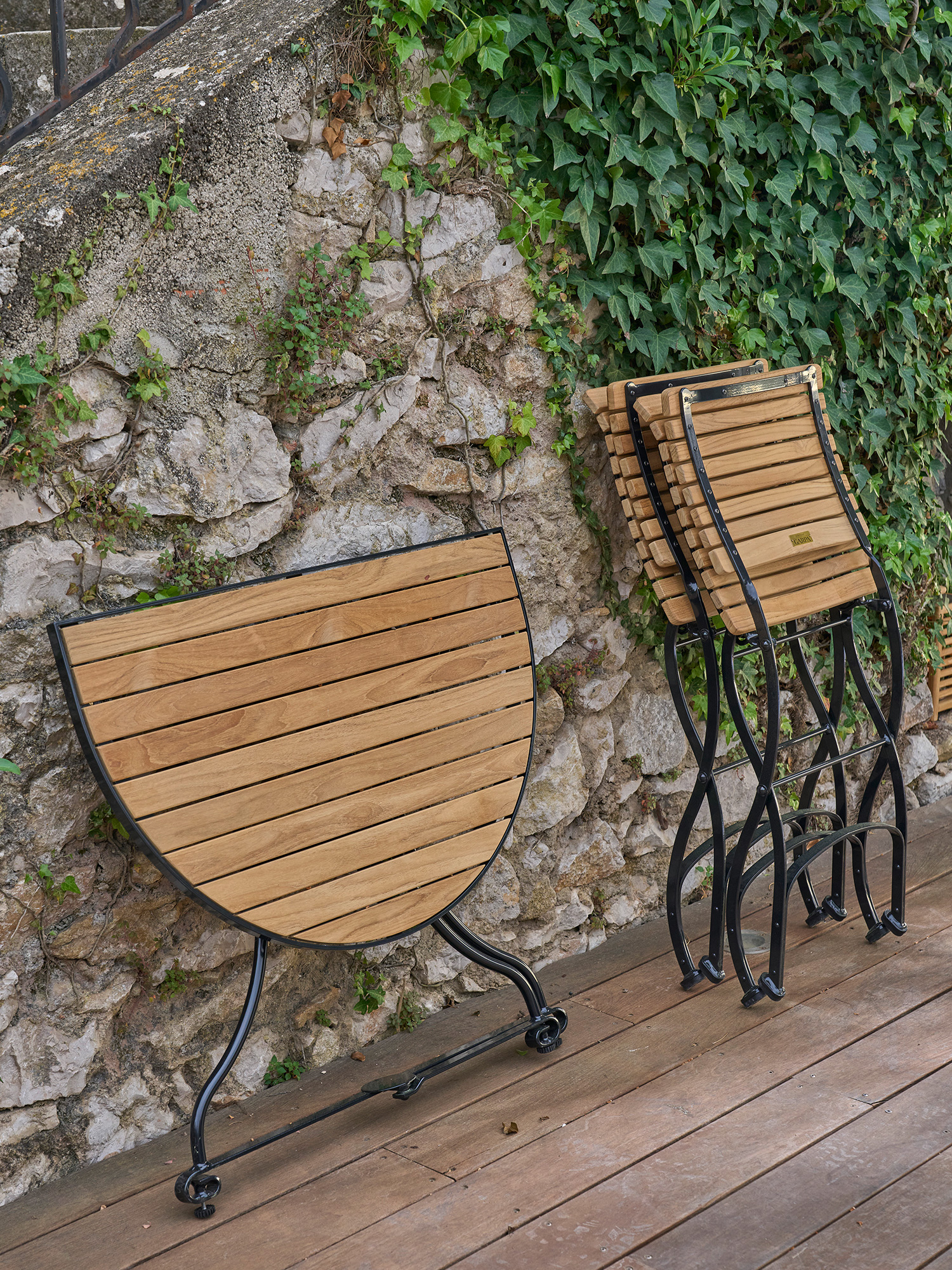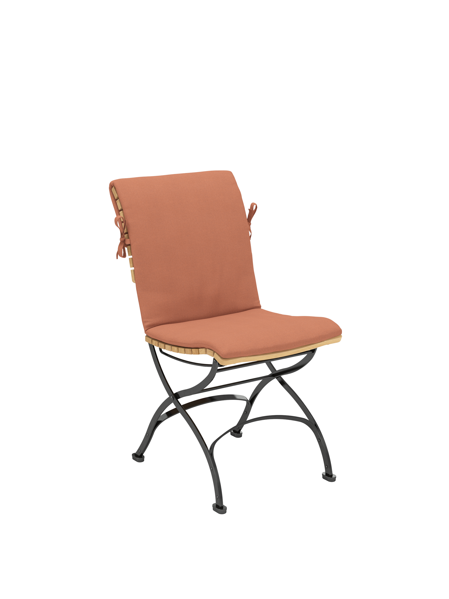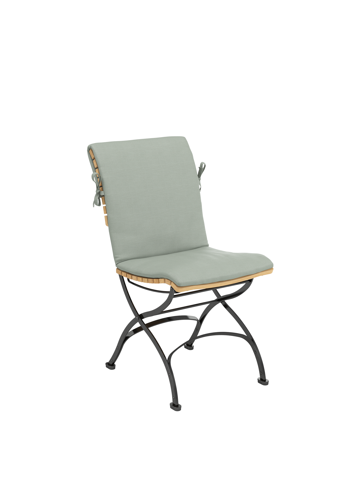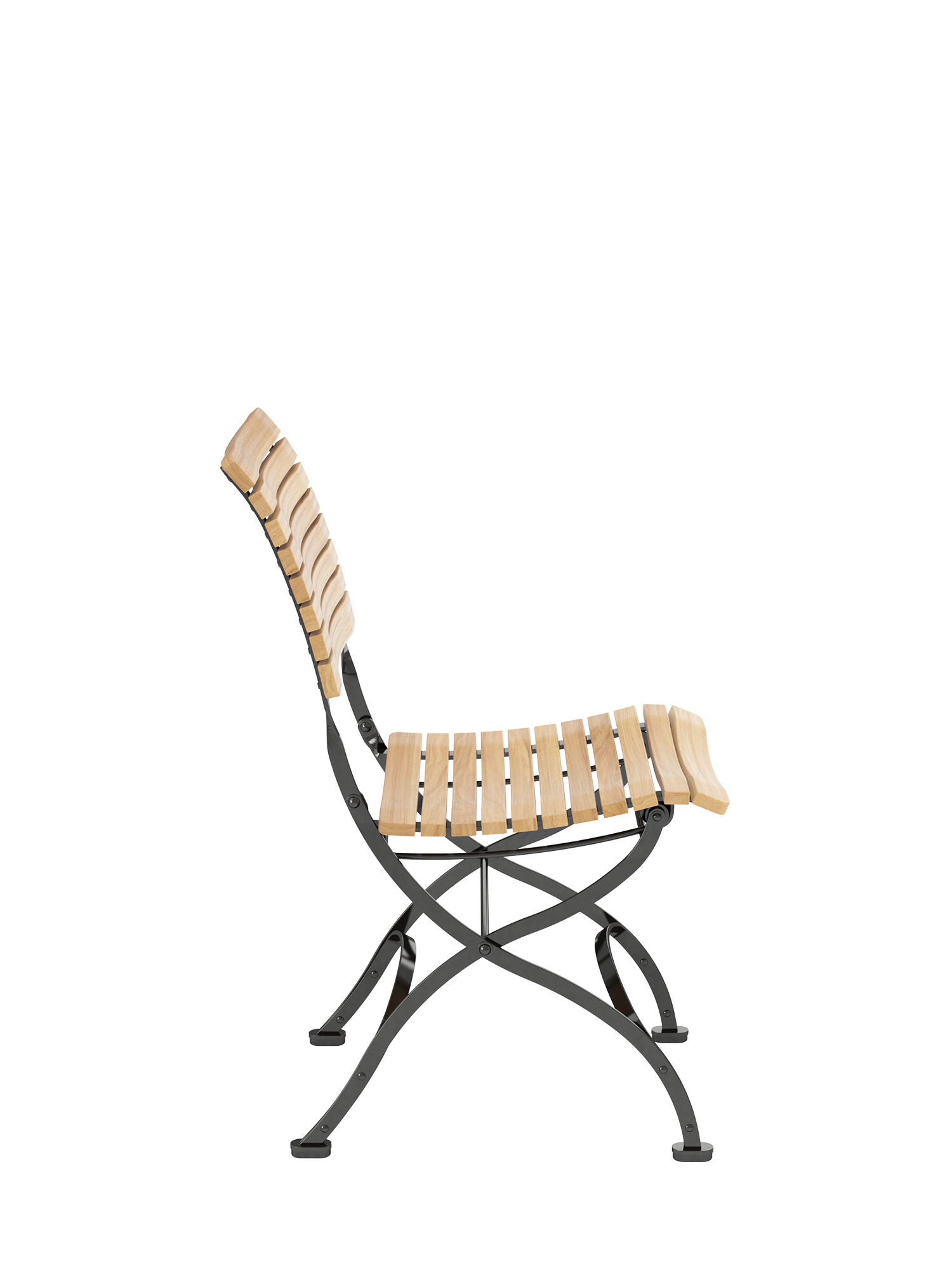 For easy and long-term outdoor use, all bolts of the joints are made of stainless steel, in rust-proof bearings. Polyamide runners under the seat ensure a smooth folding action and protect the powder-coated metal. The frame is made from galvanised, and therefore rust-protected, powder-coated steel. When folded, the chair is only 12 cm deep. Foot gliders of hard-wearing synthetic material protect valuable flooring from scratches.