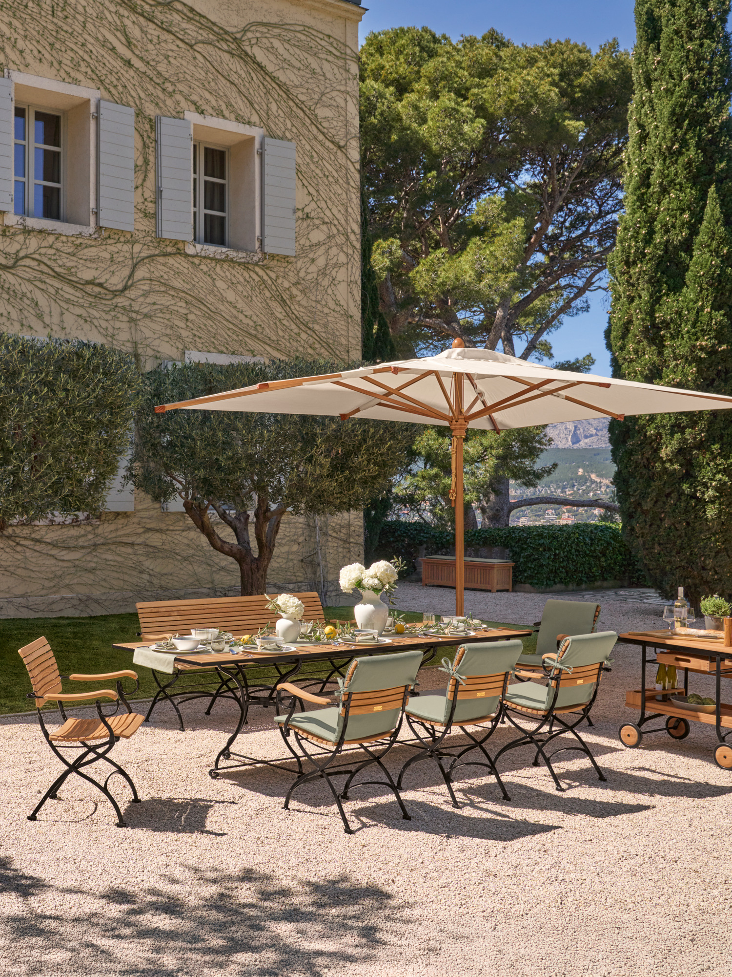 Traditional forms with modern ergonomics: The comfortable garden chair combines high-quality materials with a classic design.