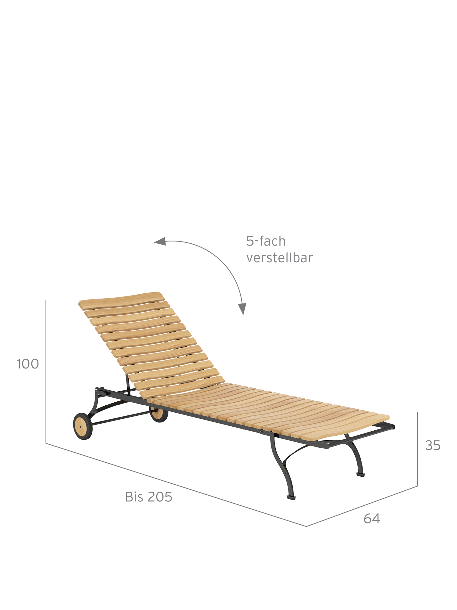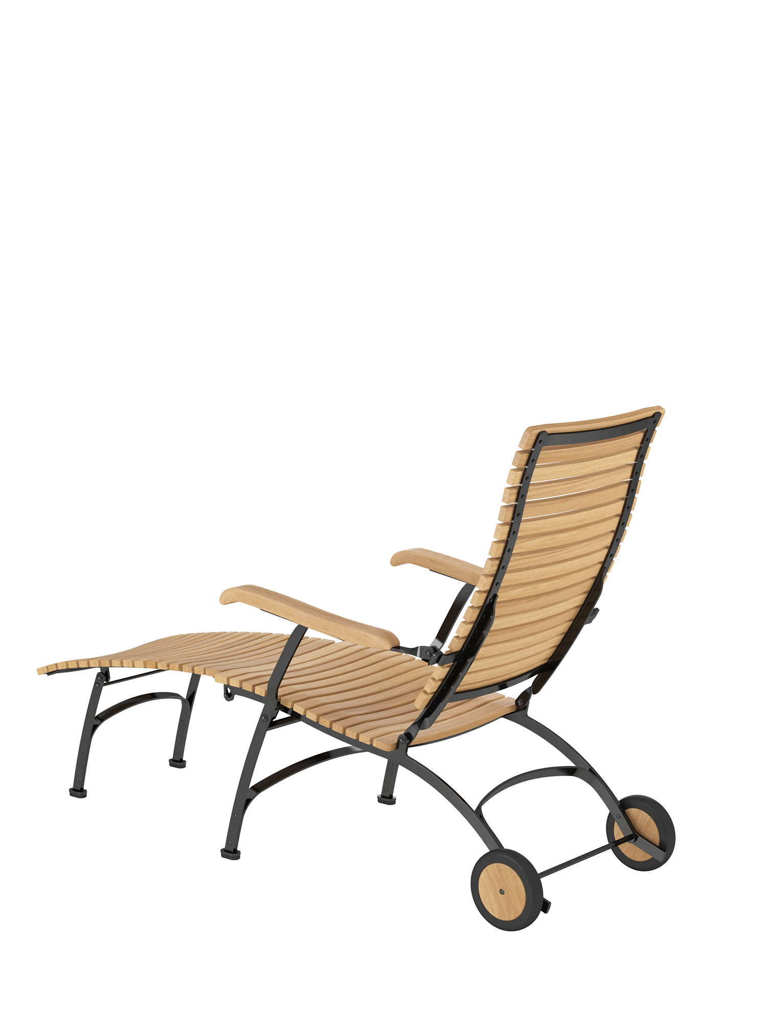 - Ergonomically shaped reclining surface made of weather-resistant plantation teak