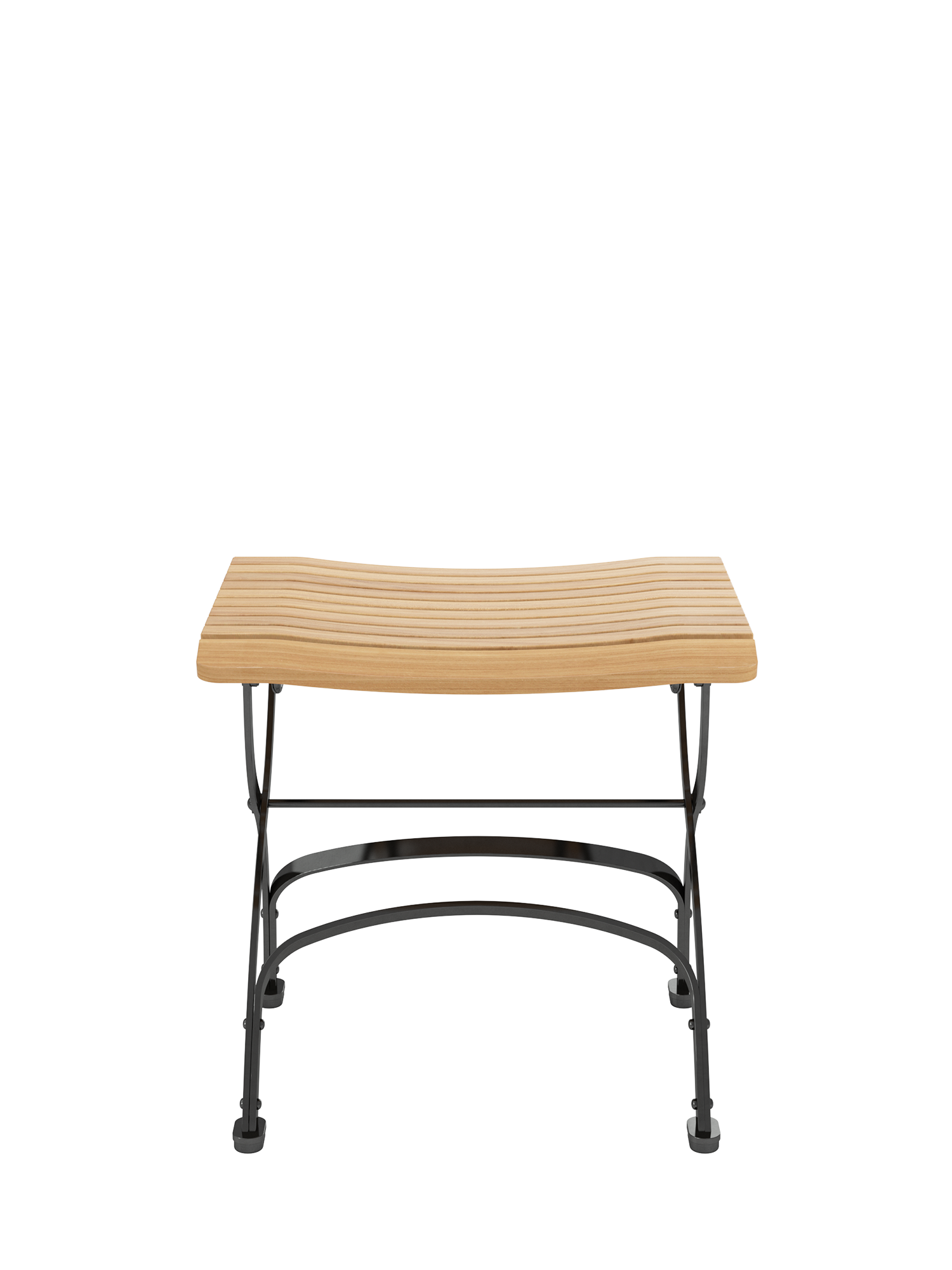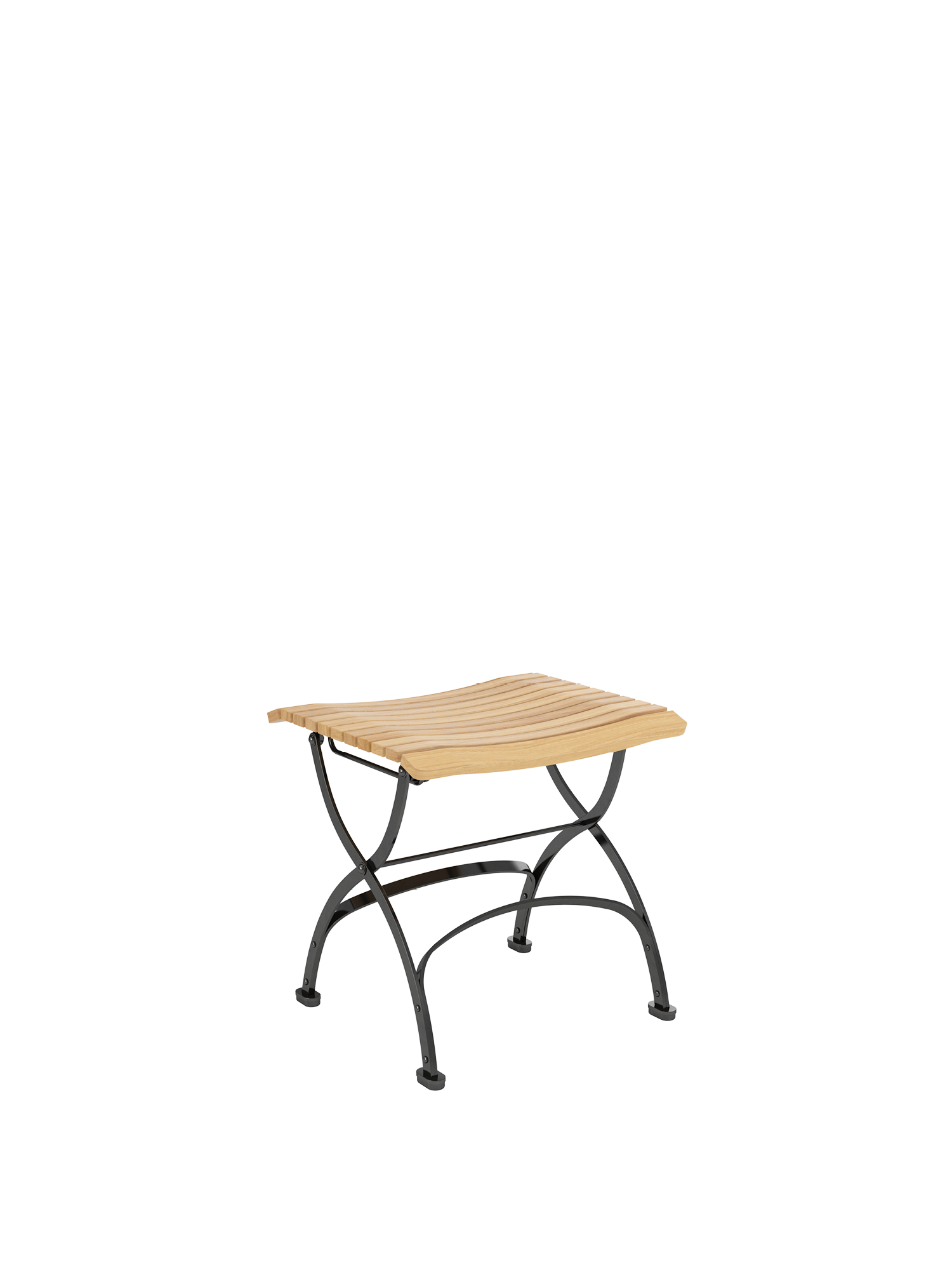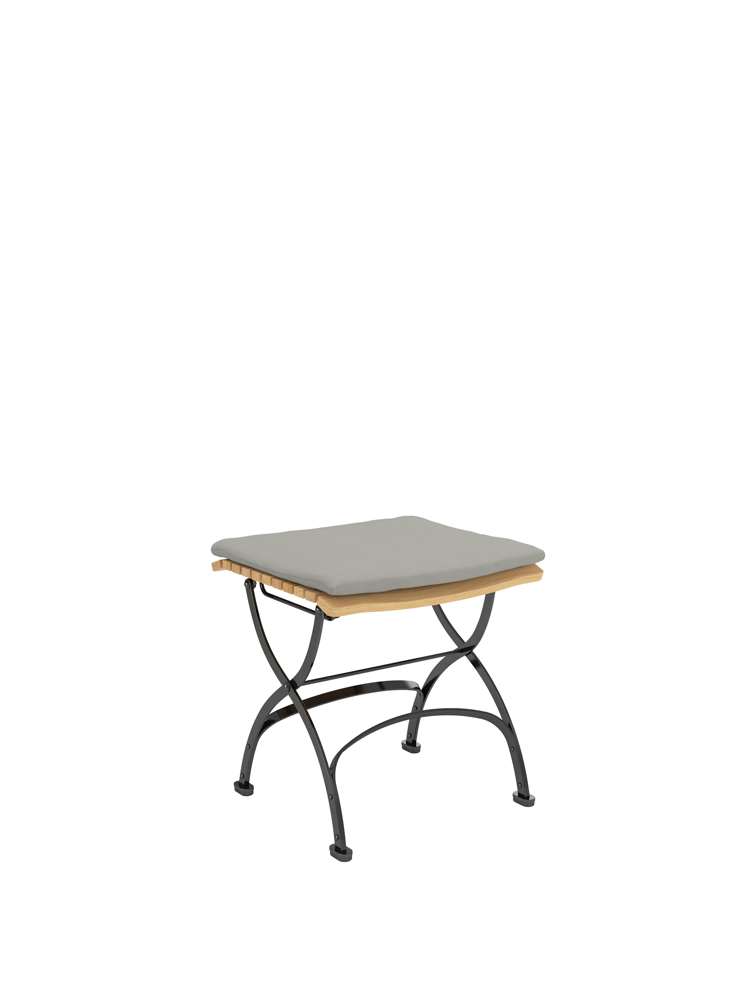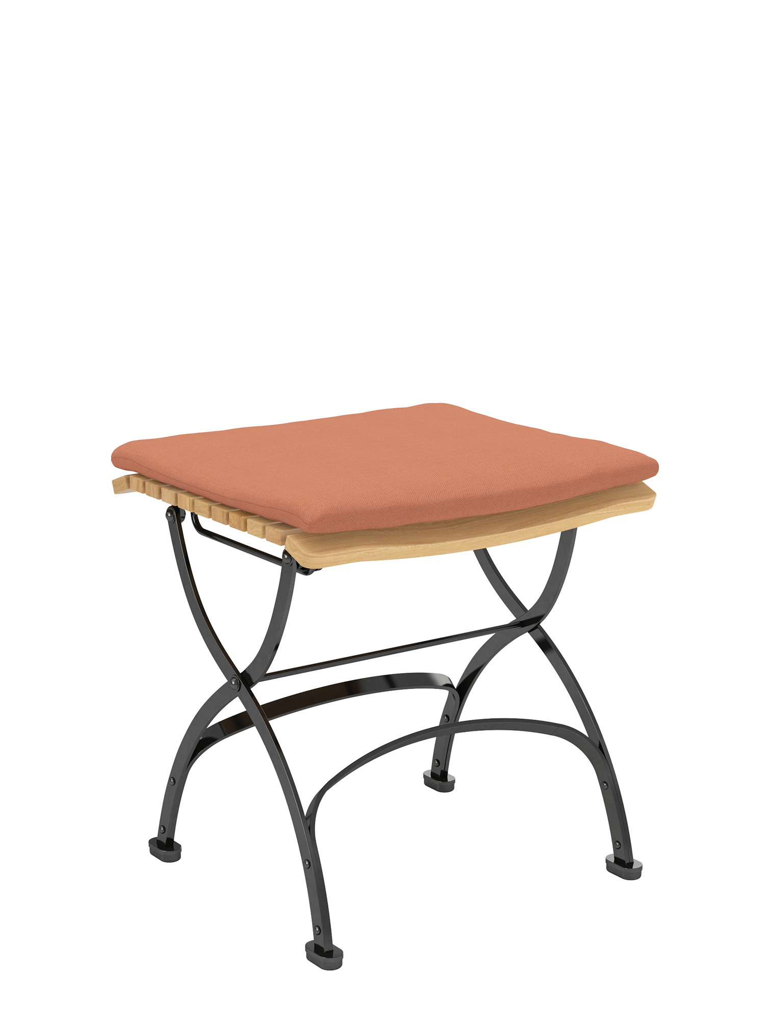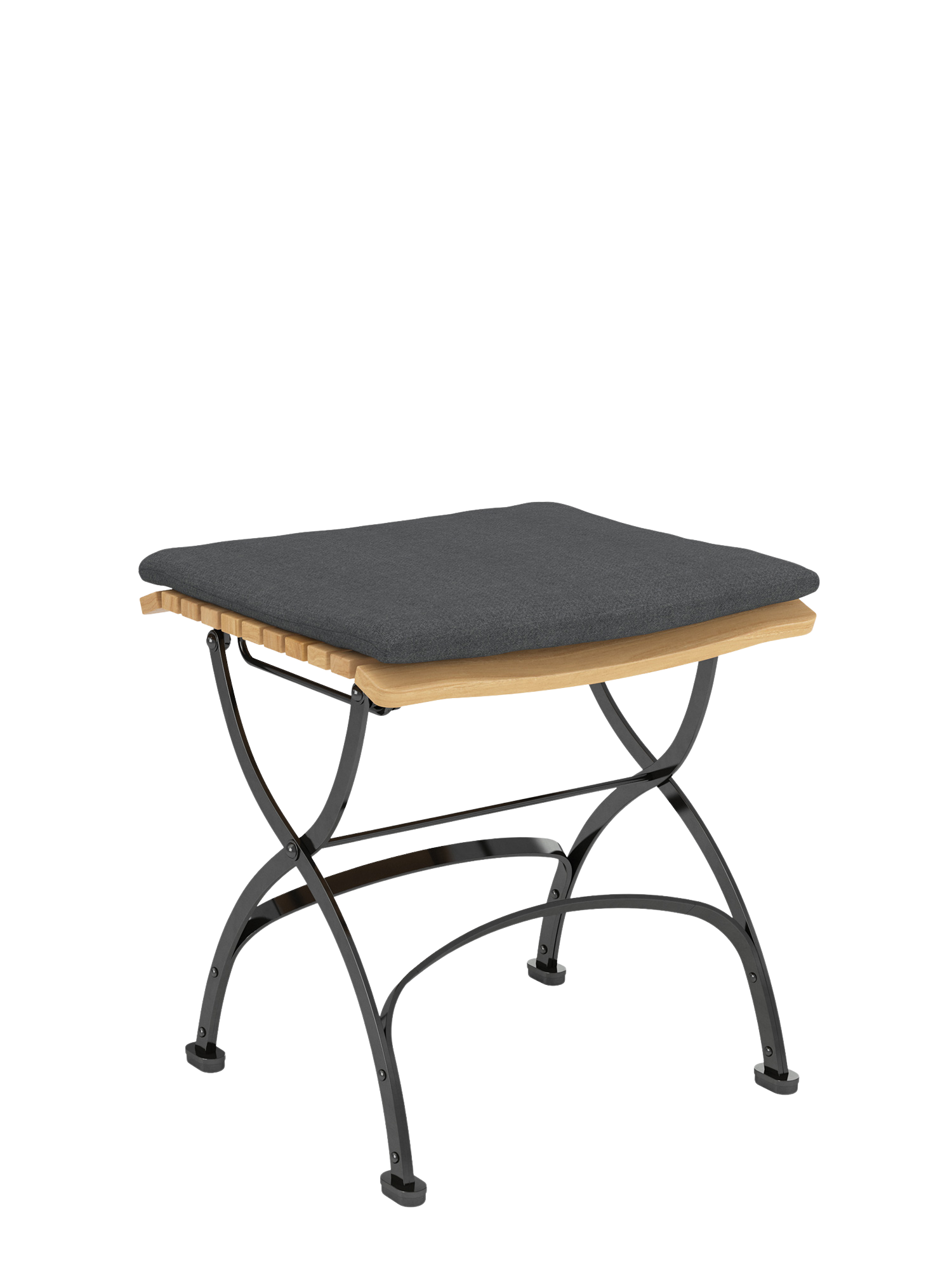 Easily unfolded in no time, it transforms the recliner into a deck chair and doubles as a simple seating option. Its seat is made of ergonomically shaped teak slats, while the frame is crafted from galvanised, powder-coated steel. Cushions in various colors further enhance the comfort of the garden furniture and add subtle accents.