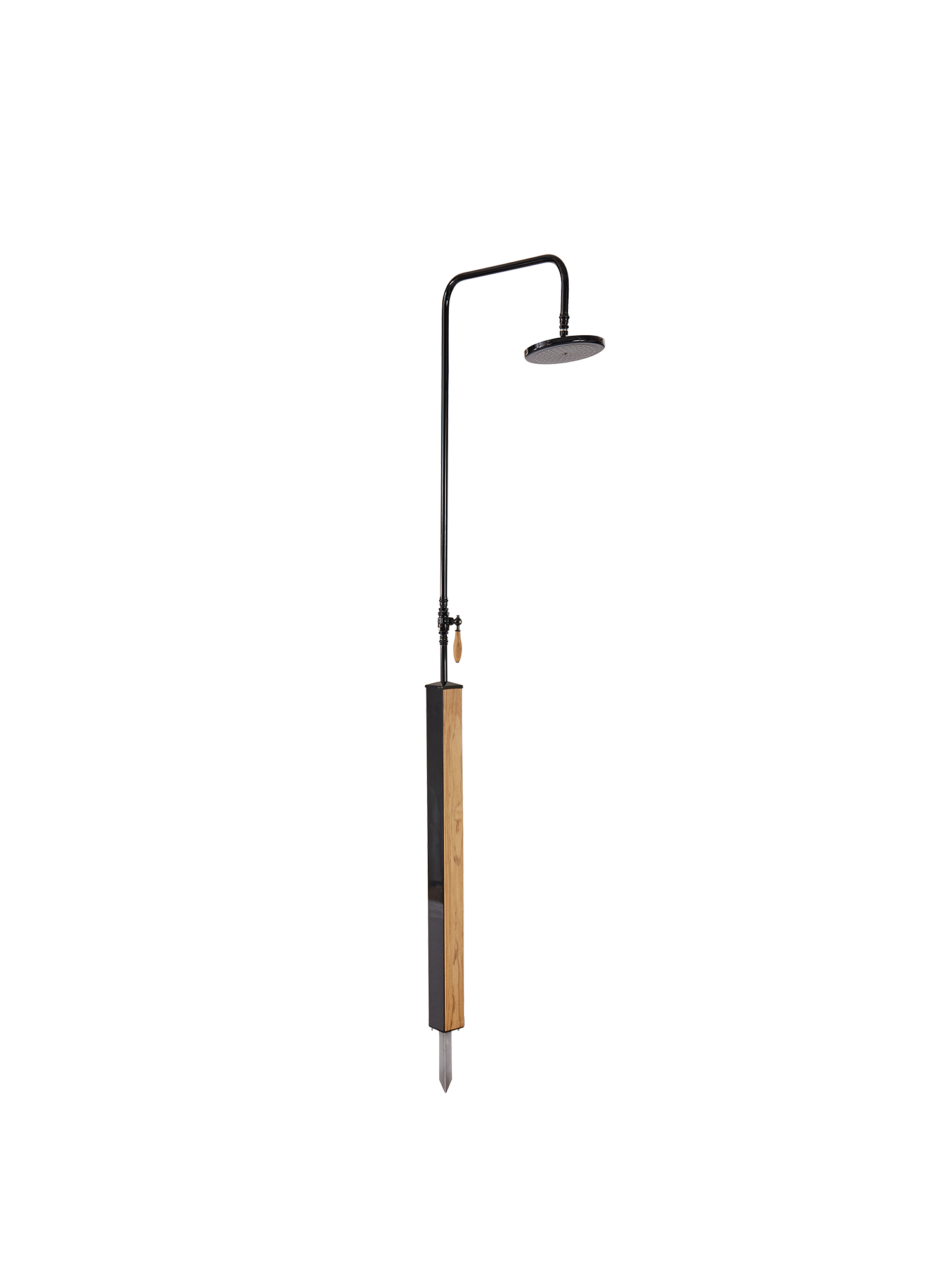 The garden shower conserves resources in that it can also be used cold – without a gas or electricity connection – and the used water will do the garden good, instead of flowing into the sewage system. To avoid polluting the soil, we recommend showering with natural soap.
