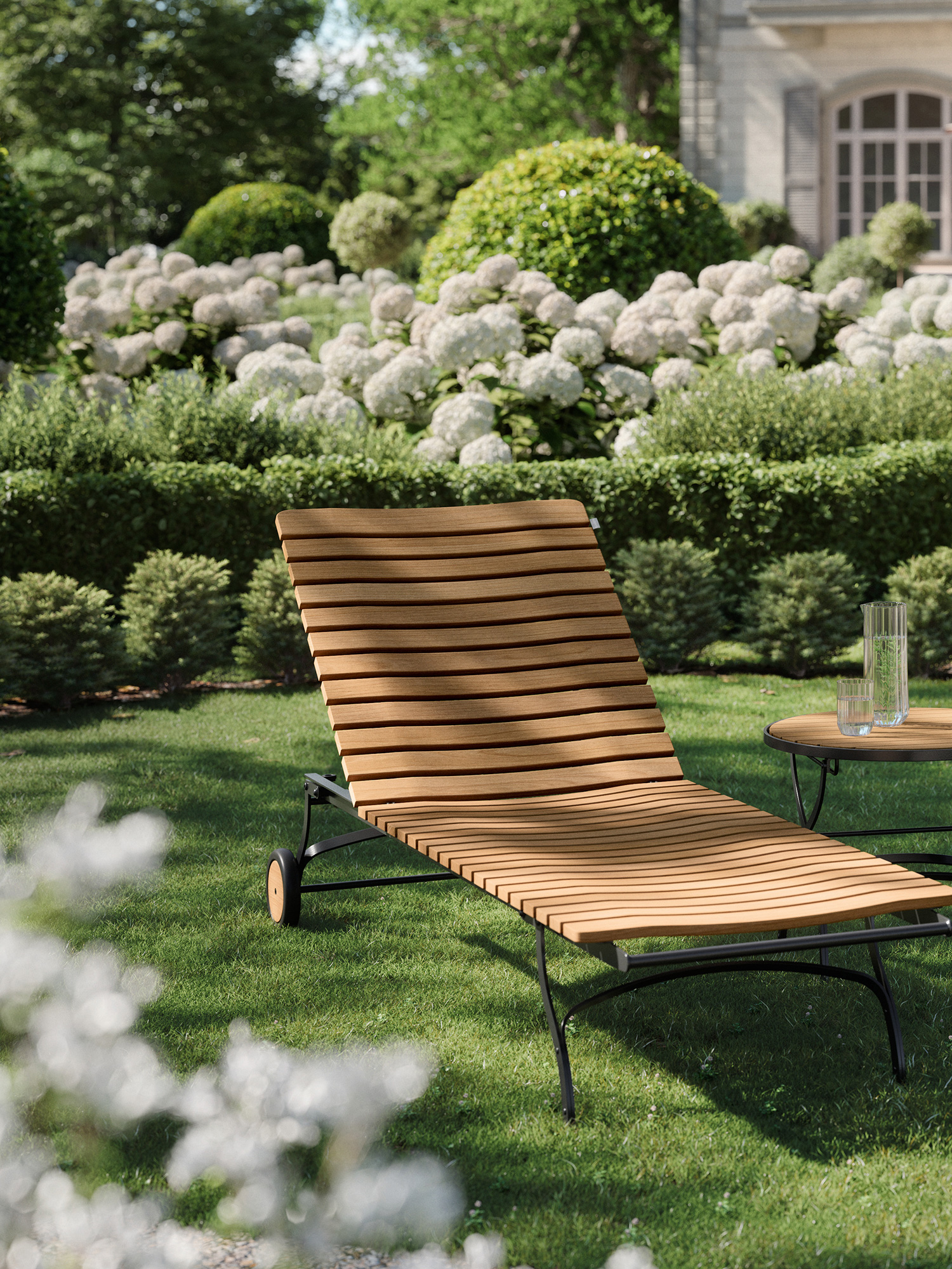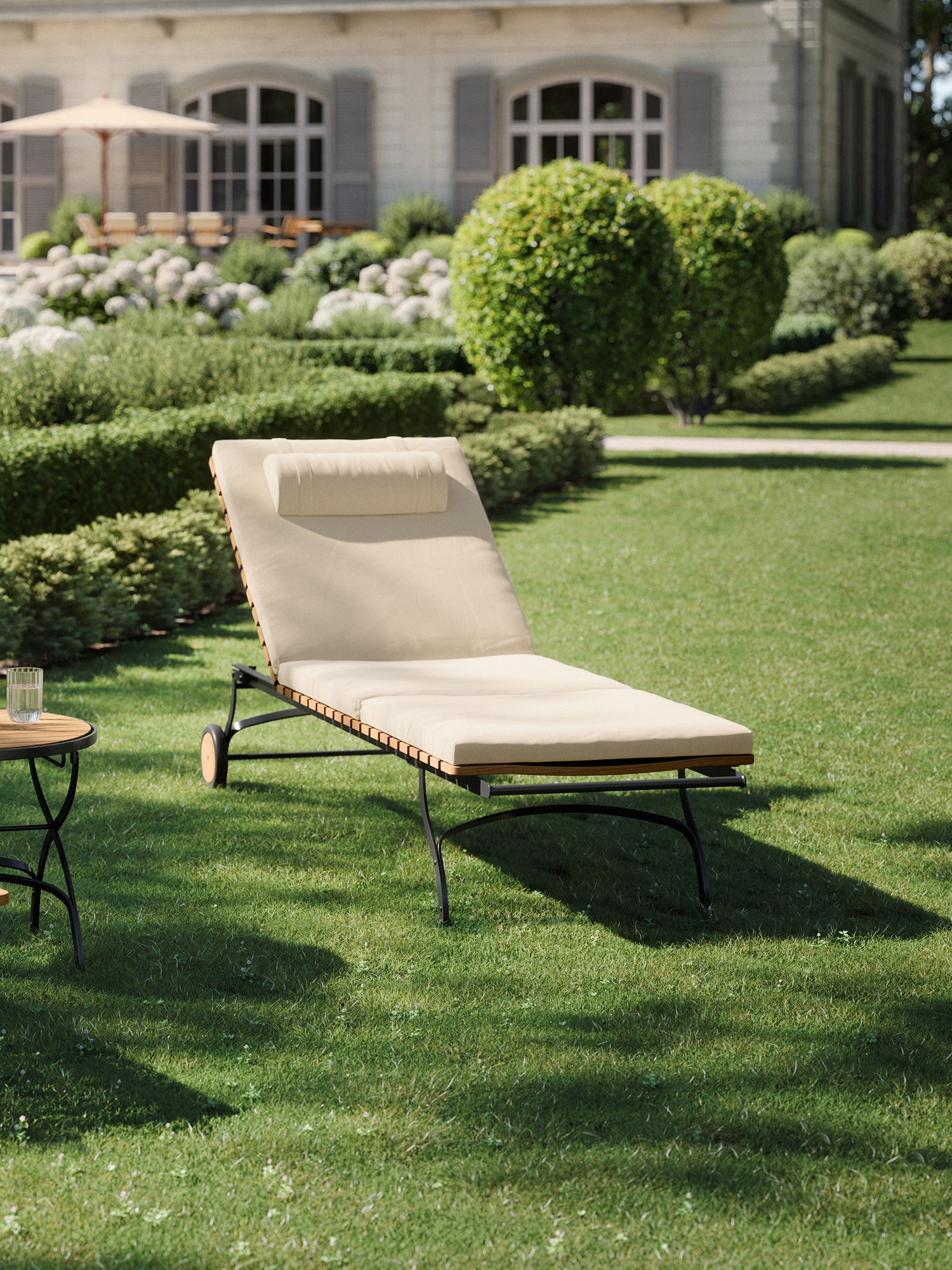 The distinctive design of the garden lounger combines traditional forms with the advantages of contemporary craftsmanship.