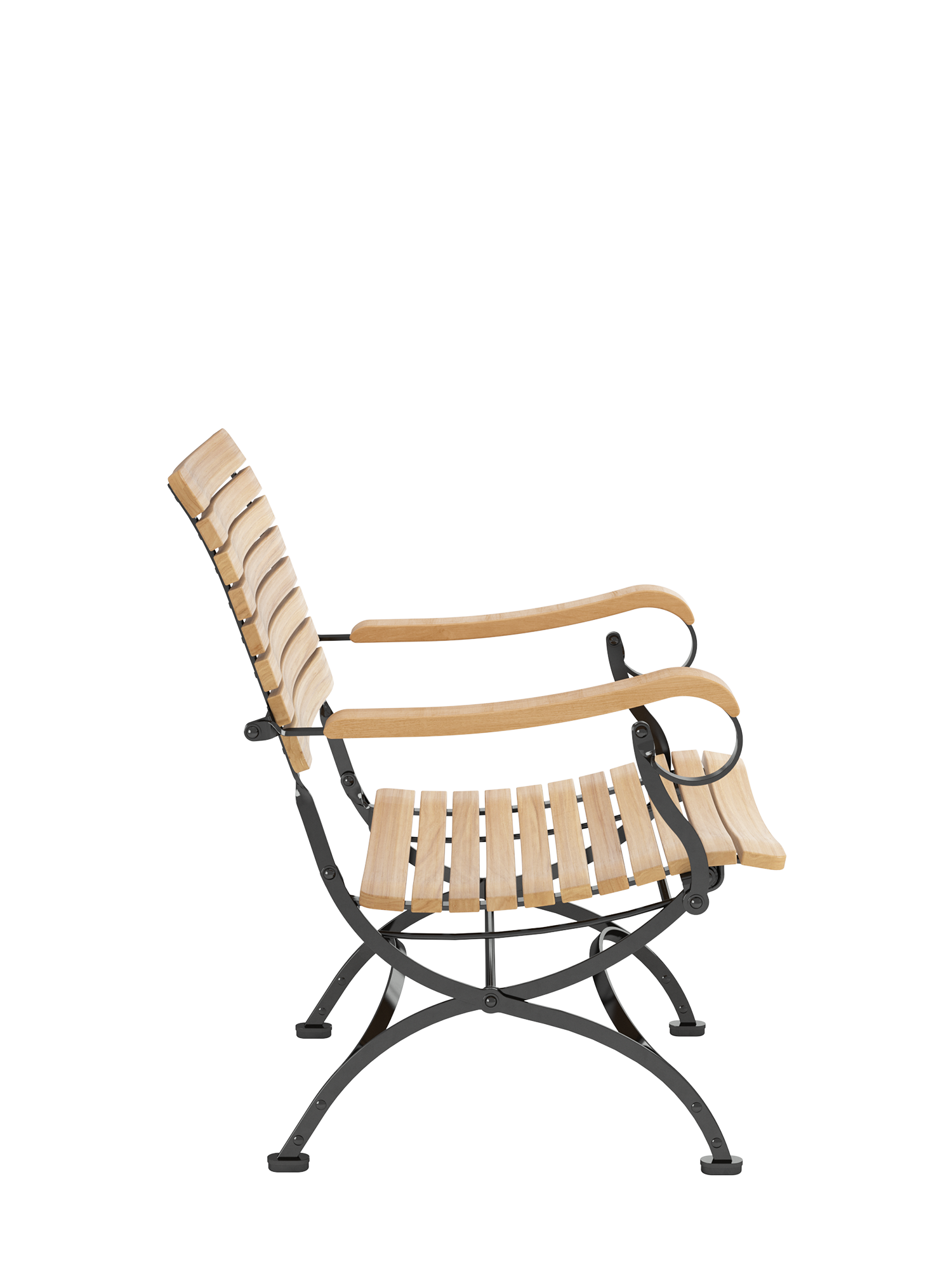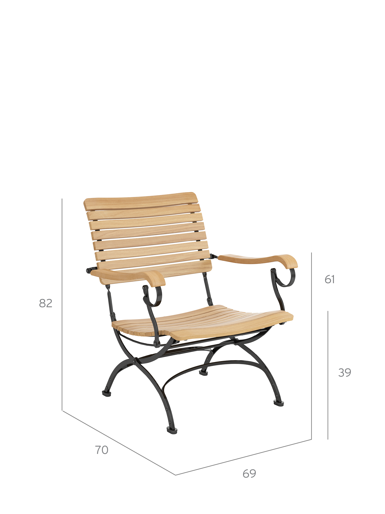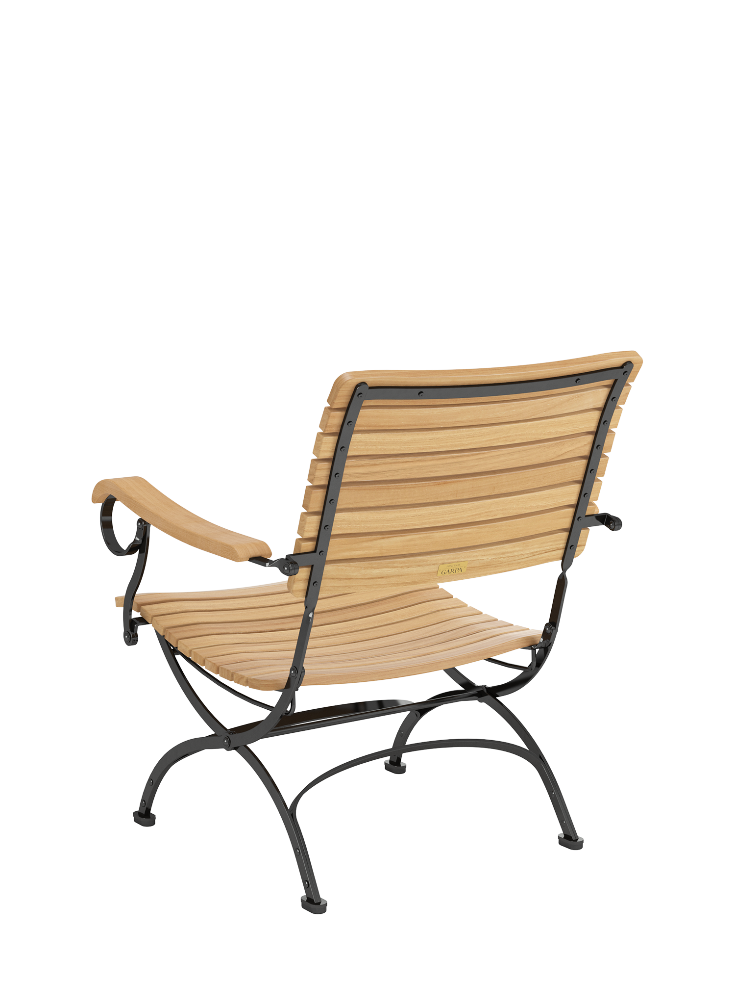 - Ergonomically shaped seat and backrest made of plantation teak