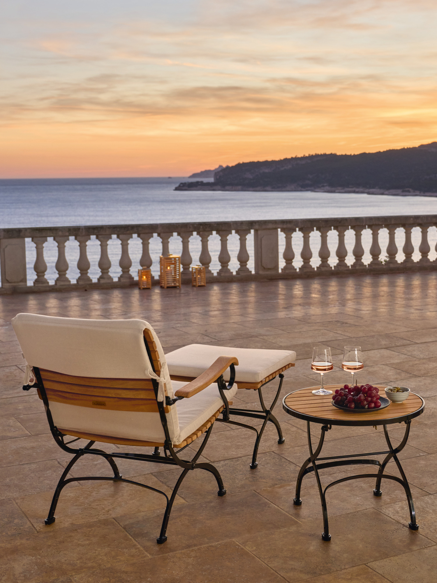Lower, wider and deeper, the armchair invites you to spend cosy hours outdoors. And as a stand-alone piece with a matching footstool, it is also ideal for putting your feet up.