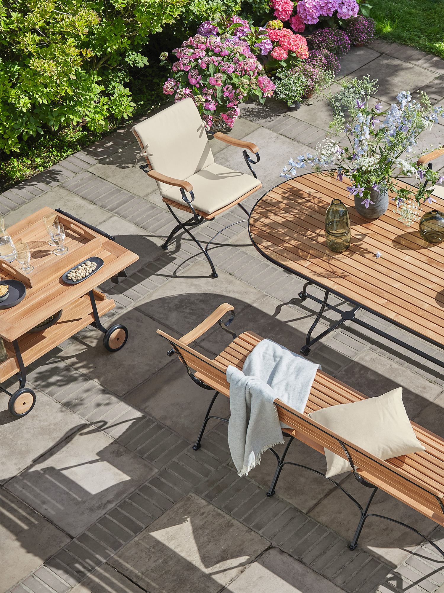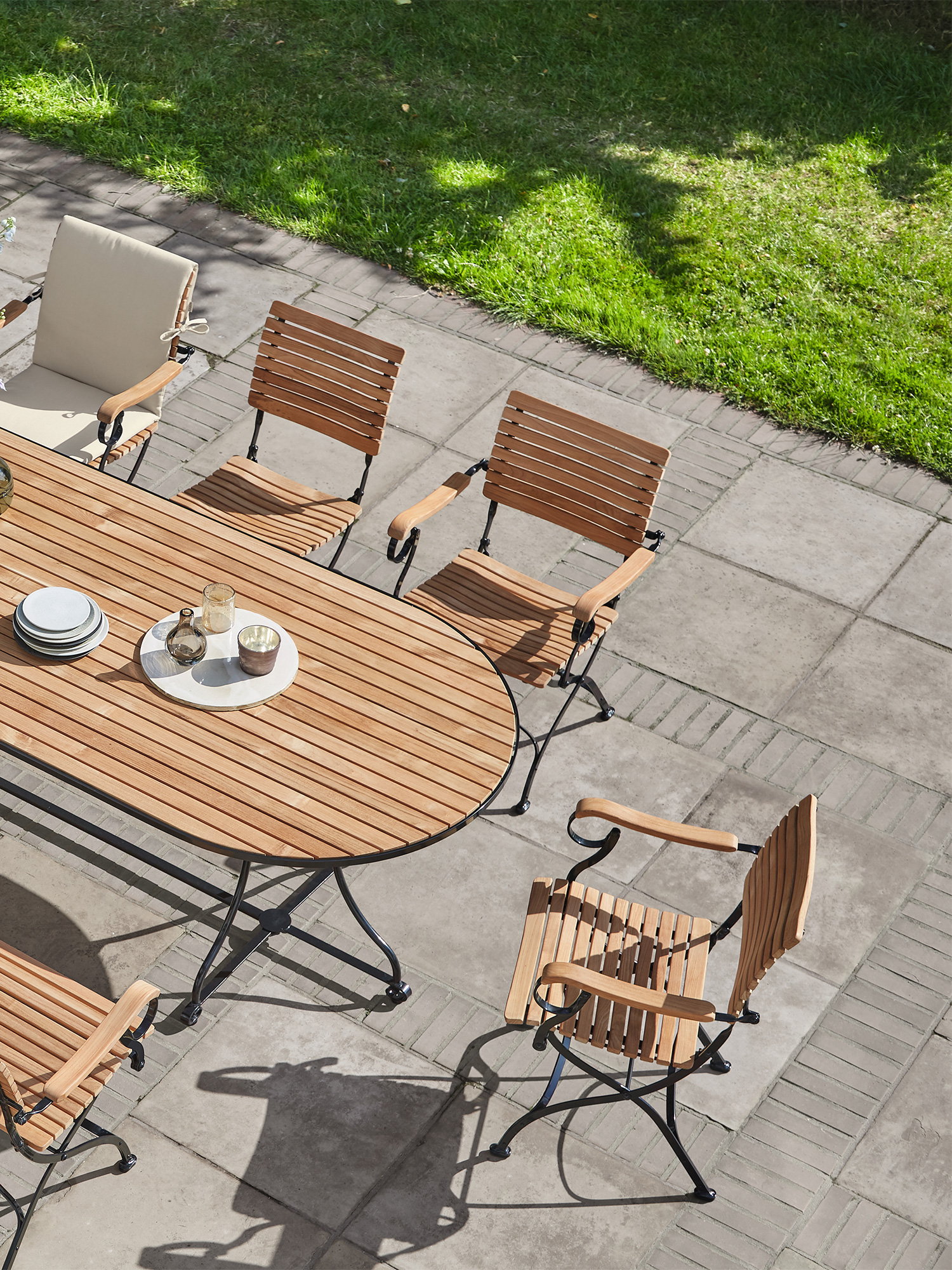 - Tabletop made of weather-resistant plantation teak