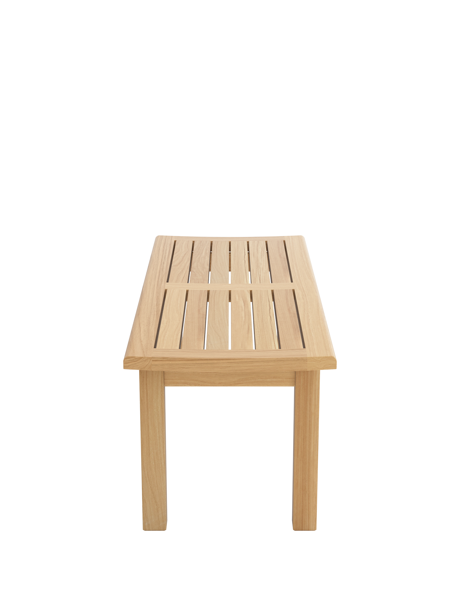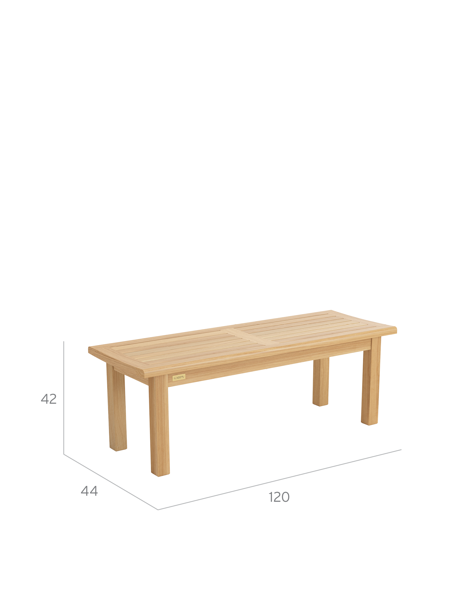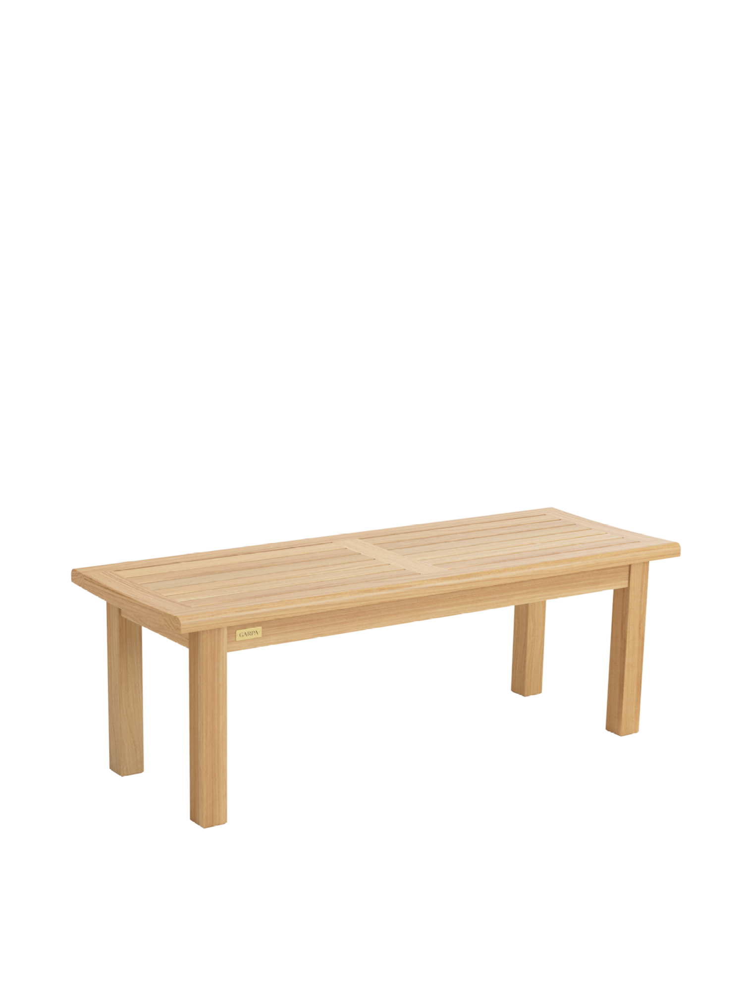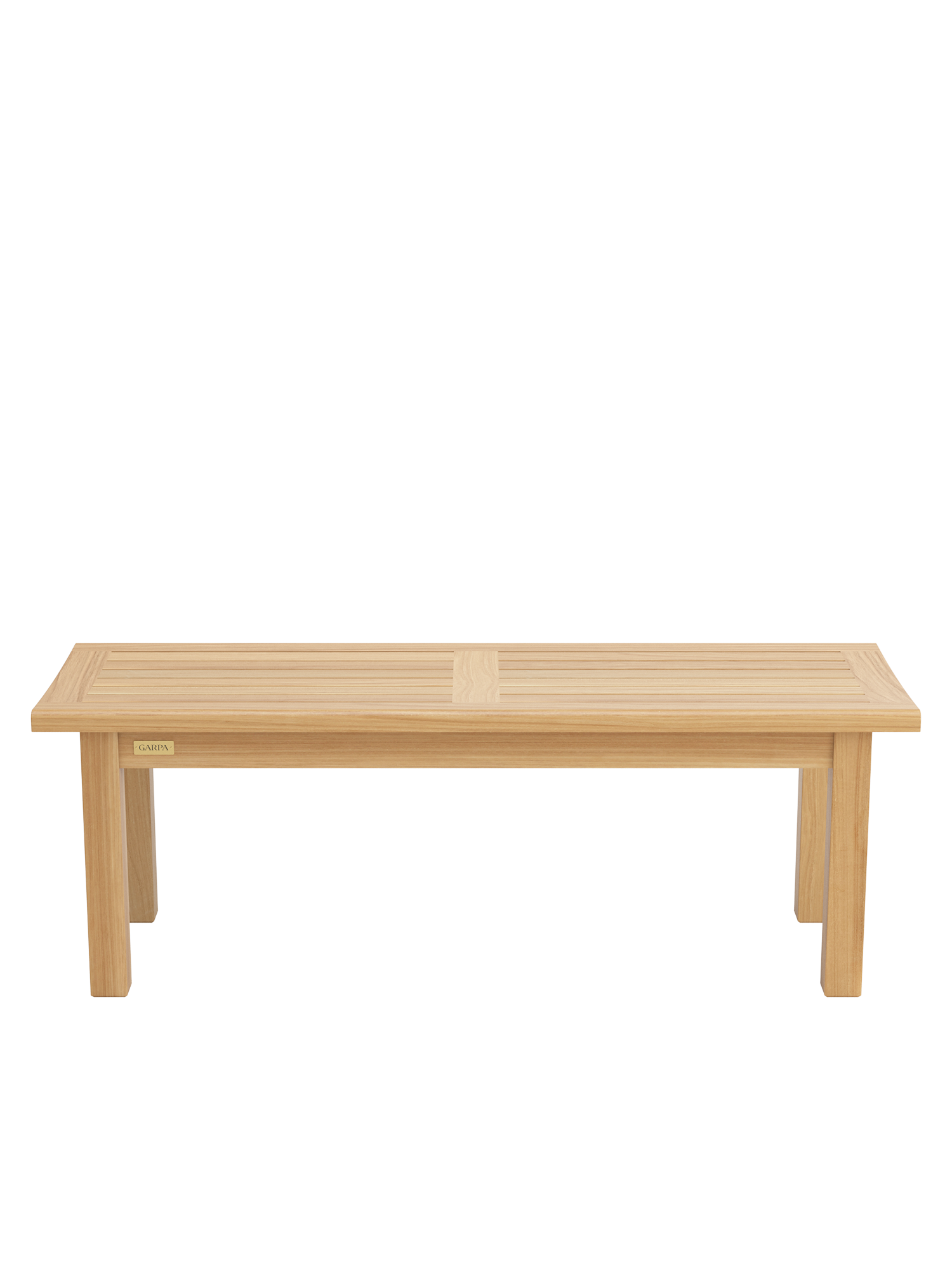 Also without armrests our benches cut a fine figure. Gallery, of solid teak, is equally beautiful as a soloist or as an uncomplicated addition to a table setting.