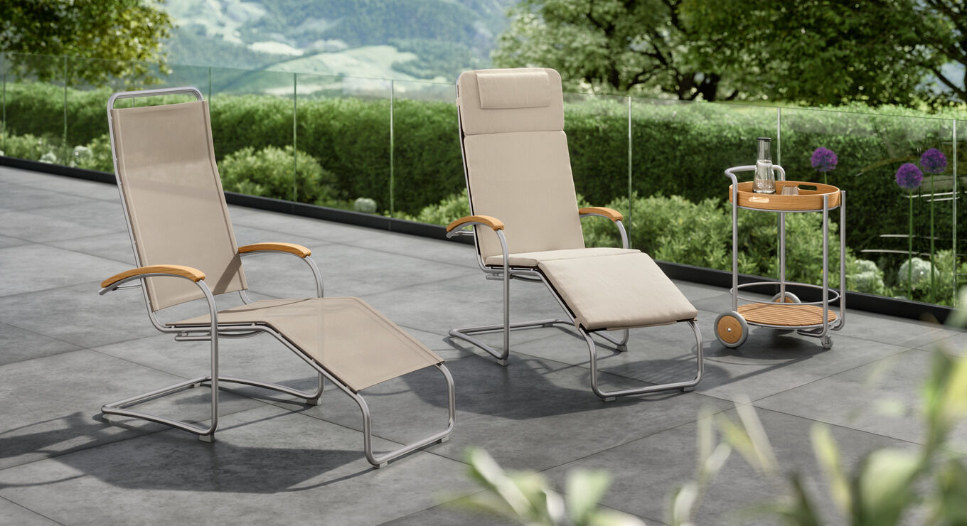 Klappbare Liegen, behagliche Liegesessel und Deck Chairs mit abnehmbaren Fußteilen: Gestalten Sie Ihren individuellen Rückzugsort unter freiem Himmel und treten Sie Expeditionen zum Ruhepol an.