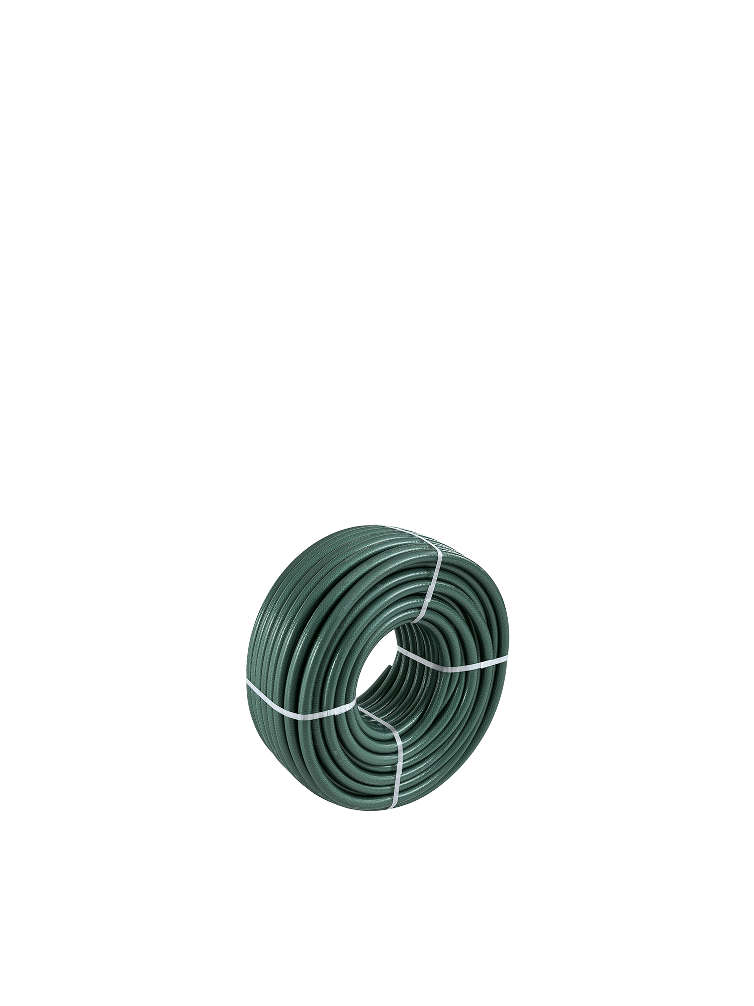 The hose in decent dark green is 50 m long and connects, among other things, the tap and garden shower.