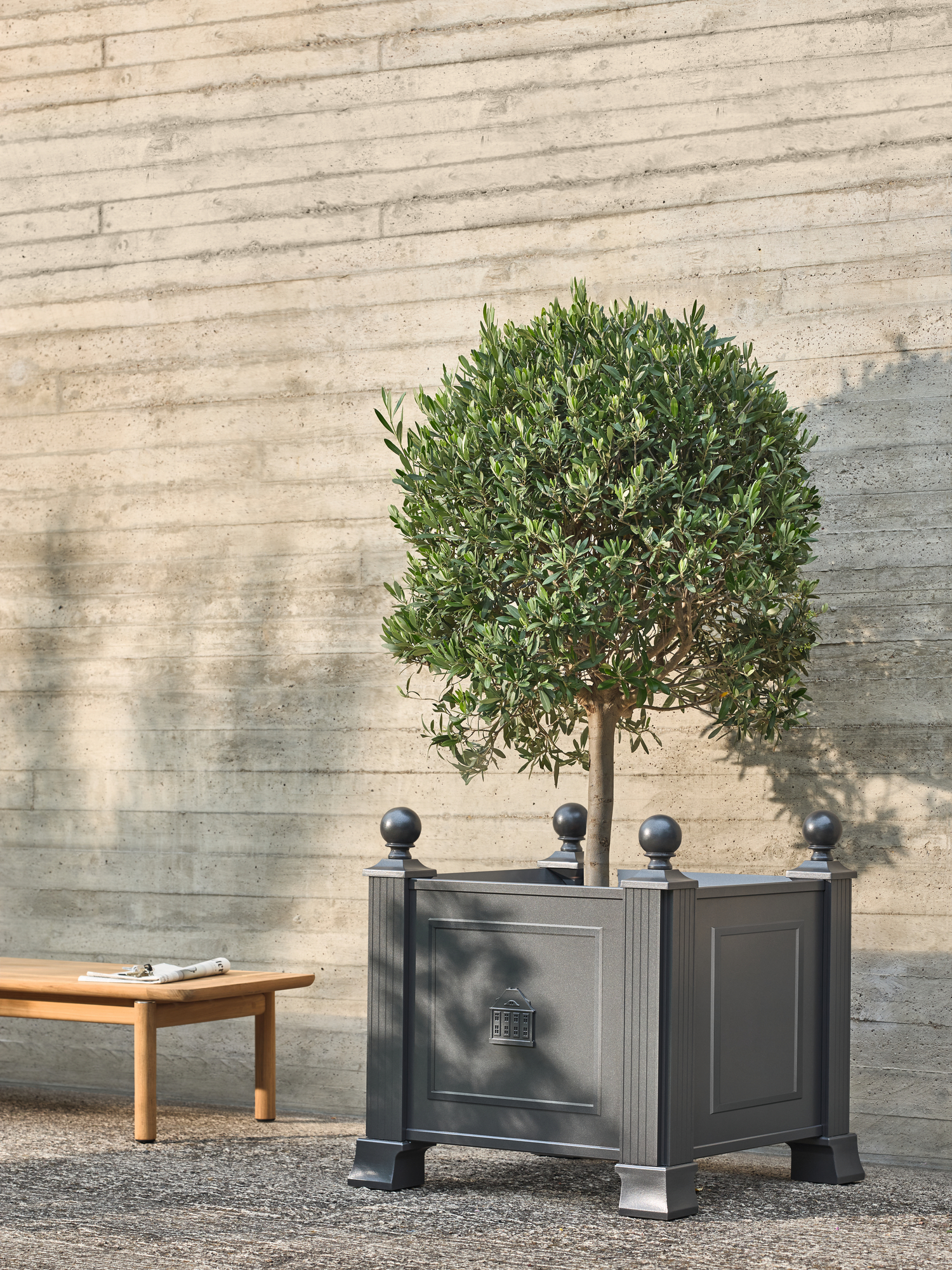Especially high-quality aluminium with powder-coating, sustainably conceived design, and sophisticated system that prevents waterlogging and also offers frost-protection, ensures that the beauty and quality of the Grenoble planter will delight its owners for generations to come.
