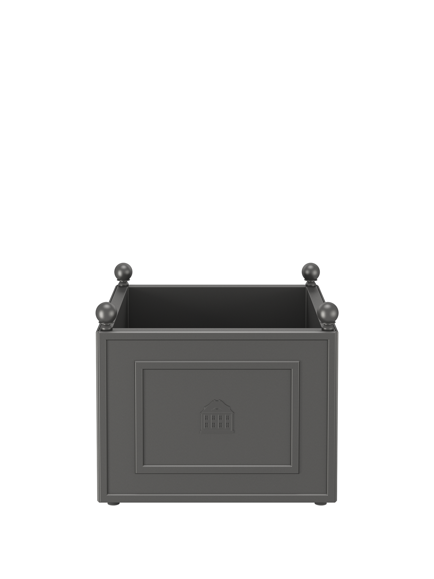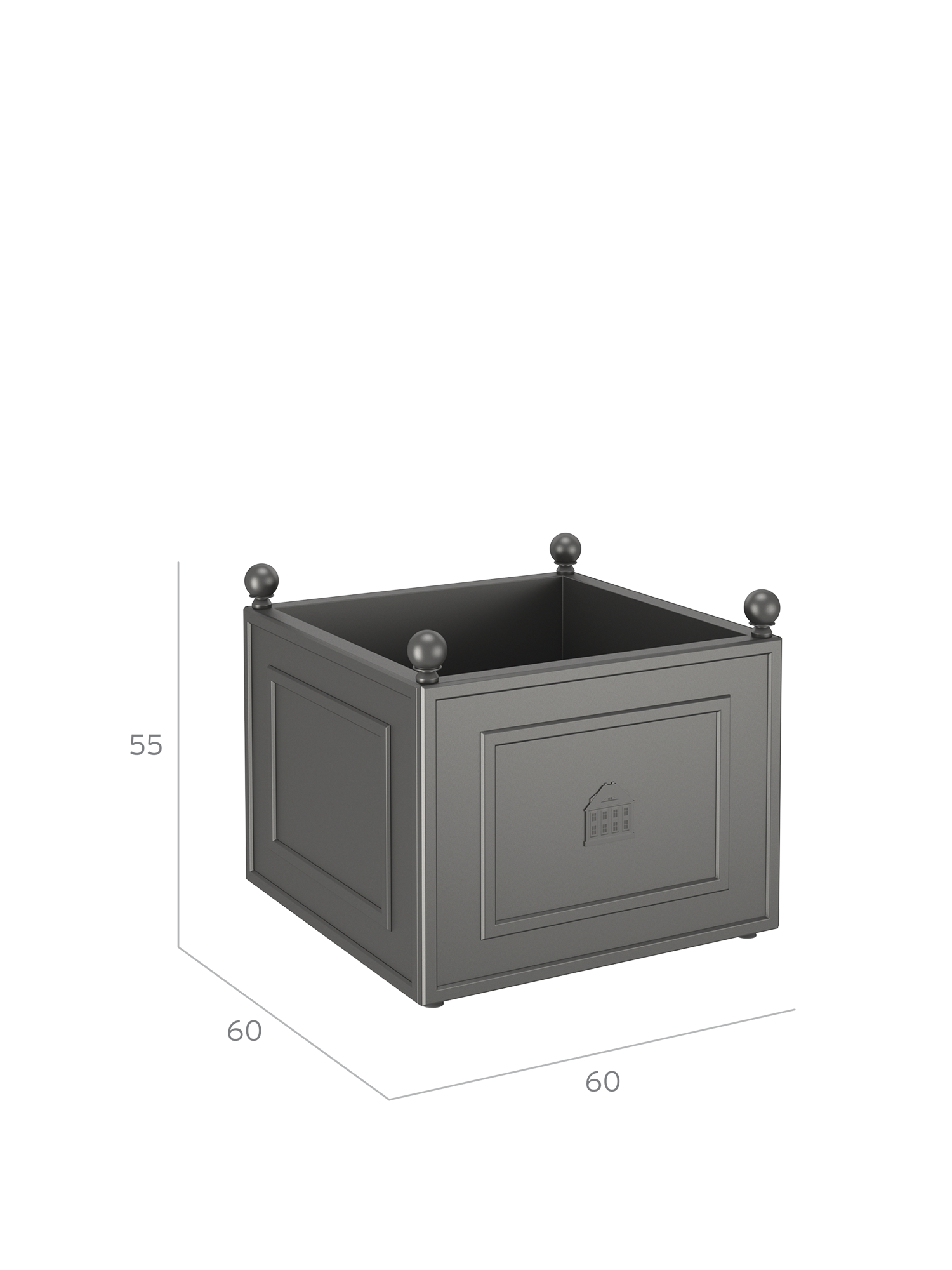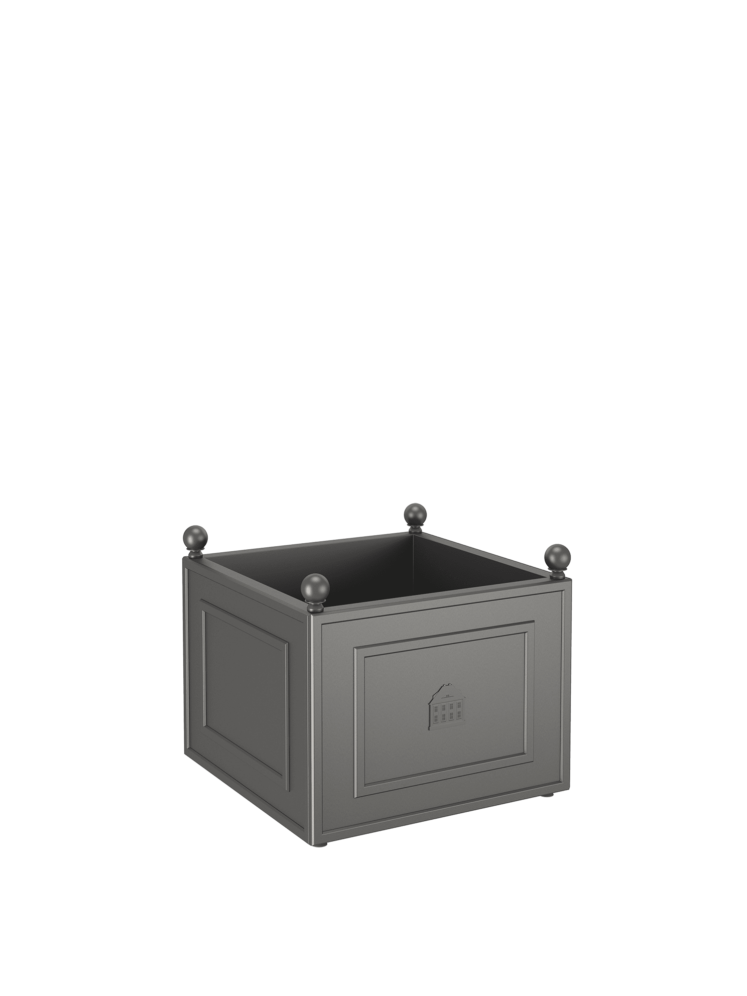 Particularly high-quality aluminium with a powder coating, sophisticated design, and an ingenious system, which prevents waterlogging and provides protection from frost, ensure that the beauty and quality of Grenoble planters will delight their owners well into the future. Decorative spheres on the framed corner elements set a classic accent, while an image of the Garpa headquarters is incorporated as a relief on one of the side panels.