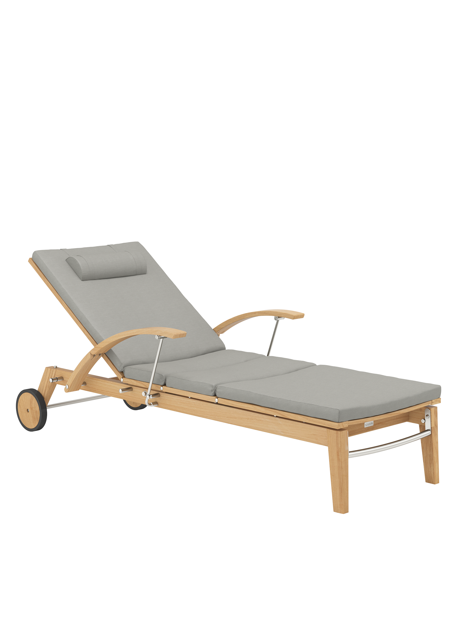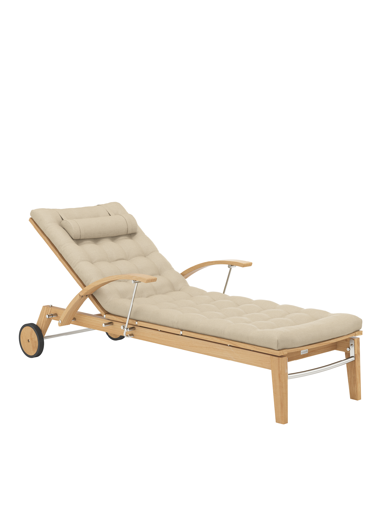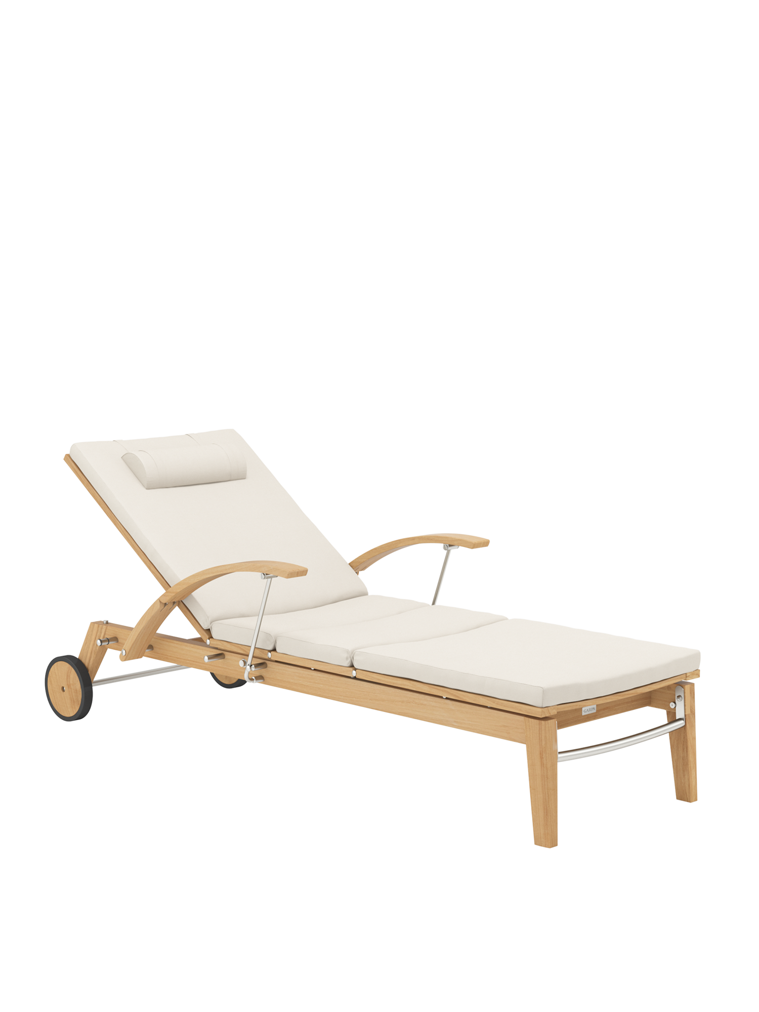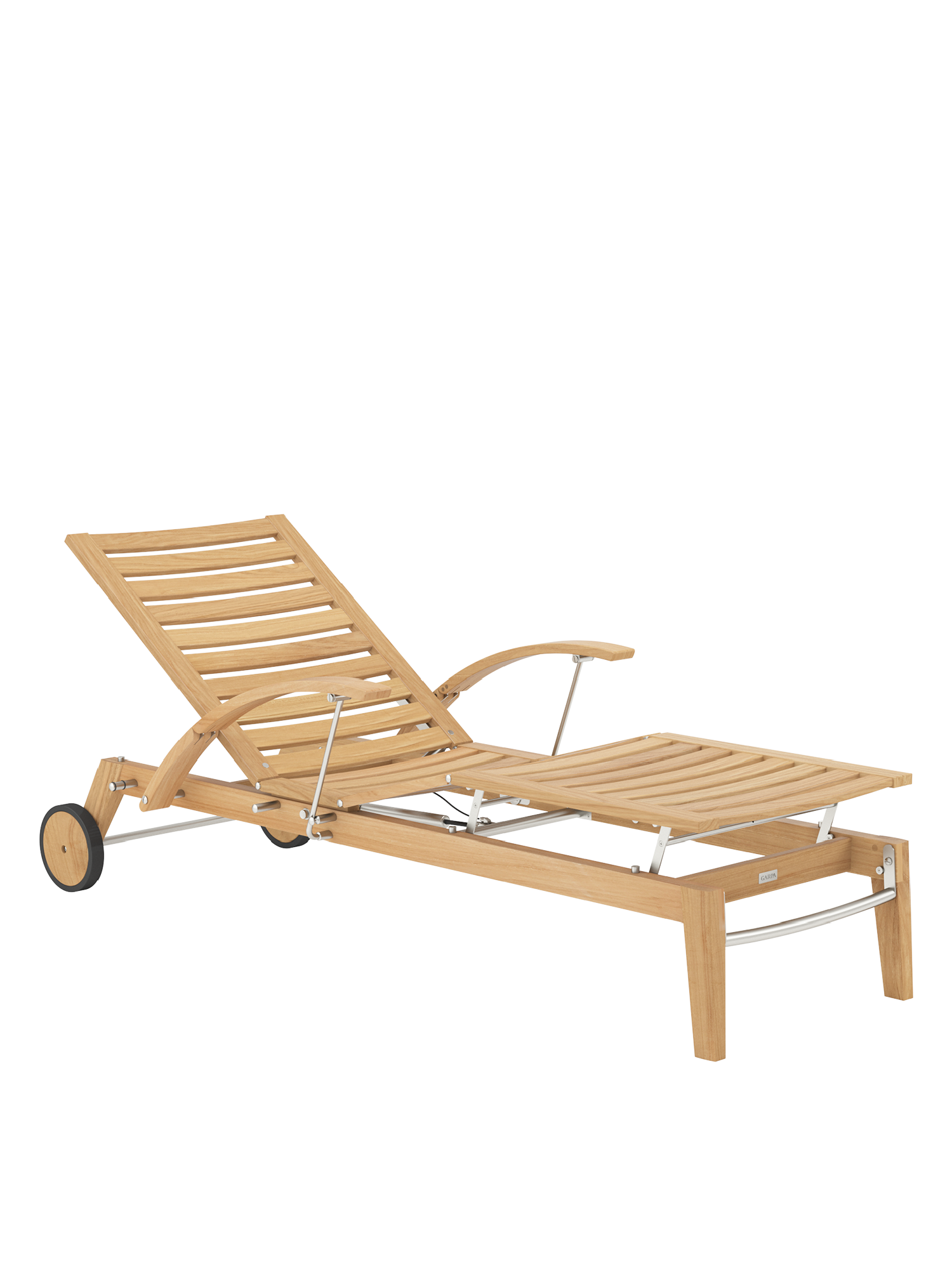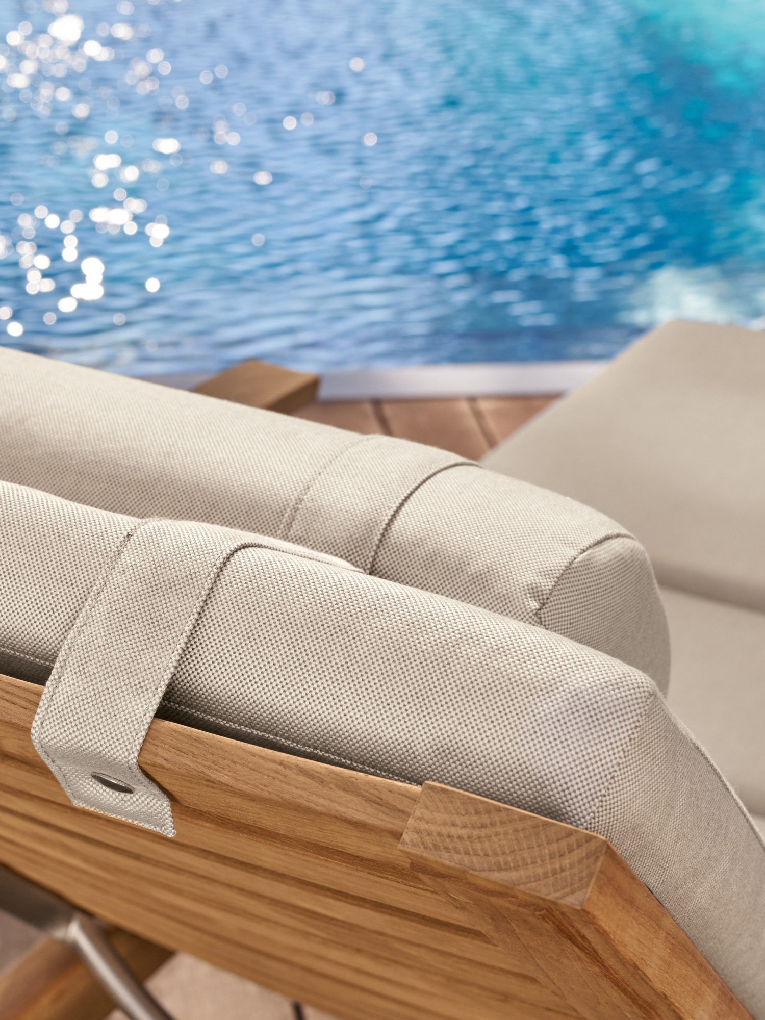 Hamptons combines simple elegance with the highest comfort and sophisticated technology. The backrest of the teak lounger can be adjusted at the touch of a button with the help of a hydraulic piston. Discreetly hidden under the seat, it takes care of the variable positioning. The armrests can be swung back to facilitate access.