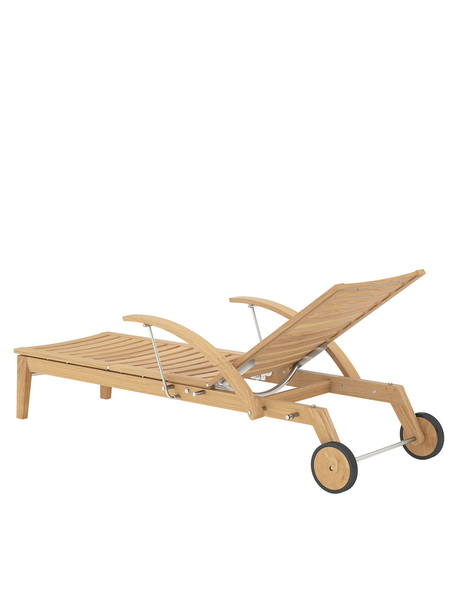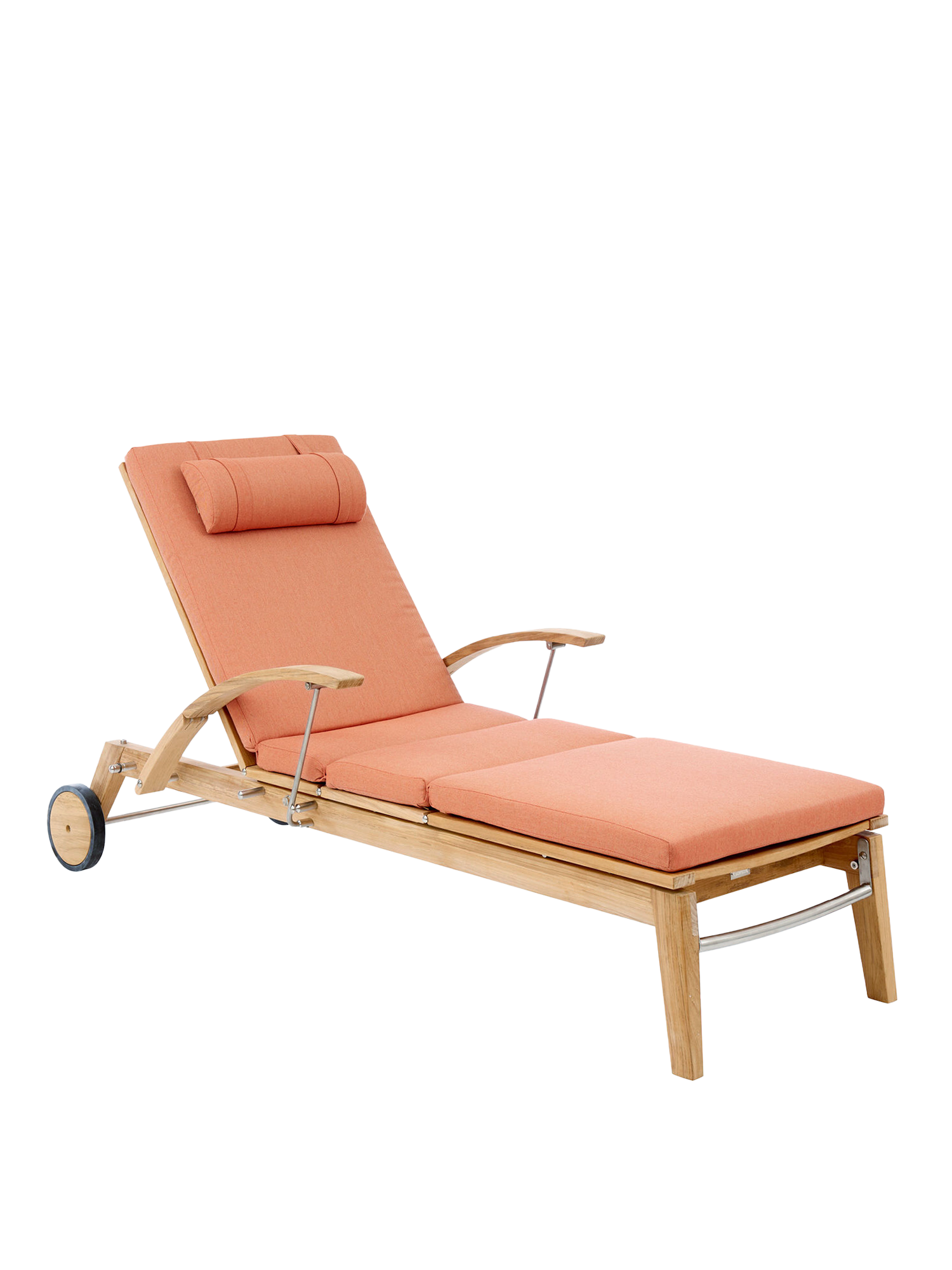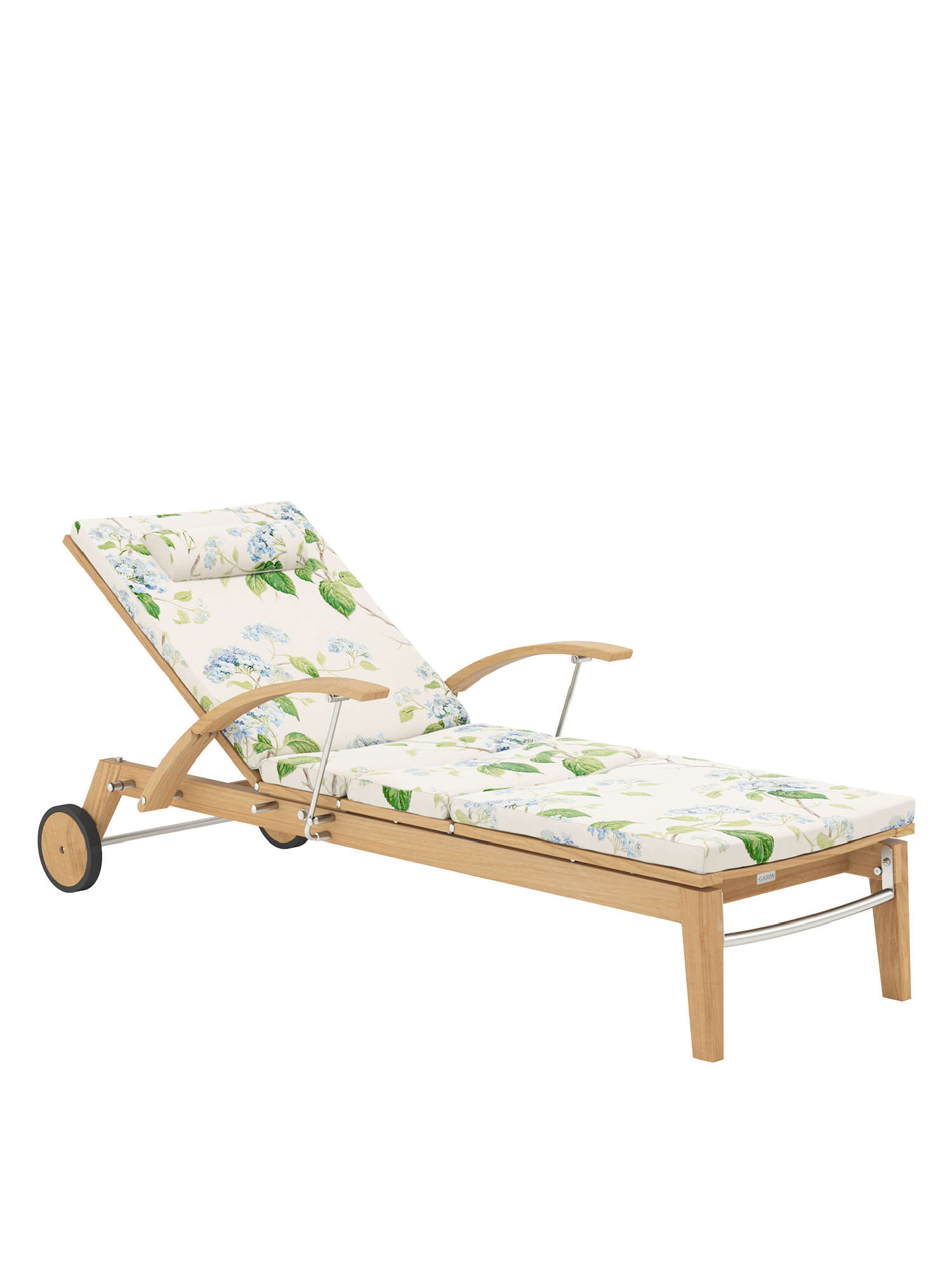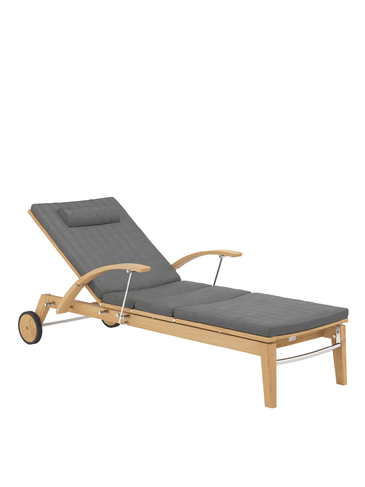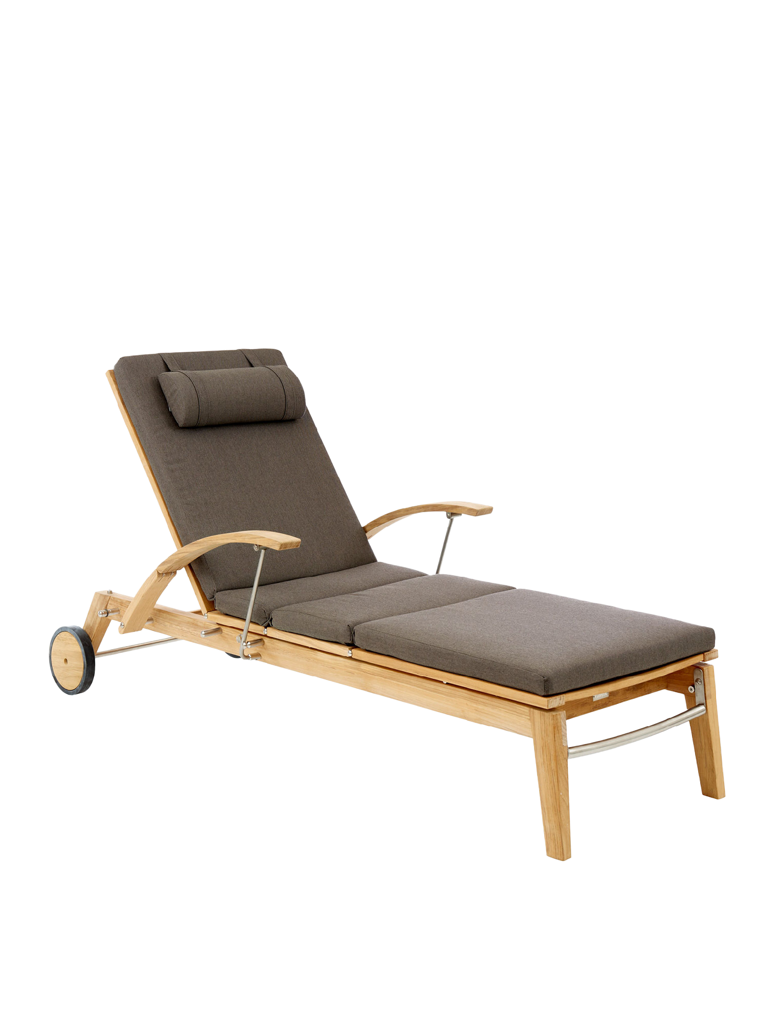 Hamptons combines simple elegance with the highest comfort and sophisticated technology. The backrest of the teak lounger can be adjusted at the touch of a button with the help of a hydraulic piston. Discreetly hidden under the seat, it takes care of the variable positioning. The armrests can be swung back to facilitate access.
