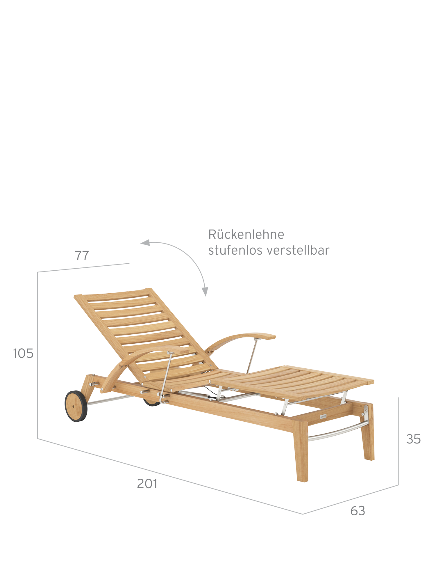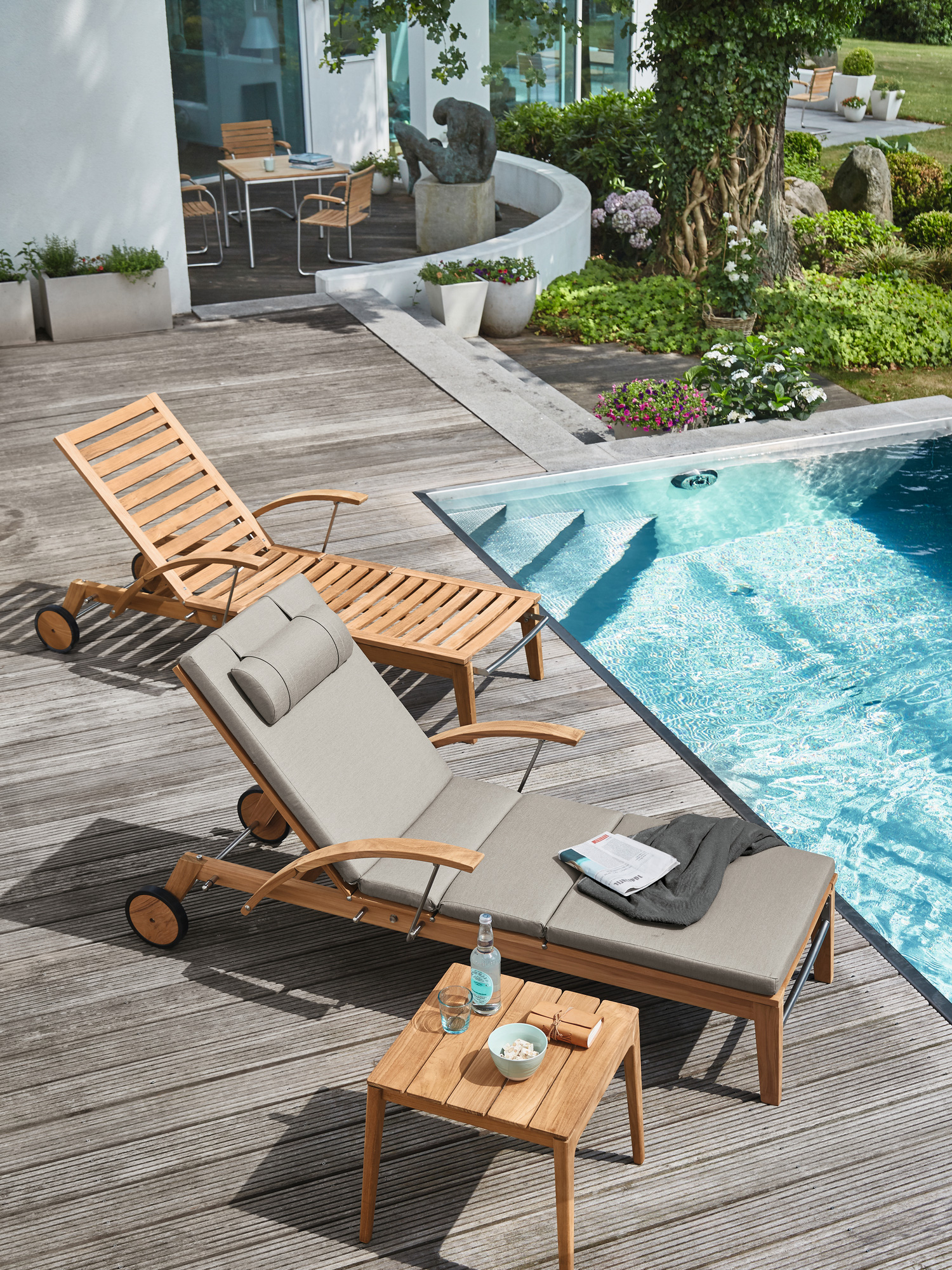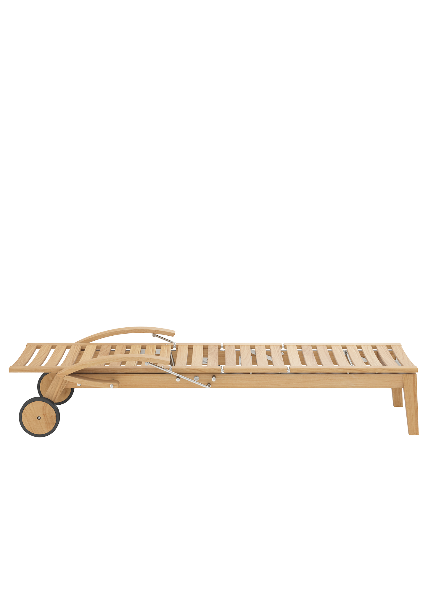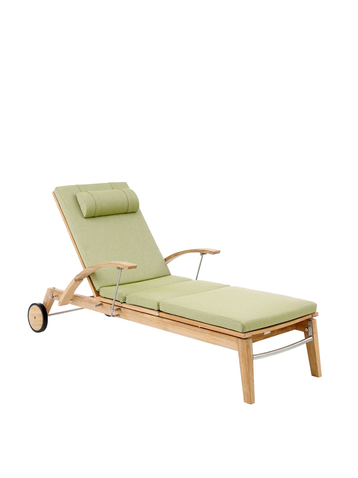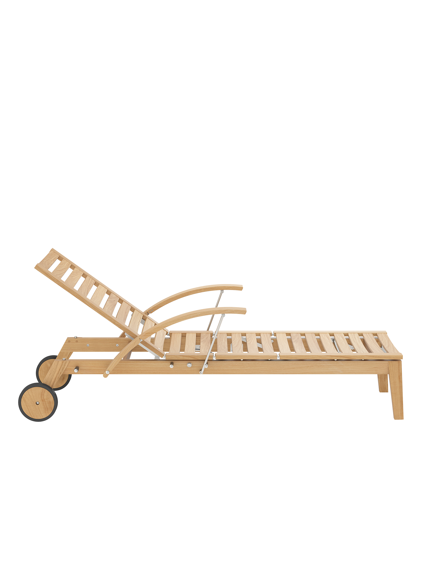 Hamptons combines simple elegance with the highest comfort and sophisticated technology. The backrest of the teak lounger can be adjusted at the touch of a button with the help of a hydraulic piston. Discreetly hidden under the seat, it takes care of the variable positioning. The armrests can be swung back to facilitate access.