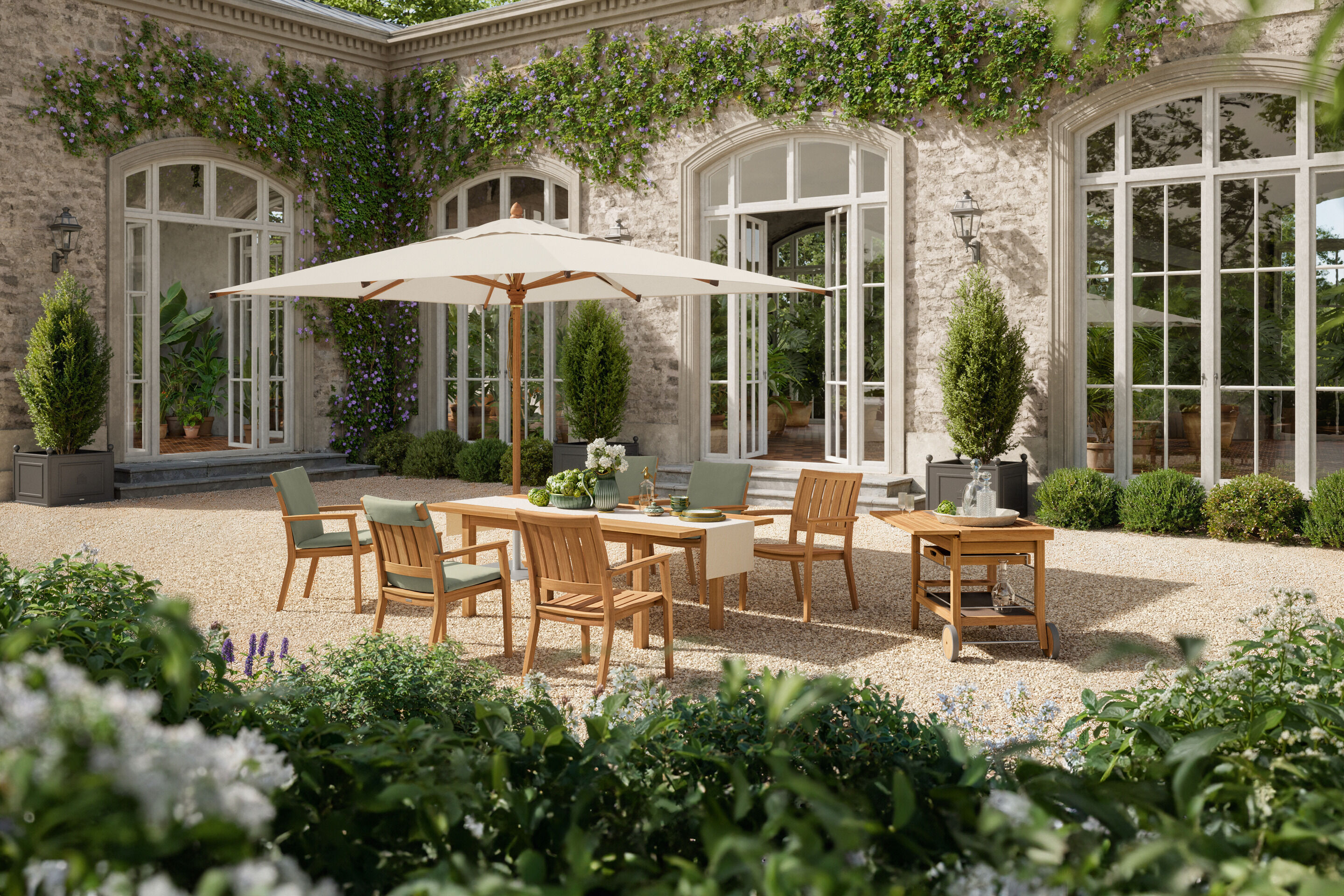 High-quality furniture made of weatherproof teak sets timelessly beautiful accents in the garden or on the terrace. Discover chairs, benches, tables, loungers, and lounge furniture, and design your individual retreat.