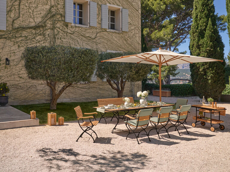 You are expecting lots of guests and at the same time would also like to welcome surprise visitors to the table? The Fontenay extendable tables can be very conveniently extended – with an insert that fits perfectly into the centre of the table top. Once you have created your individual seating group, with benches, armchairs and chairs, the decorating can begin.