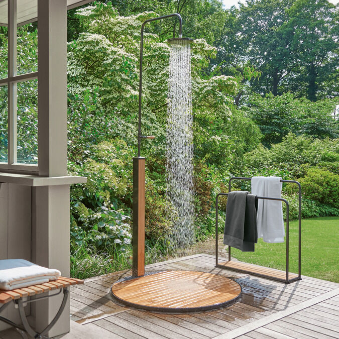 To ensure protection from frost damage, all garden shower connections and hoses must be drained in winter. To do this, pull the supply hose off the shower, open the handle and allow the shower to drain completely.
