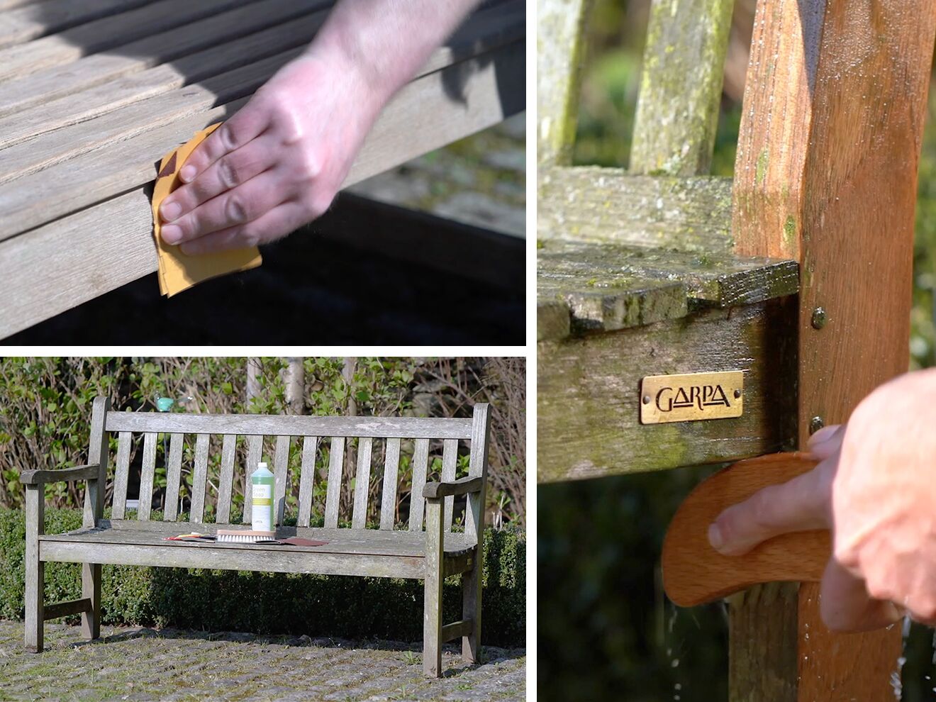 All Garpa garden furniture can be cleaned with green soap and a sponge, e.g. from our care set. Rinse off the resulting soap suds with plenty of warm water and a damp cloth or sponge. In our video, we clearly explain the individual steps.