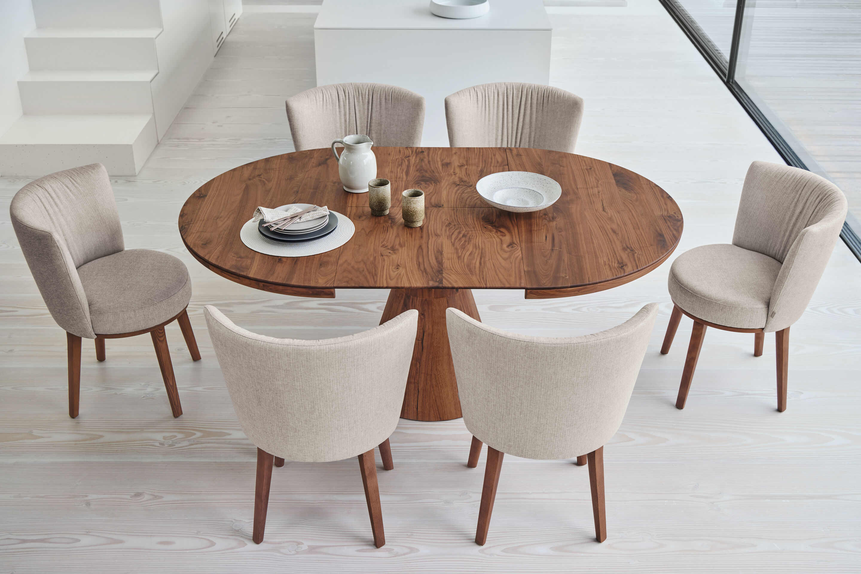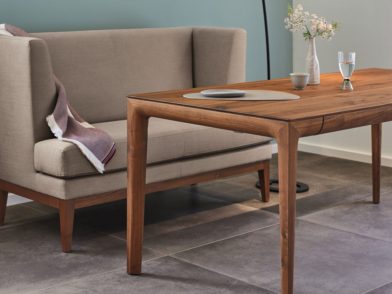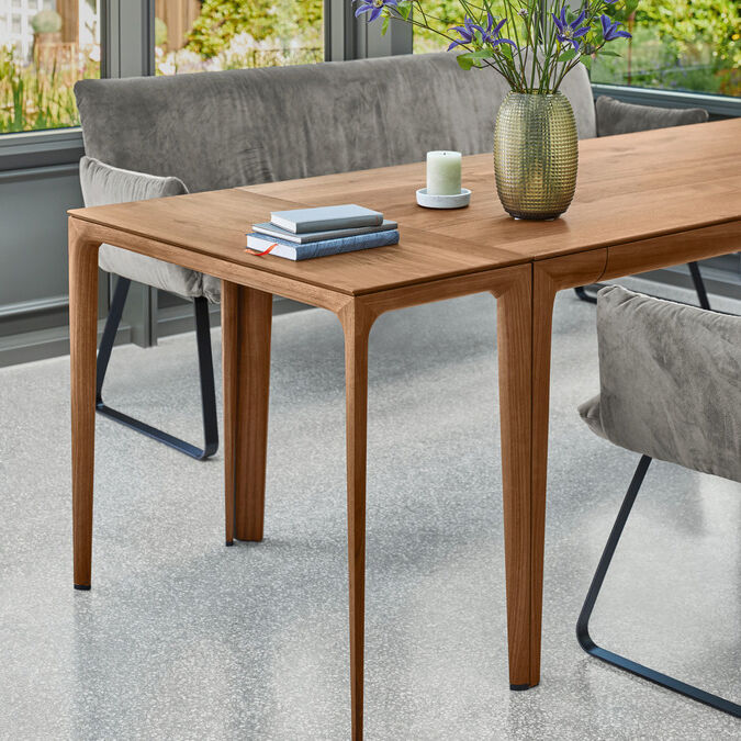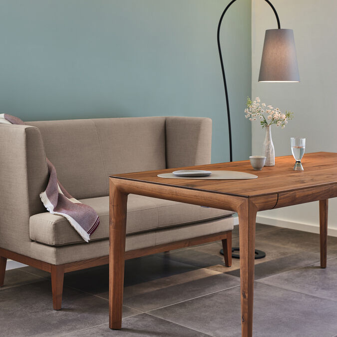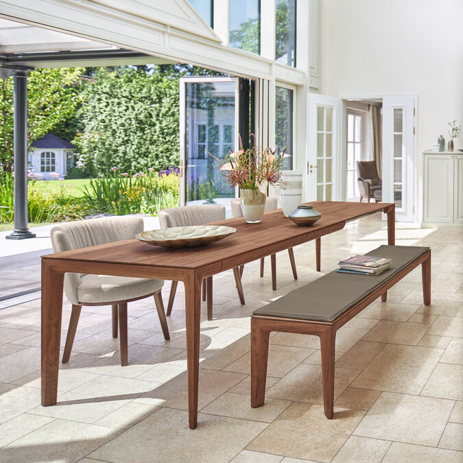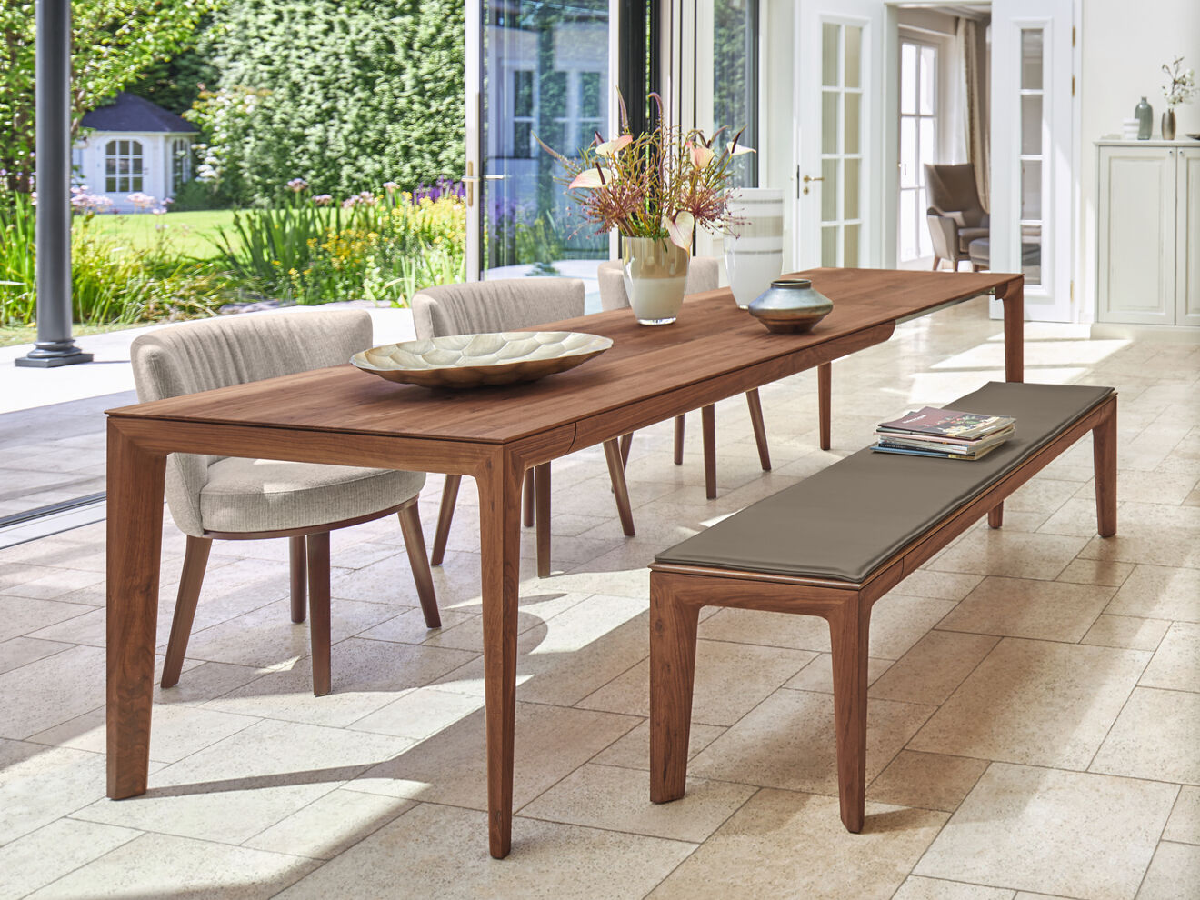 Dinner is served! This invitation is especially delightful when the ambience also promises supreme enjoyment. High-quality dining tables made of solid American walnut invite you to indulge in extended culinary pleasures.