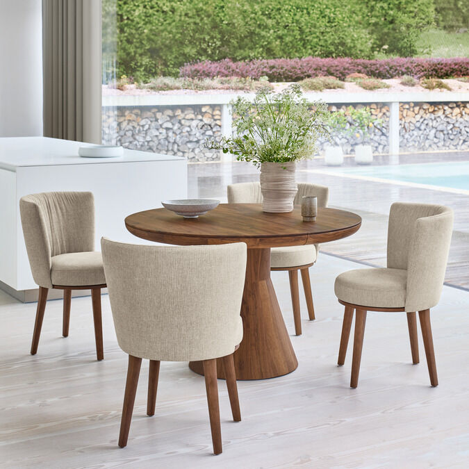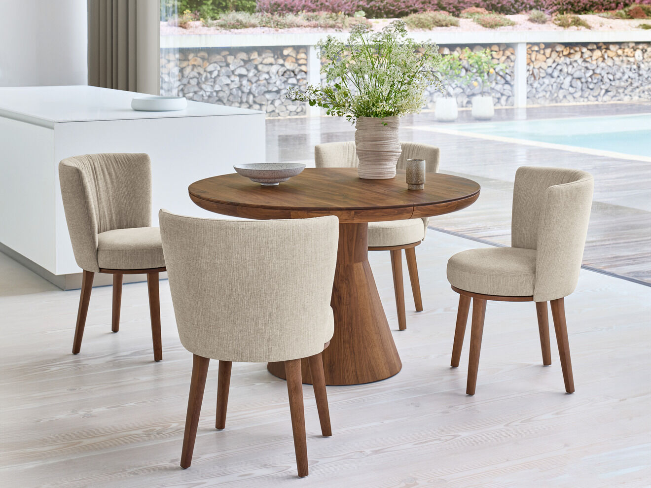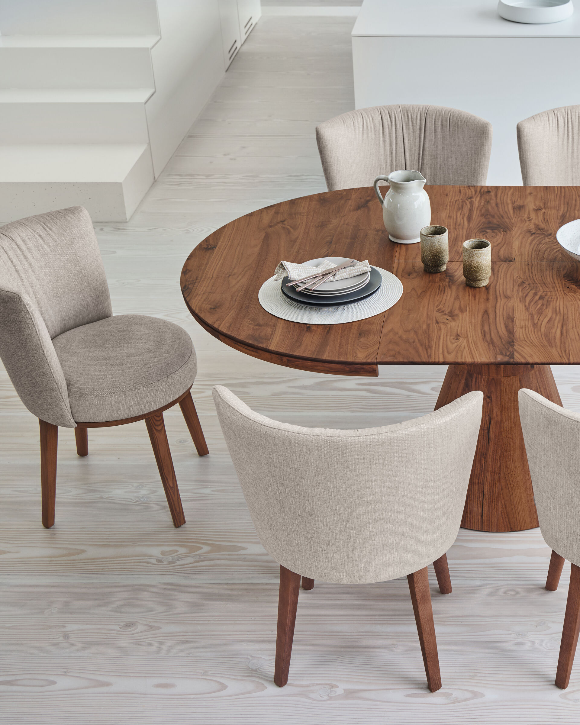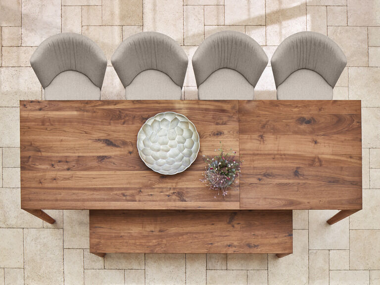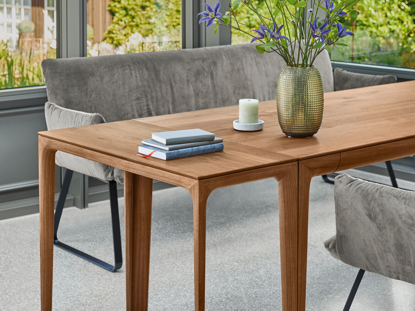 Dinner is served! This invitation is especially delightful when the ambience also promises supreme enjoyment. High-quality dining tables made of solid American walnut invite you to indulge in extended culinary pleasures.