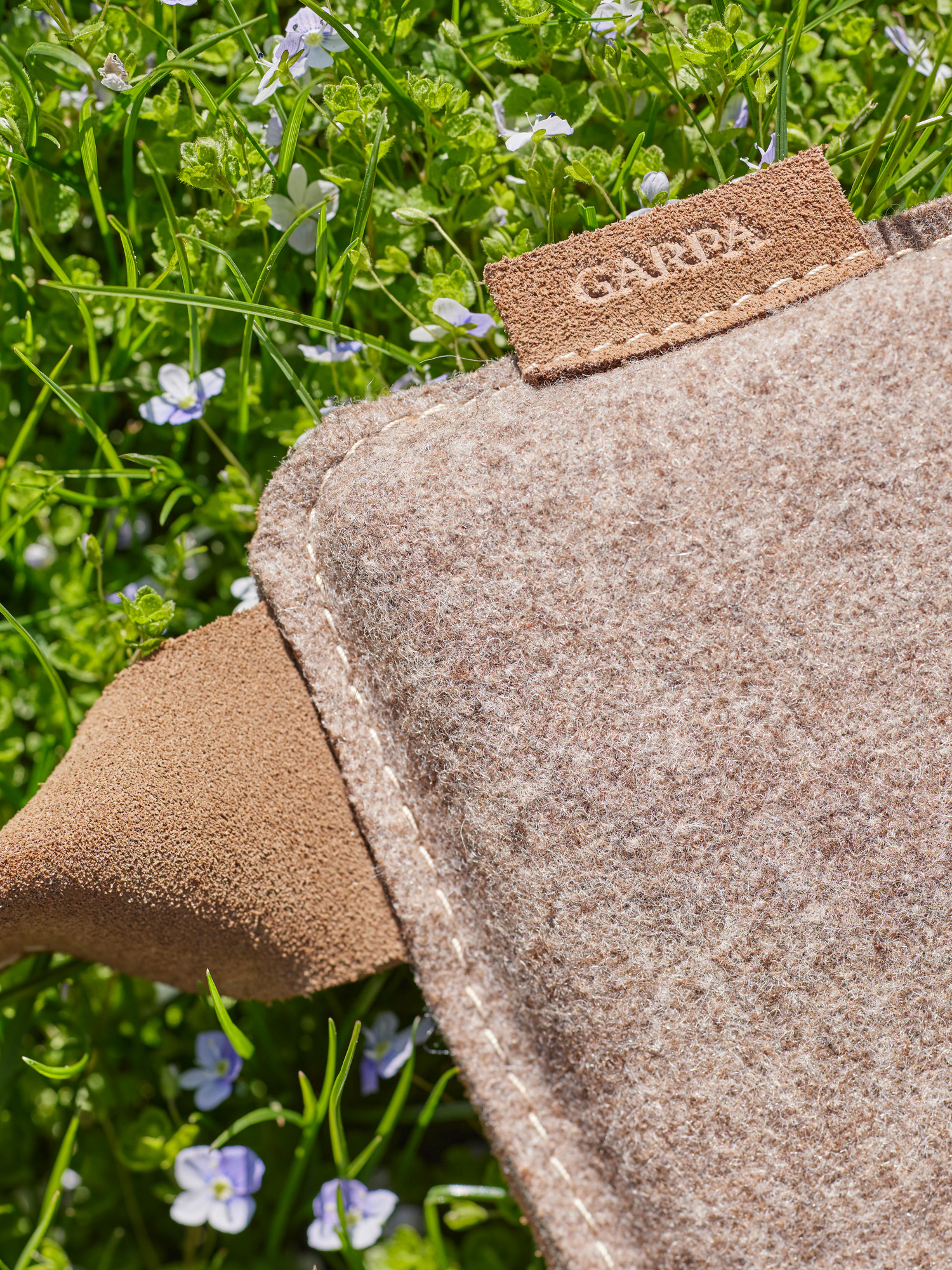 Two aspects were central to the choice of materials: sustainability and functionality. As leather is a natural product, each cushion is unique, while the latex-impregnated coconut fibre provides the protective knee cushioning. Due to the water-repellent felt, the cushion can be cleaned without misgivings. It can also just be brushed off when the dirt has dried.