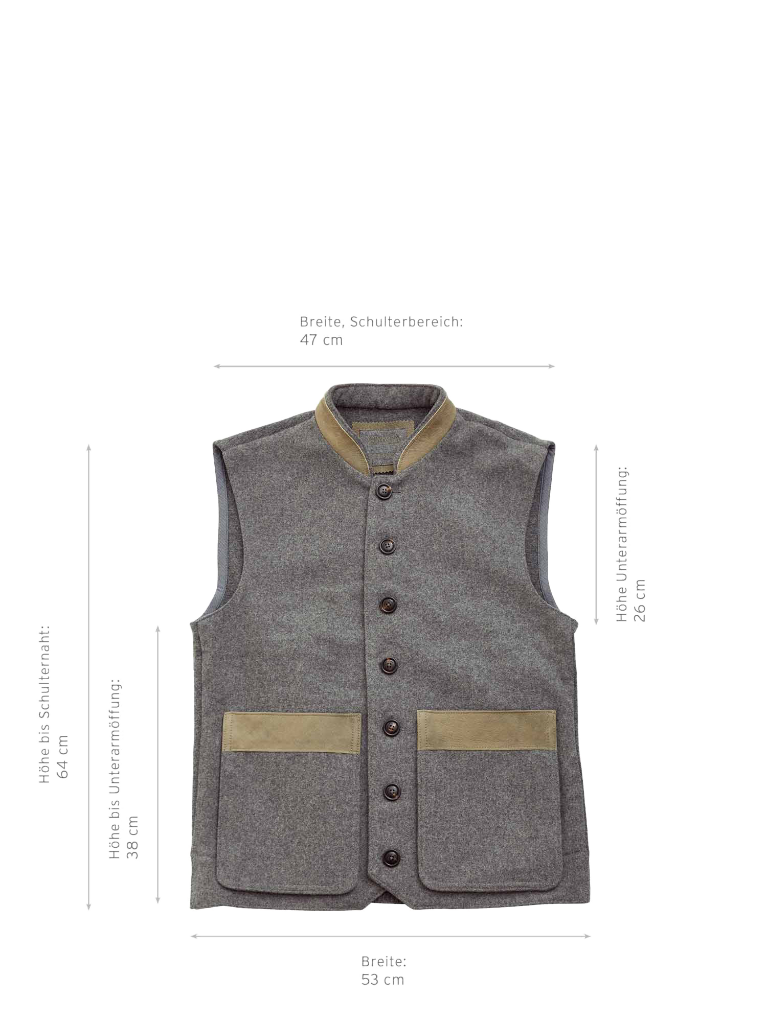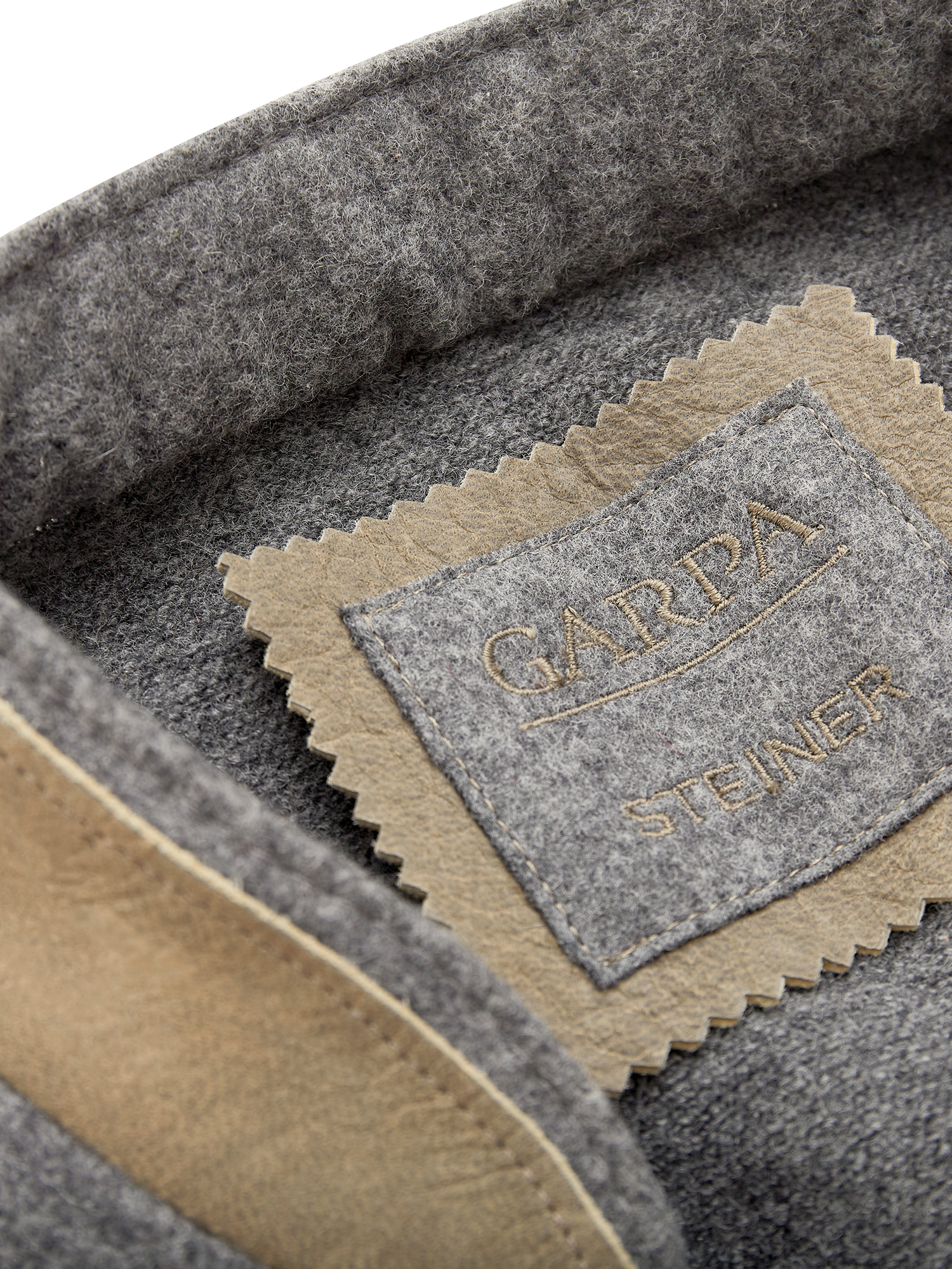Since 1888, the Steiner family business is a hallmark of superb quality and sustainability. It processes only natural products such as wool and leather – in accordance with old traditions of craftsmanship, and in Europe. The waistcoat's horn buttons and leather applications are testimony to Garpa's characteristic attention to detail.