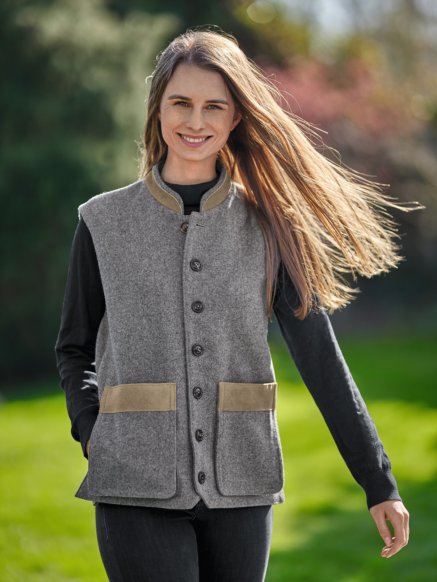 The high-quality material convinces not only in its sustainability but also with numerous practical advantages. Loden is both climate regulating and breathable, warm and antibacterial. Gardening is also made easier by the waistcoat's pairs of outside pockets. The pockets open upwards to provide space, and to the side to warm hands on colder days – in the garden, walking on the beach or during other outdoor activities.