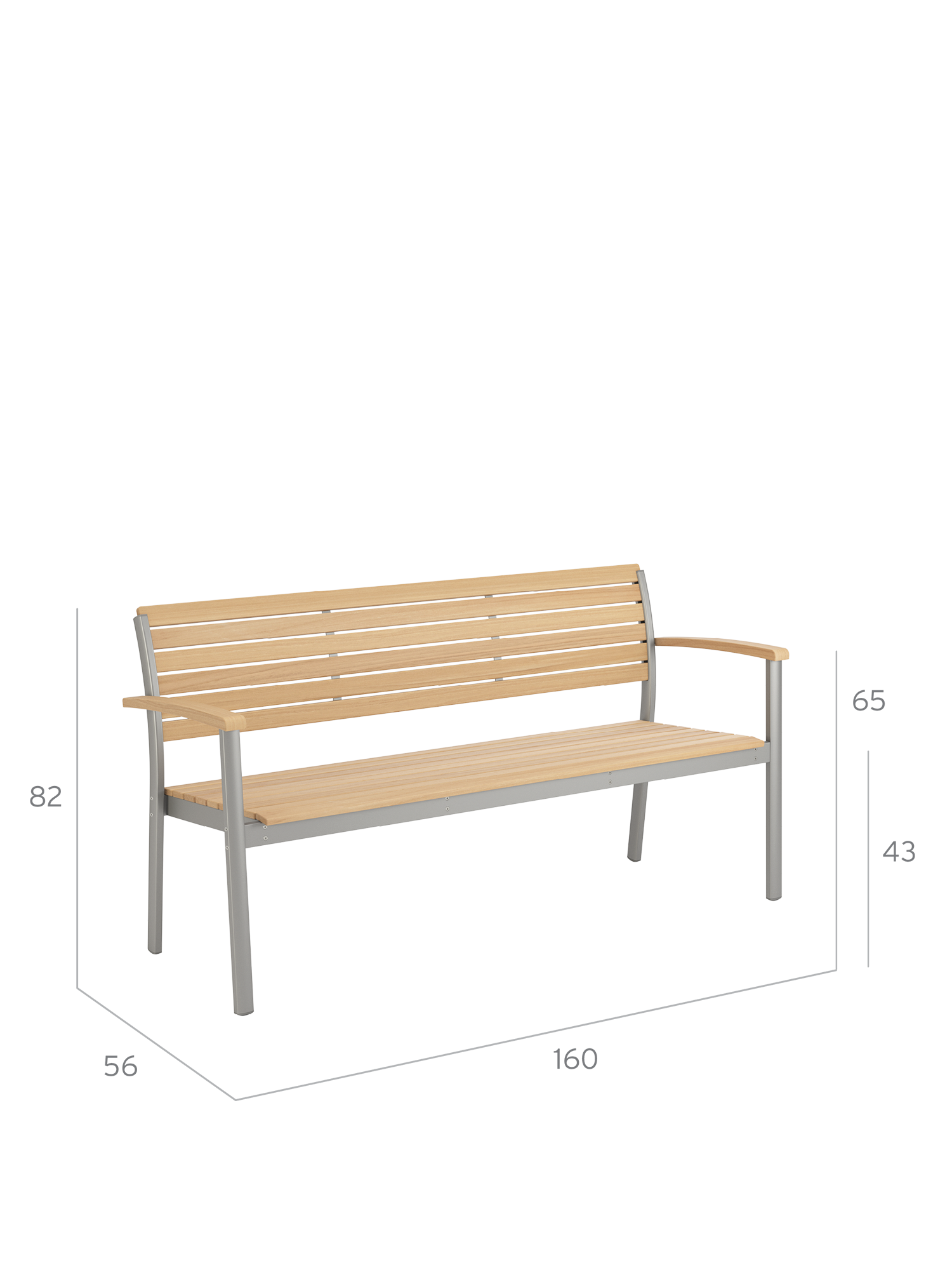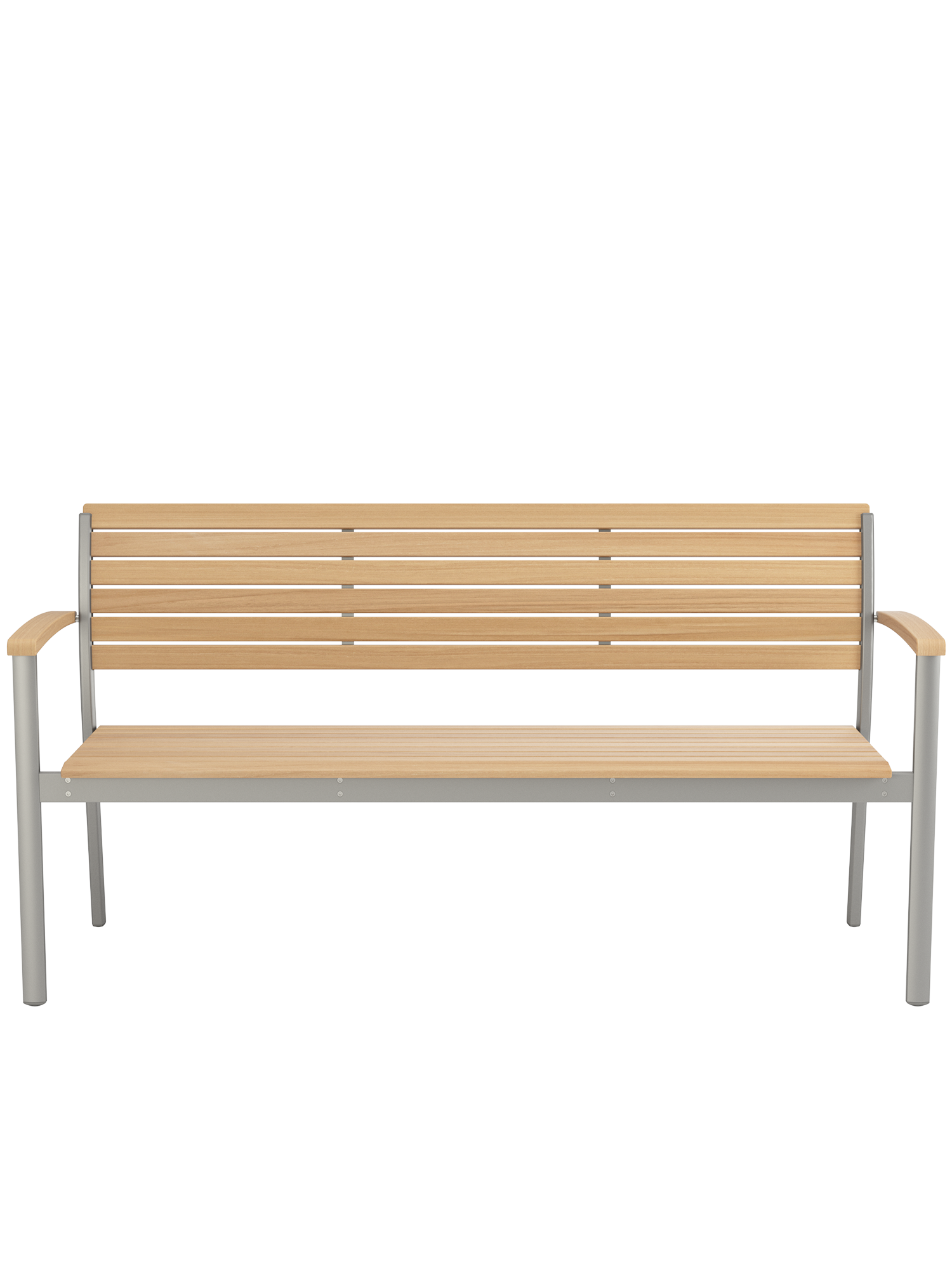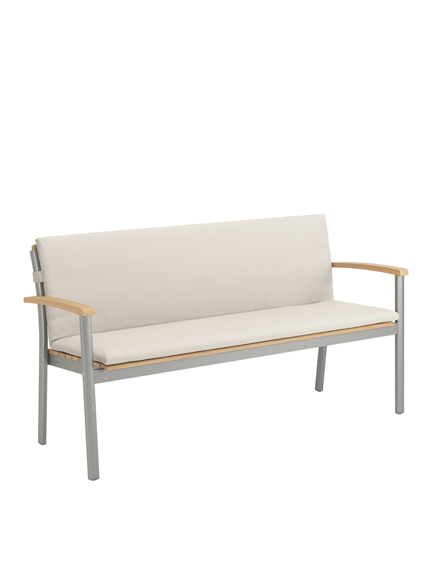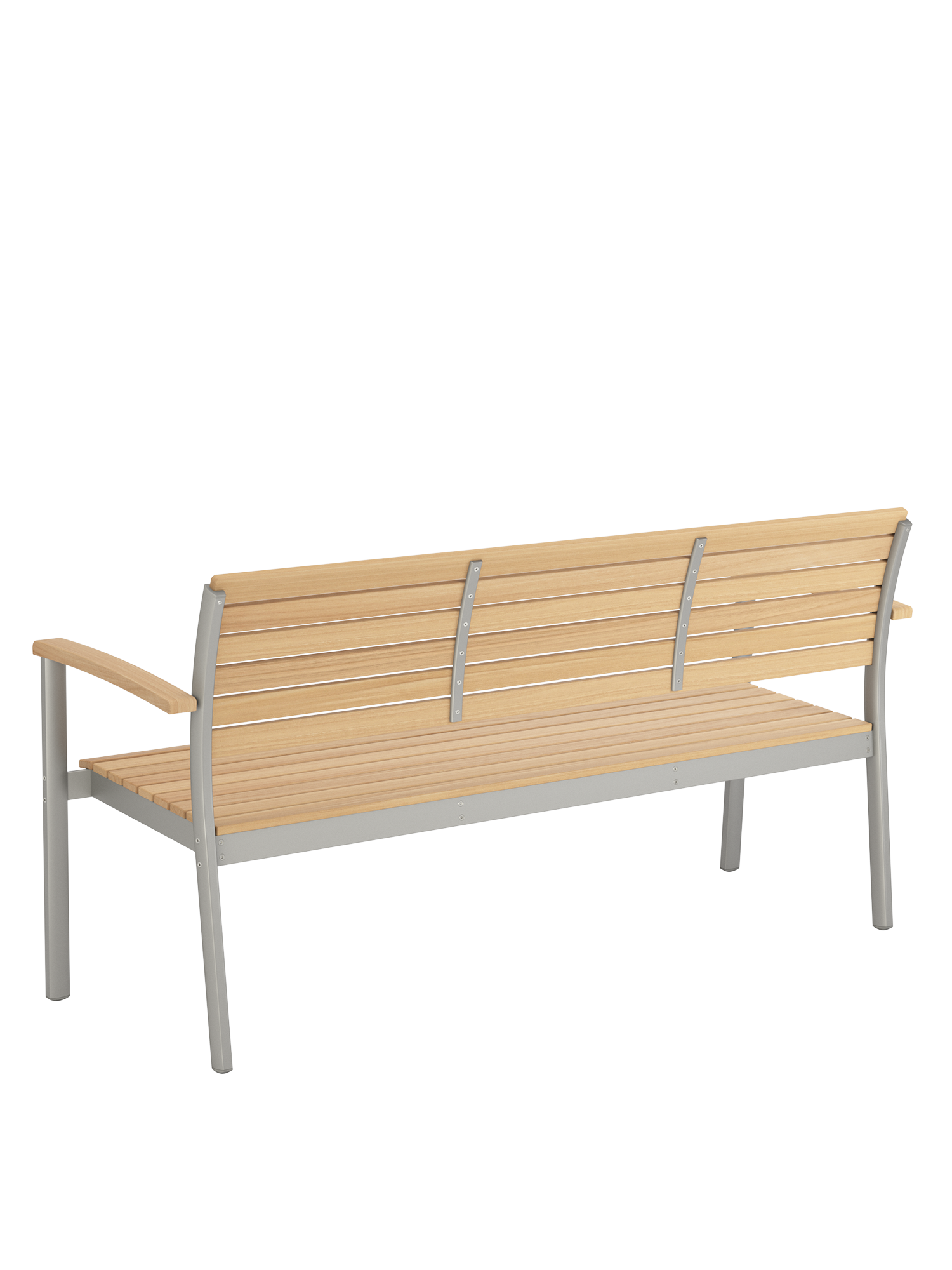 Durable materials show off their aesthetic qualities to perfection here: the anodised profiles of the softly gleaming aluminium frame, and the ergonomically shaped teak slats of the seat and backrest, interact in pleasing harmony. The design classic with a modern touch offers space for up to three people.