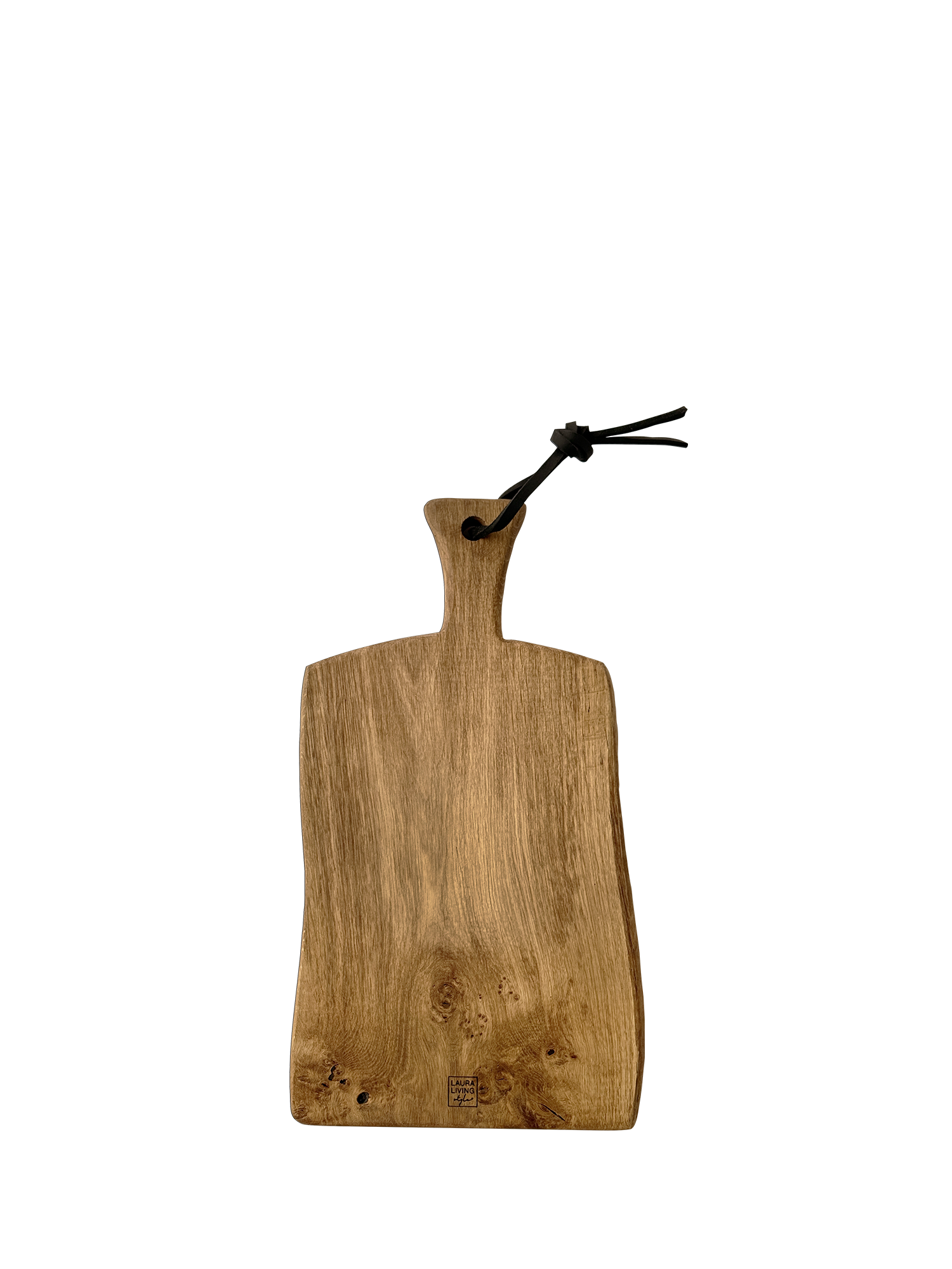 A piece of nature with a unique grain pattern – this versatile board is not just for cutting, but is an elegant and solid base for diverse tasks in the kitchen, as well as being a practical serving platter for cheese, charcuterie or antipasti. The robust oakwood surface is also in keeping with sharp knife blades. Traditional craftsmanship endows each board with an individual shape. A leather strap serves as a handle or practical hanging loop.
