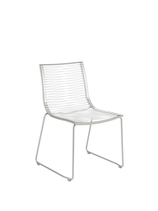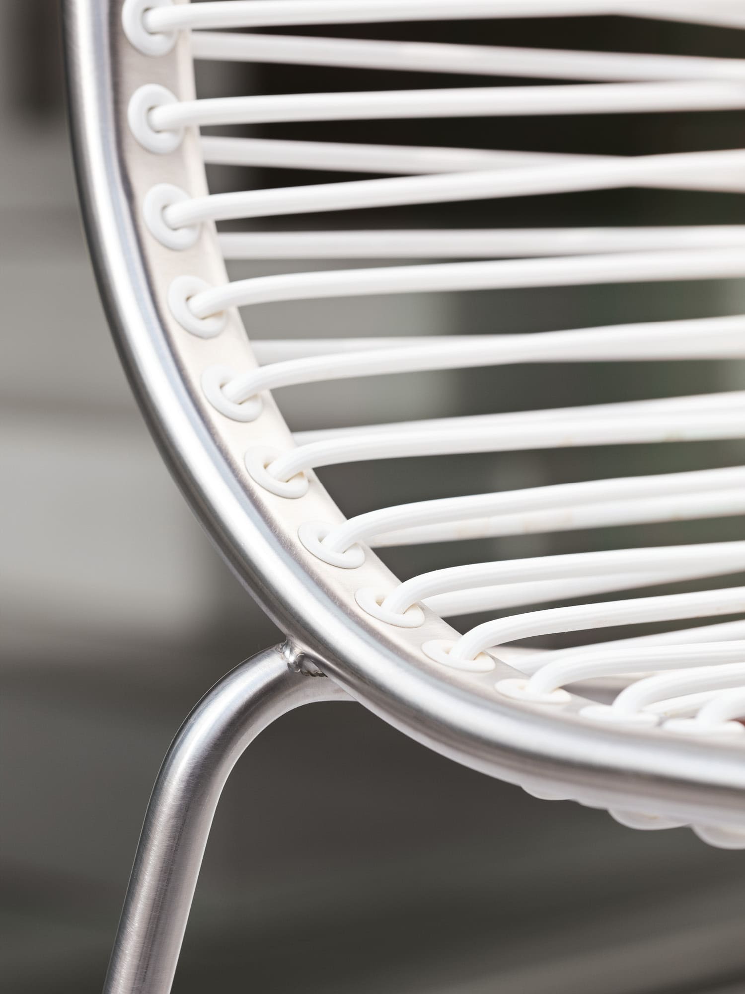 A distinguishing feature of the modern seating furniture is the lacing threaded through eyes in the frame. The synthetic fibre is UV- and frost-resistant, and retains its tautness even when constantly in use.
