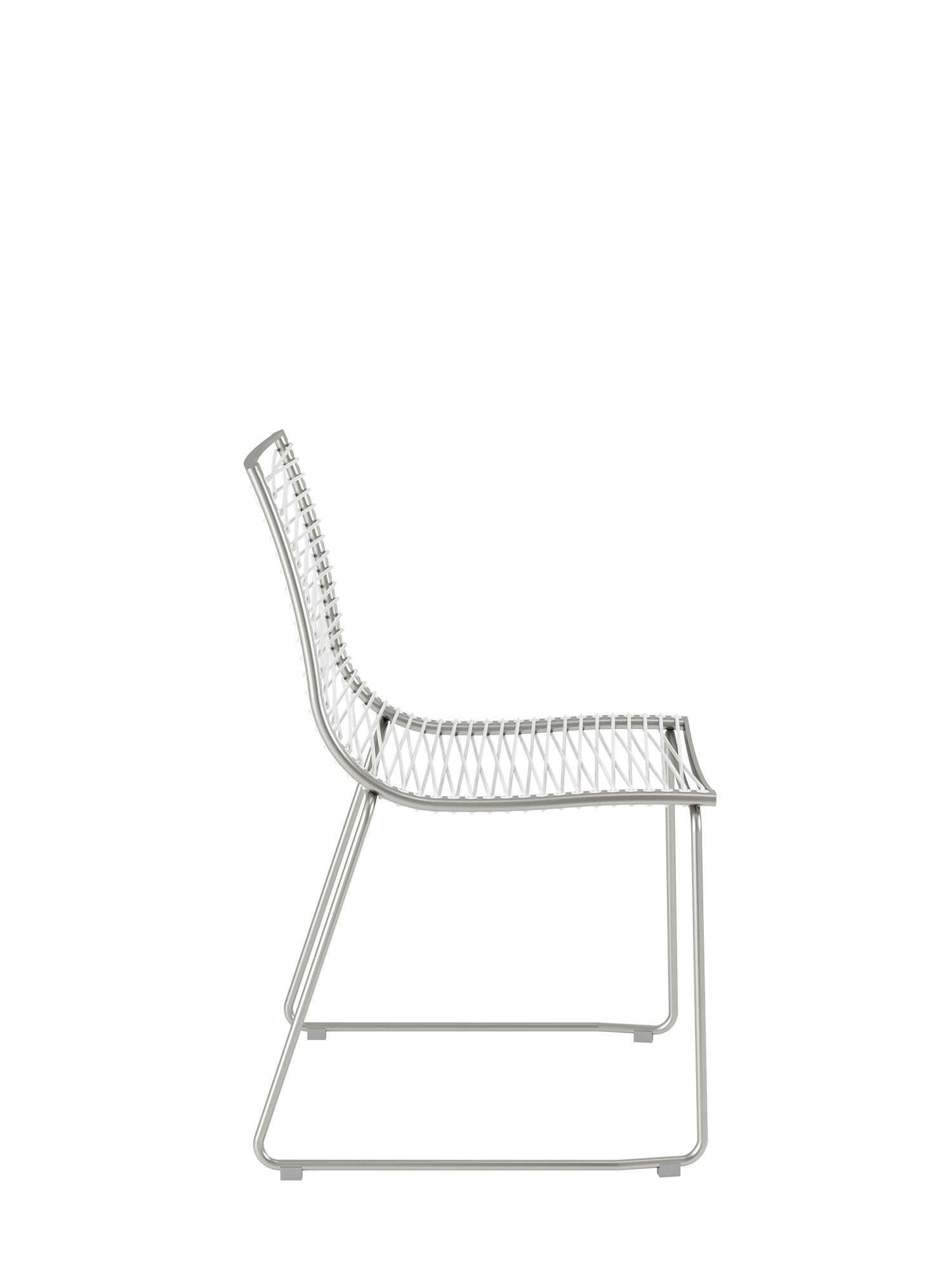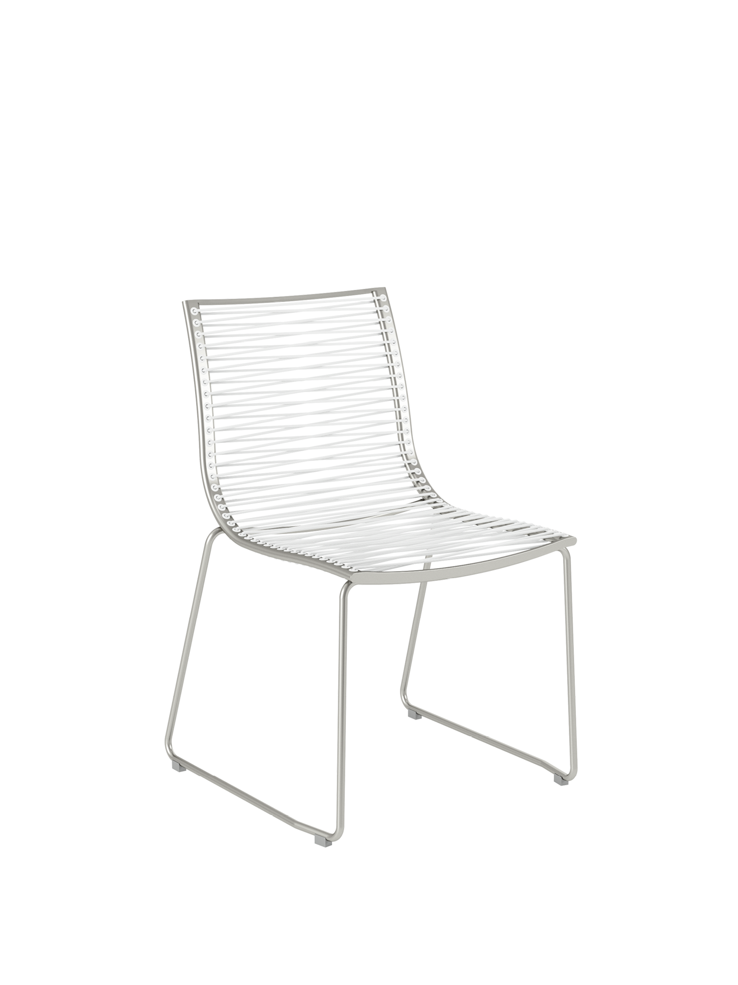 Pan looks as light as a breeze. The elegant chairs with frames of stainless steel have a covering of permanently elastic fibre, which comfortably conforms to the shape of the body. The chairs are stackable and also available with armrests.