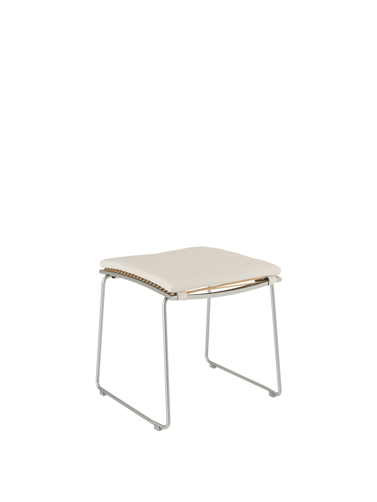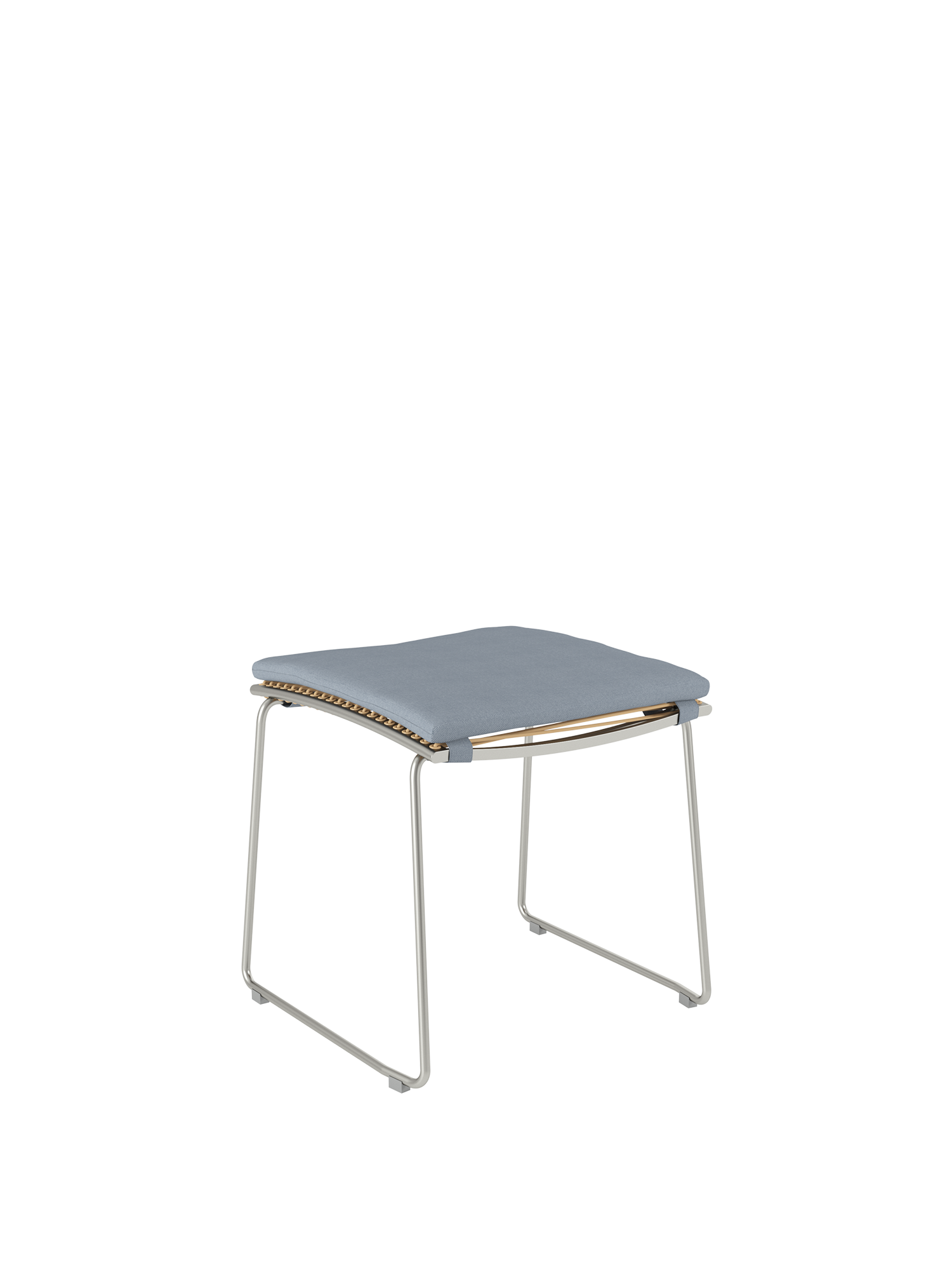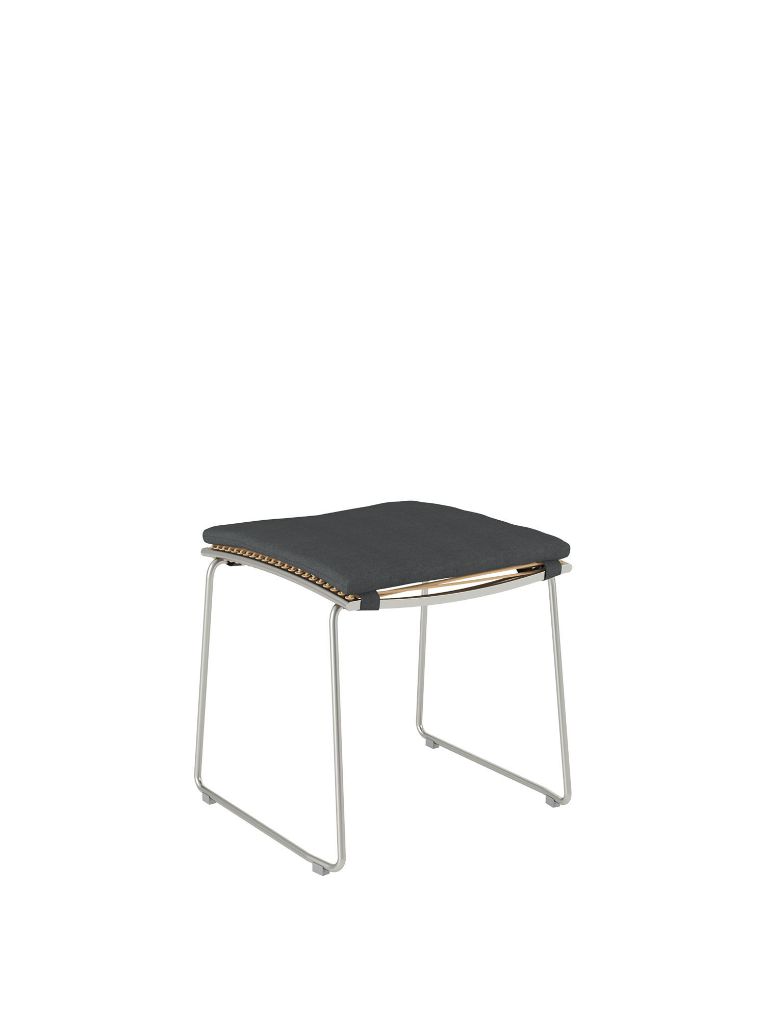 The matching footstool for the chairs and highbacks of the Pan series has a frame of stainless steel with a covering of permanently elastic fibre. The stool is easily set up and comfortably relaxes the legs.